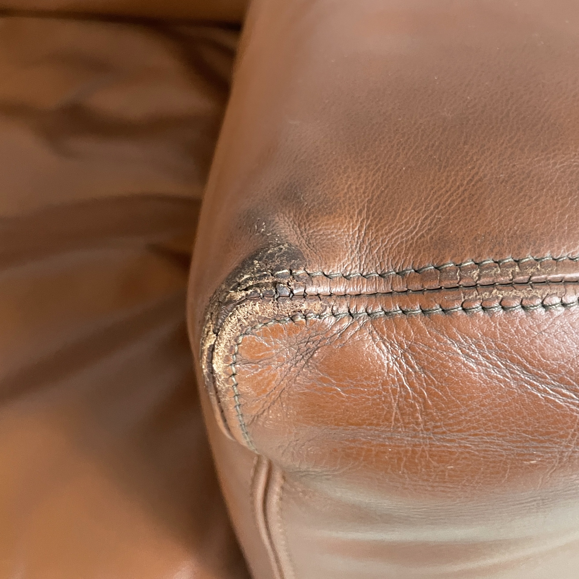 Condizioni vintage. Il legno presenta segni e mancanze di colore. La pelle presenta segni dati dall’utilizzo e piccole mancanze.