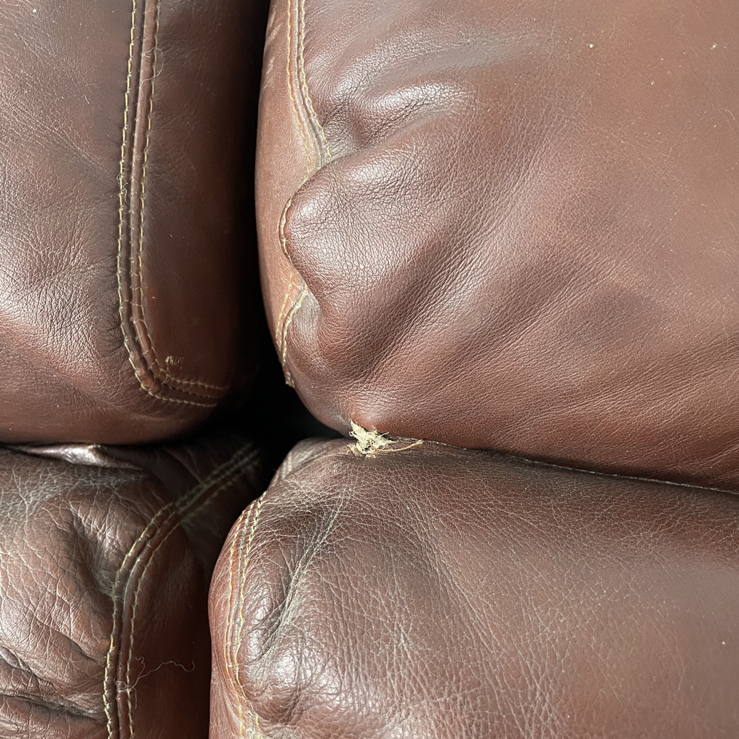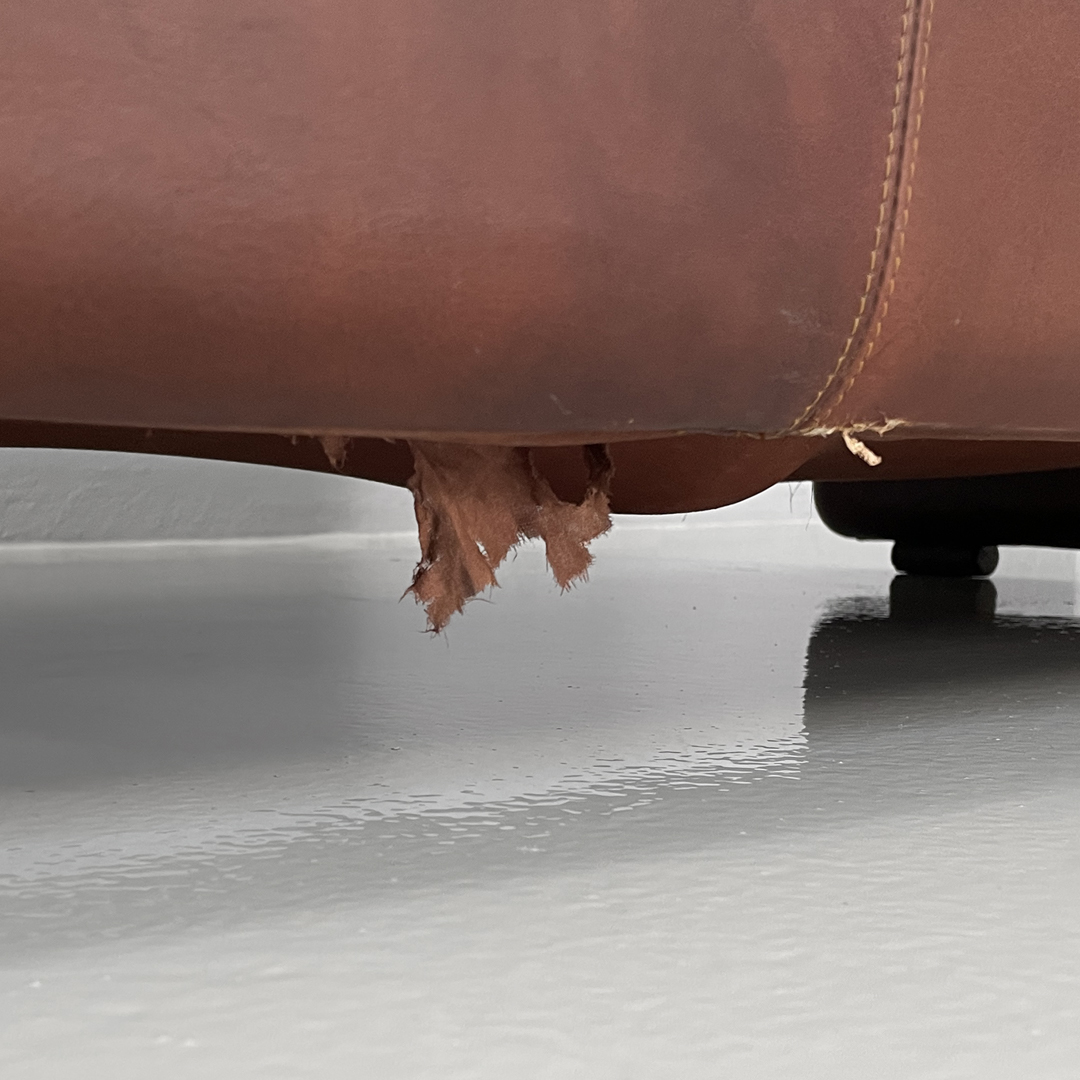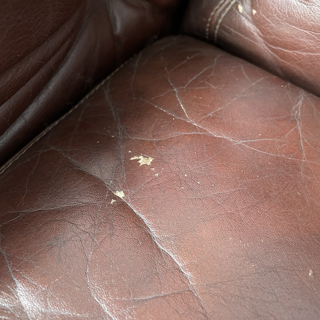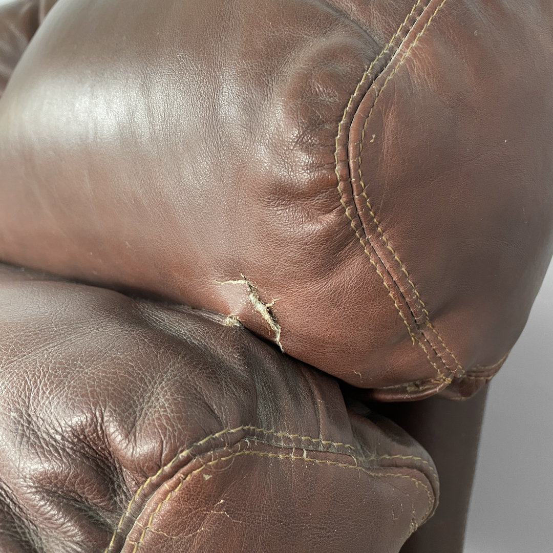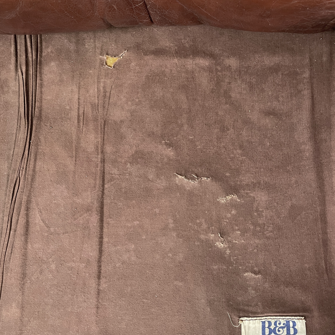 Buone condizioni, con segni dell’uso e del tempo. Presenta uno strappo su uno schienale e nella fodera sotto le sedute, con qualche mancanza di materiale sparso e scoloritura.