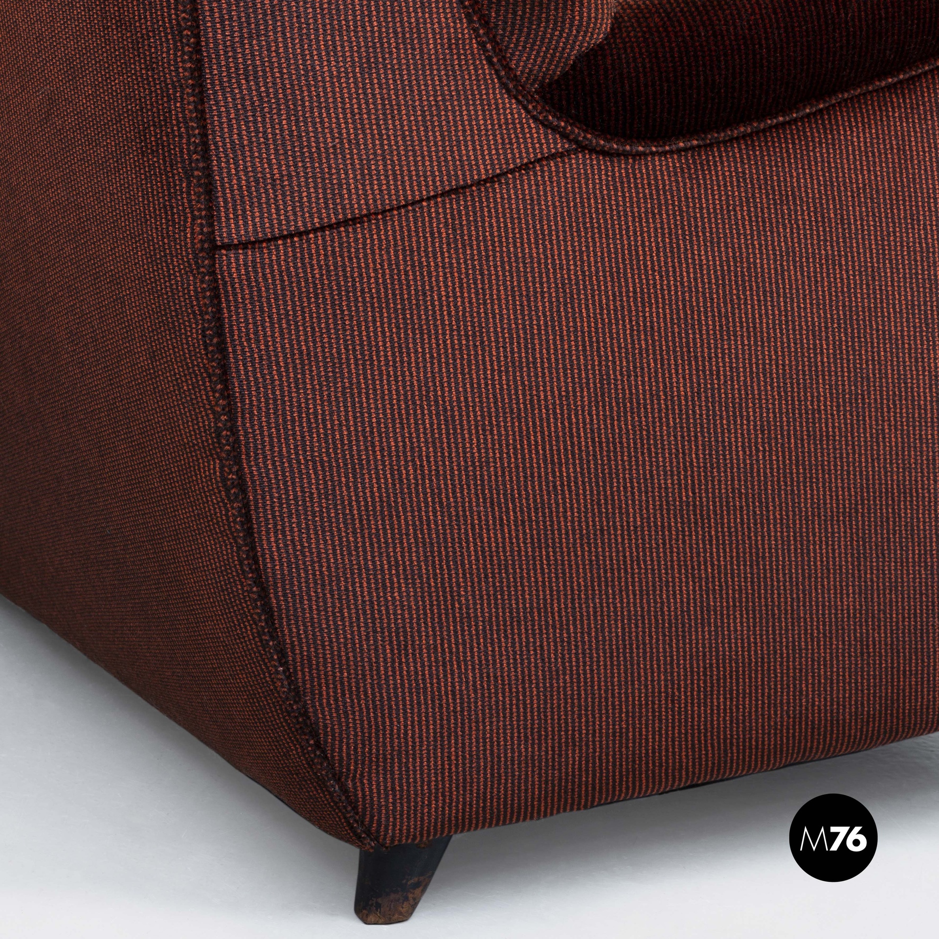 Condizioni discrete, con segni dell’uso e del tempo. Il tessuto originale è leggermente sporco nella parte centrale del poggiatesta, dove il colore è un po’ più chiaro rispetto al resto del divano.