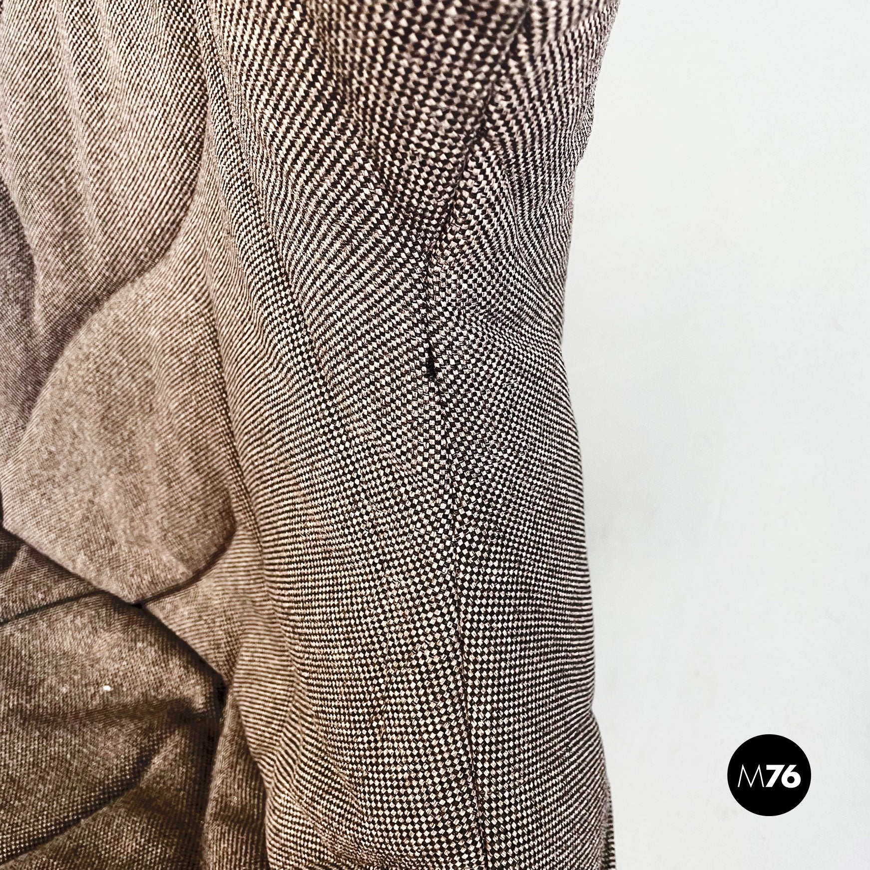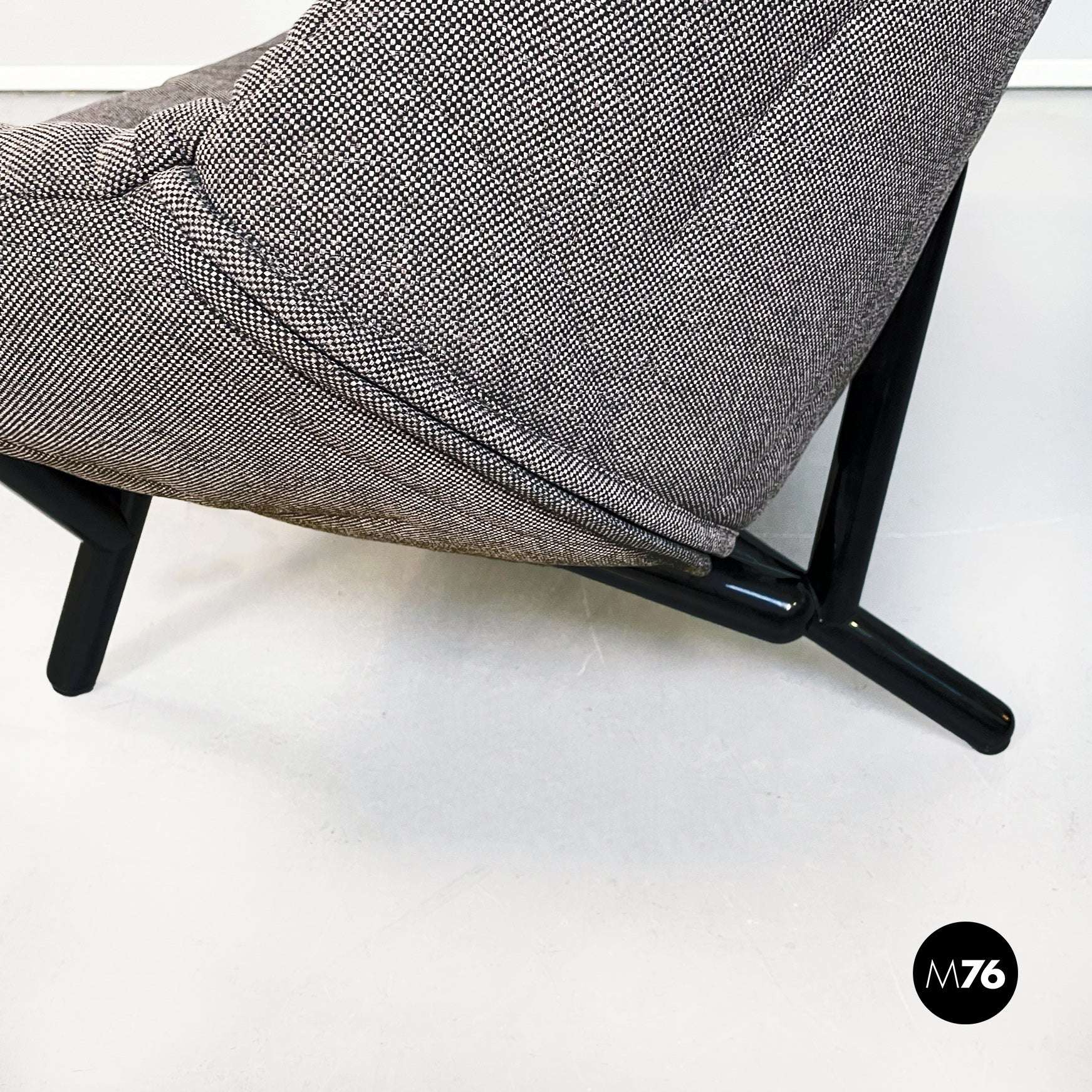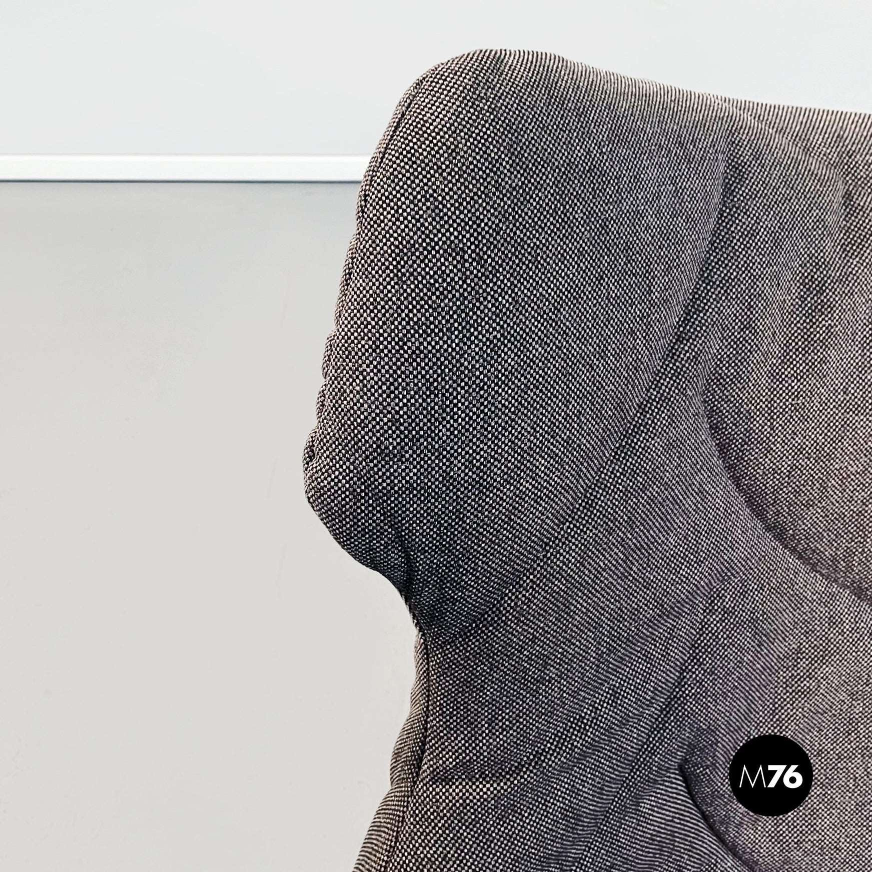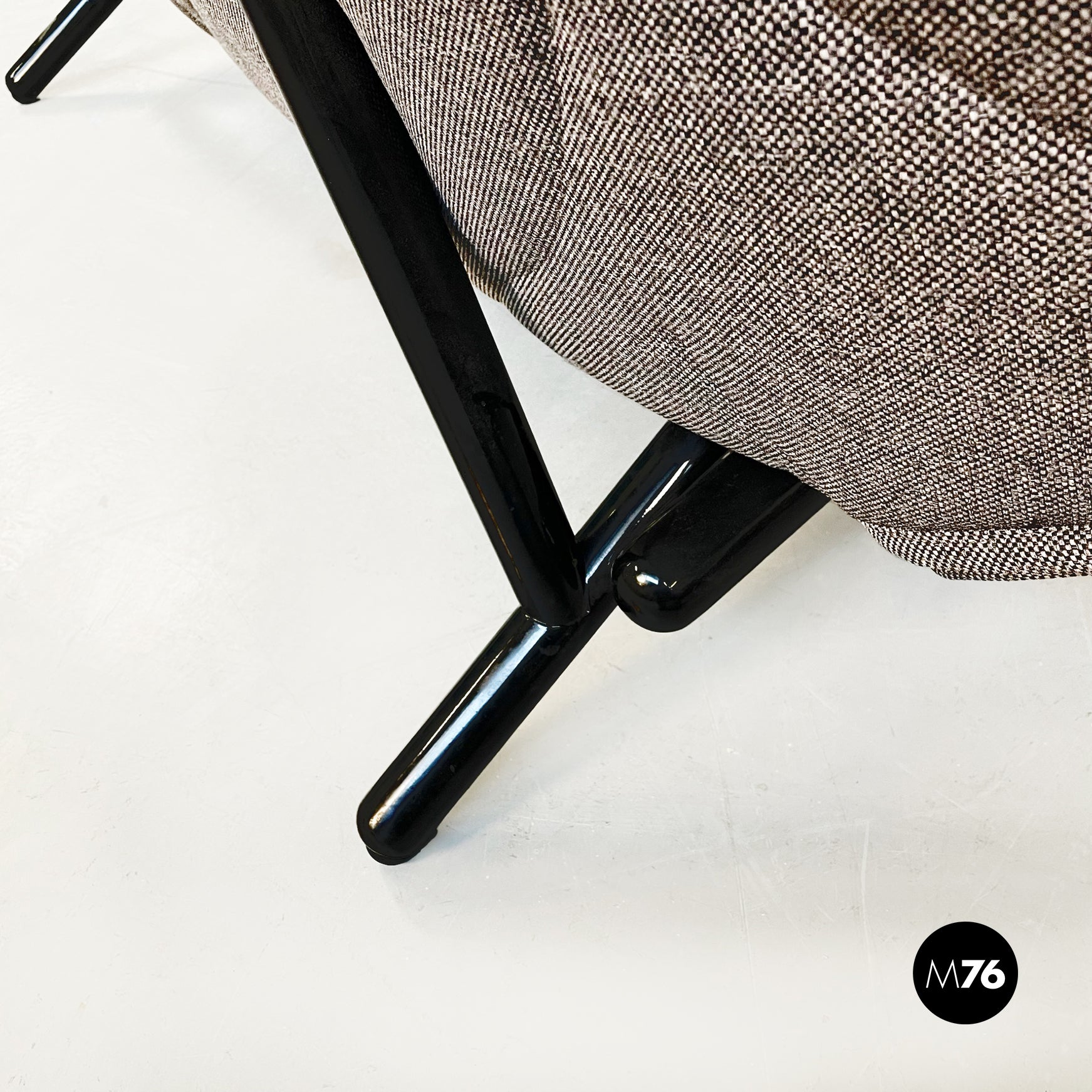 Divano modello Foliage a due posti con struttura tubolare in ferro verniciato nero, seduta e schienale imbottiti in schiuma poliuretanica e rivestita in tessuto grigio su cui sono impunturate delle forme di foglie. Infatti la seduta riprende la forma e l’idea della chioma di un albero.