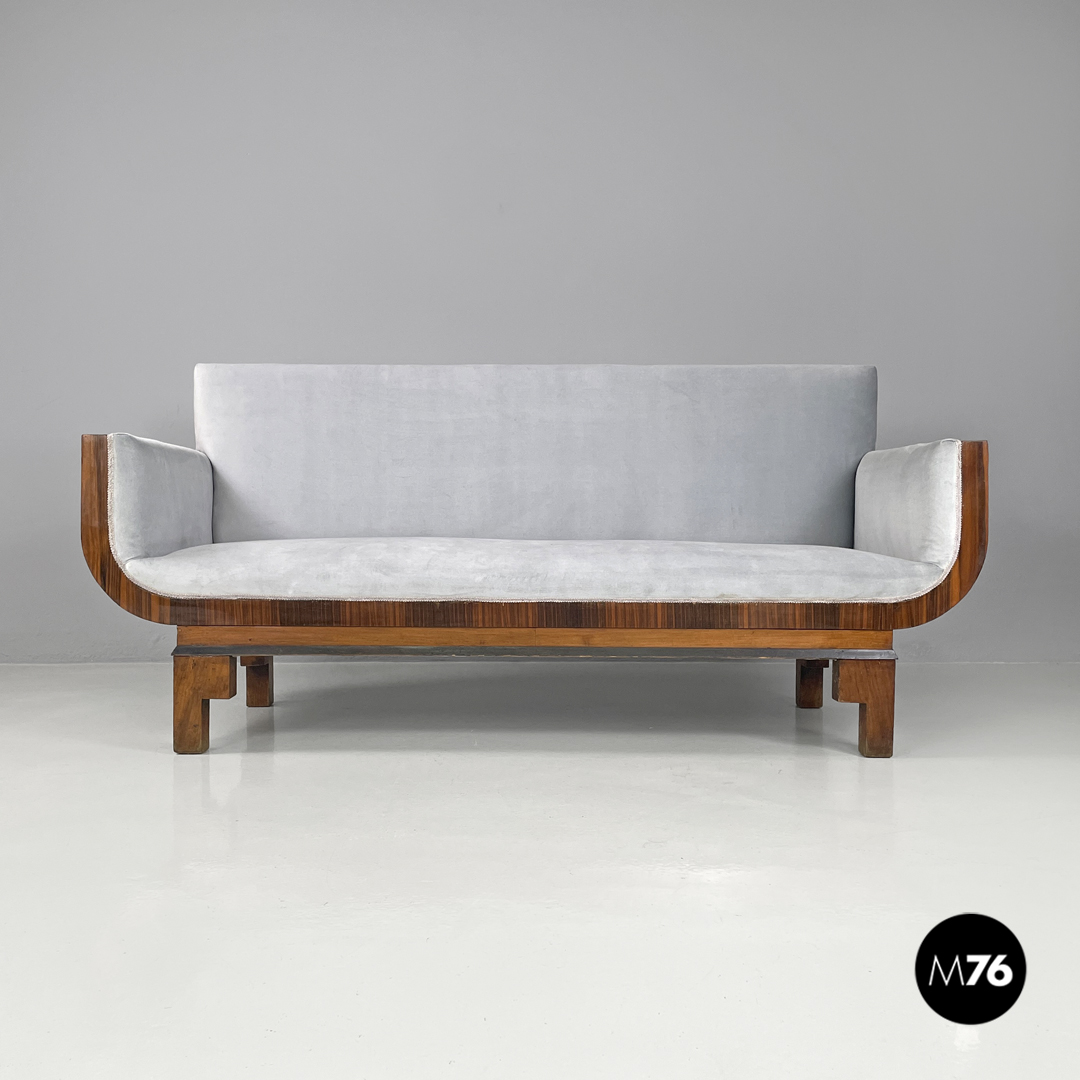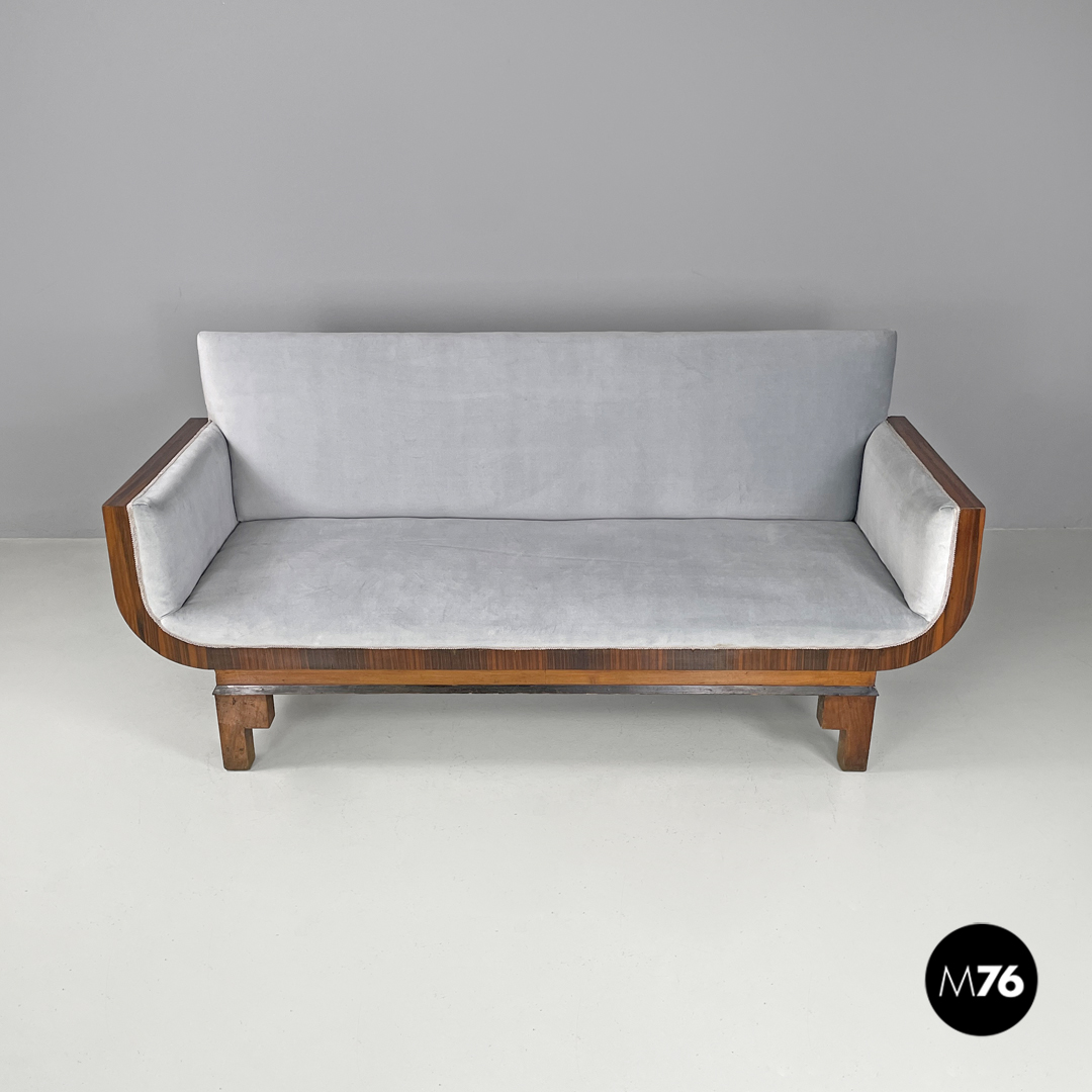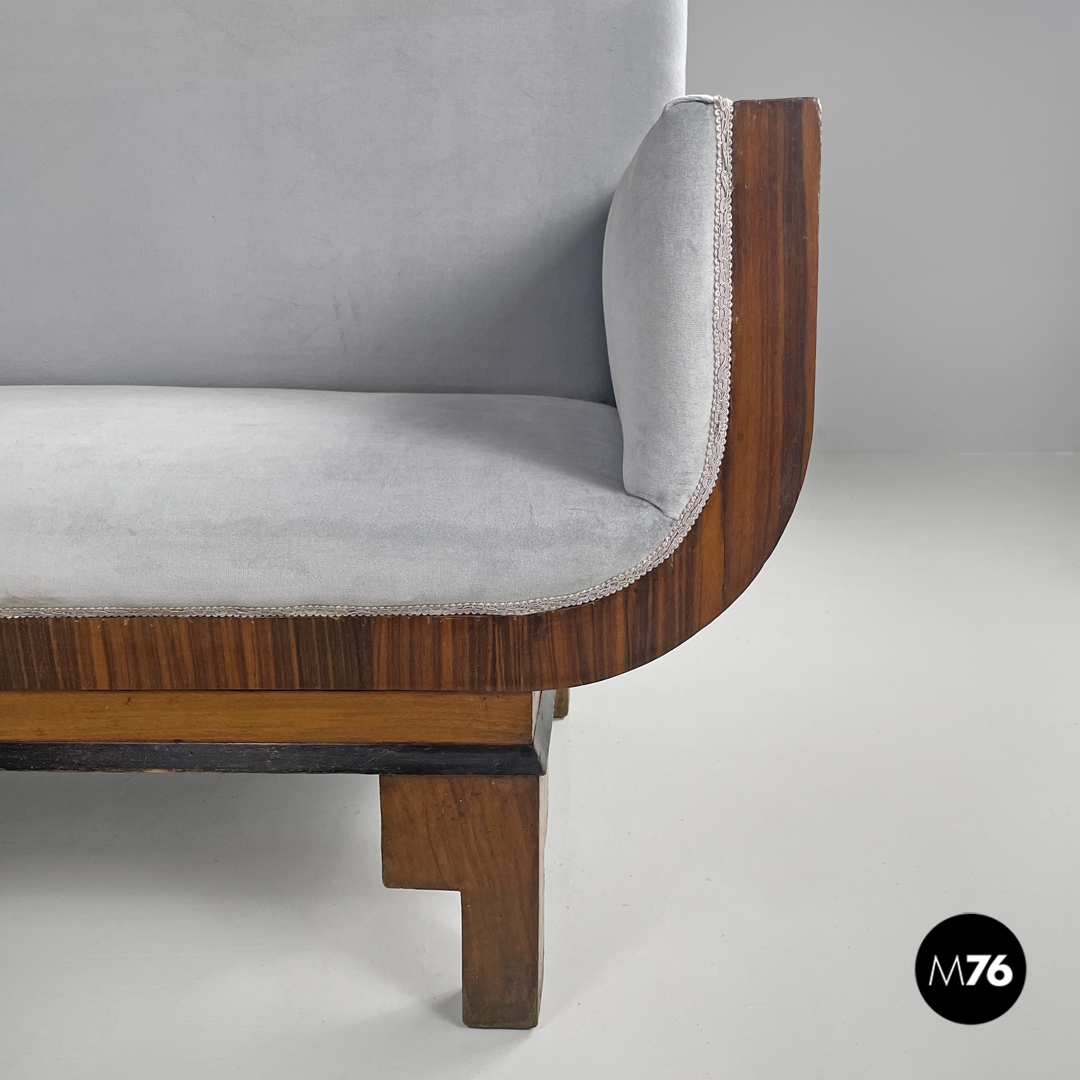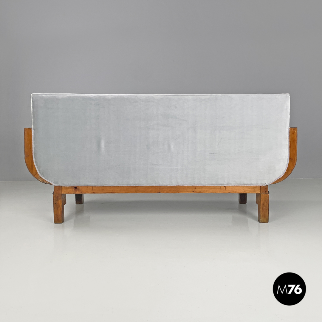 Divano in legno e velluto celeste pastello, 1930 ca.