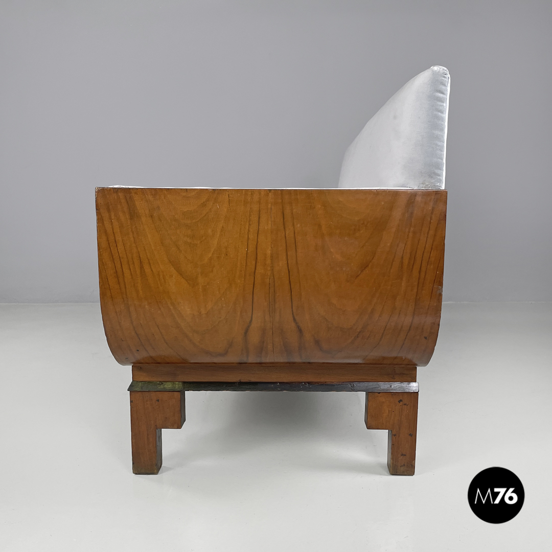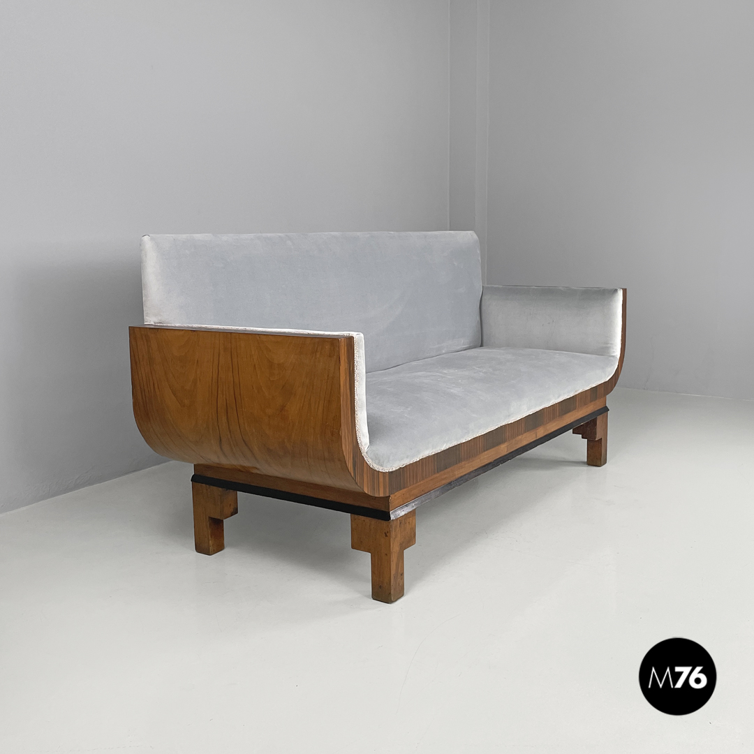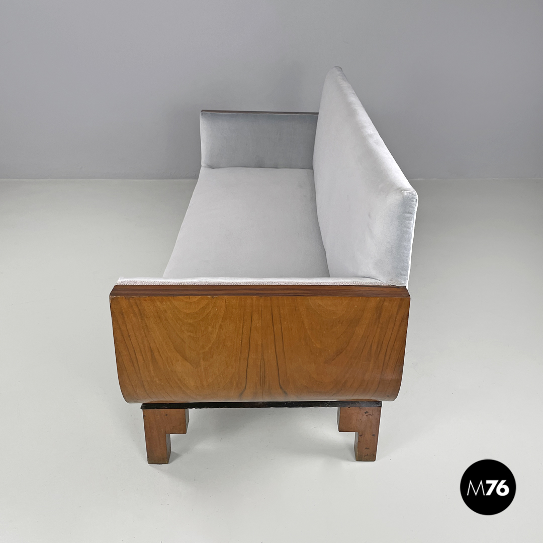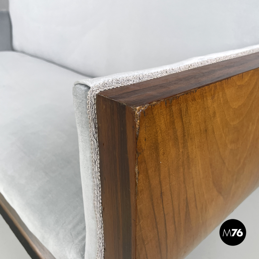 Divano in legno e velluto celeste pastello, 1930 ca.
