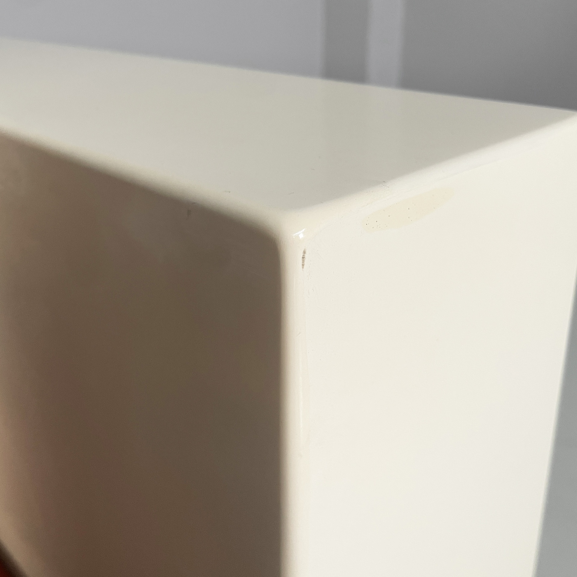 Buone condizioni. Leggeri segni di ingiallimento e piccole mancanze sul laccato bianco.