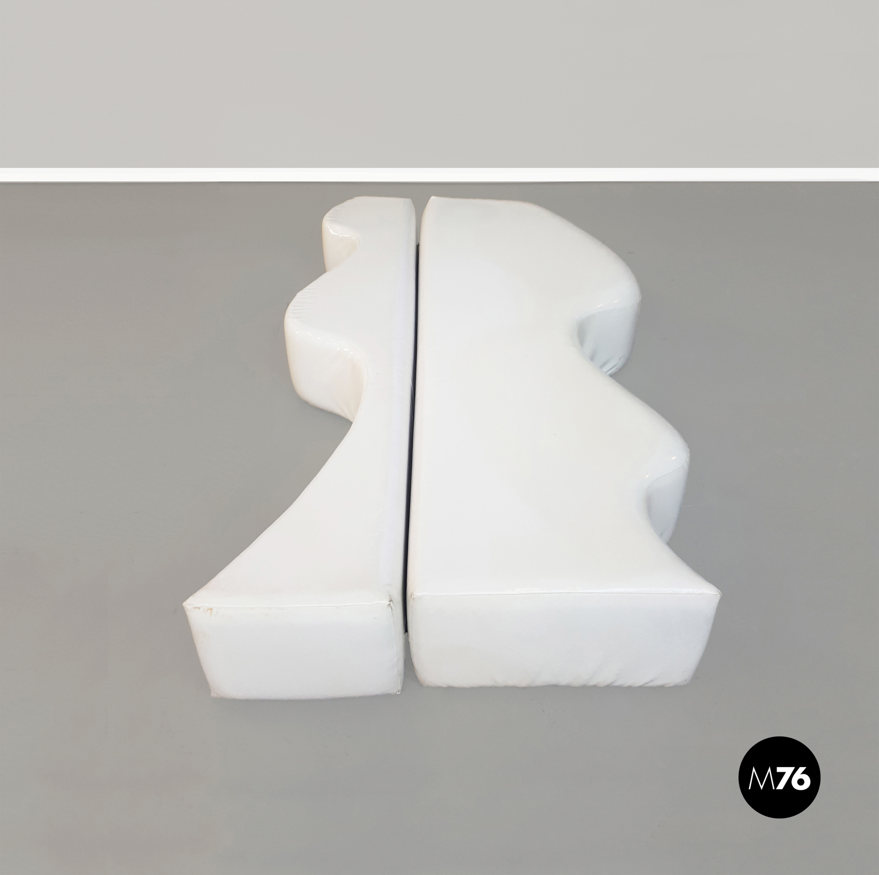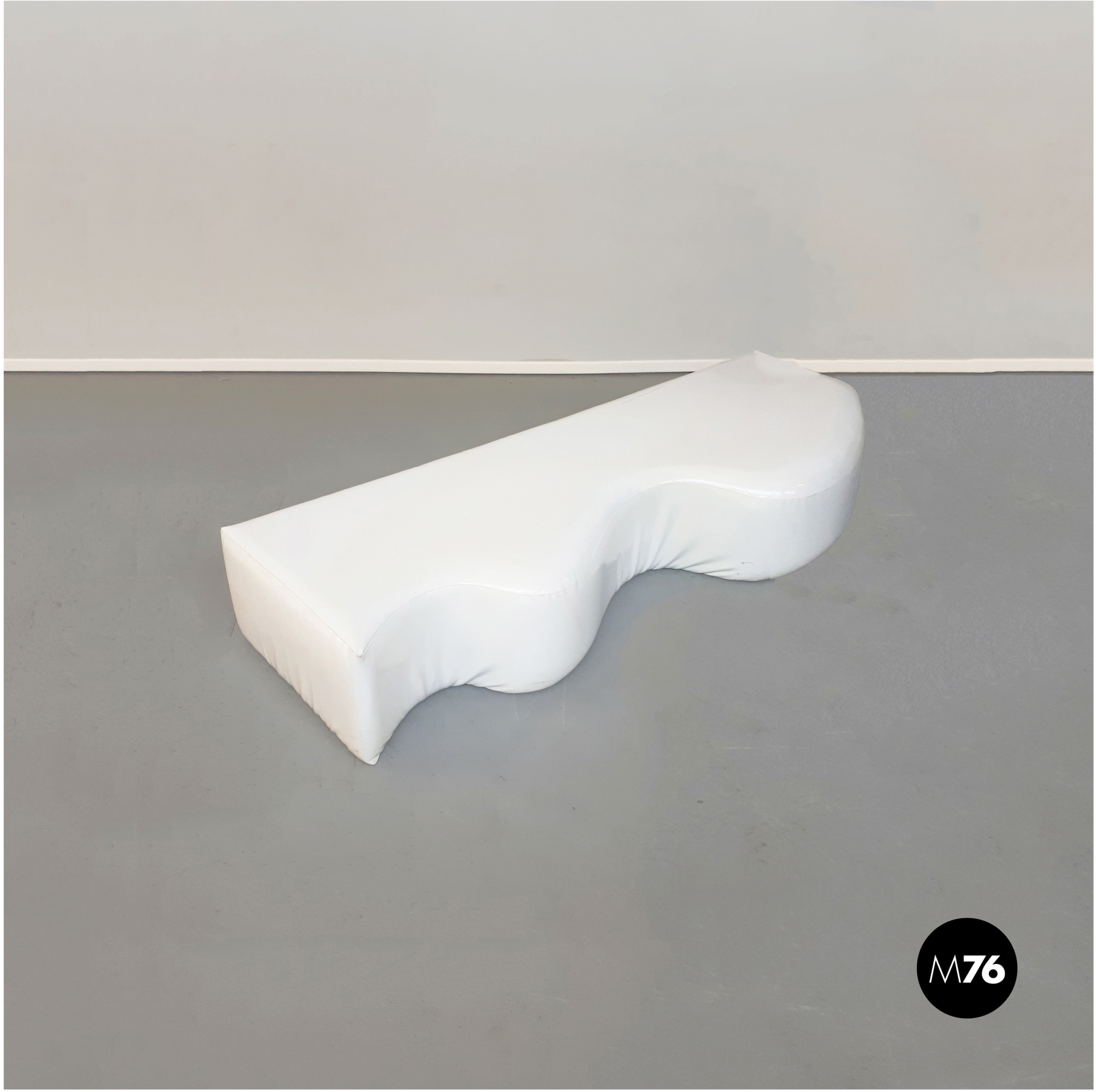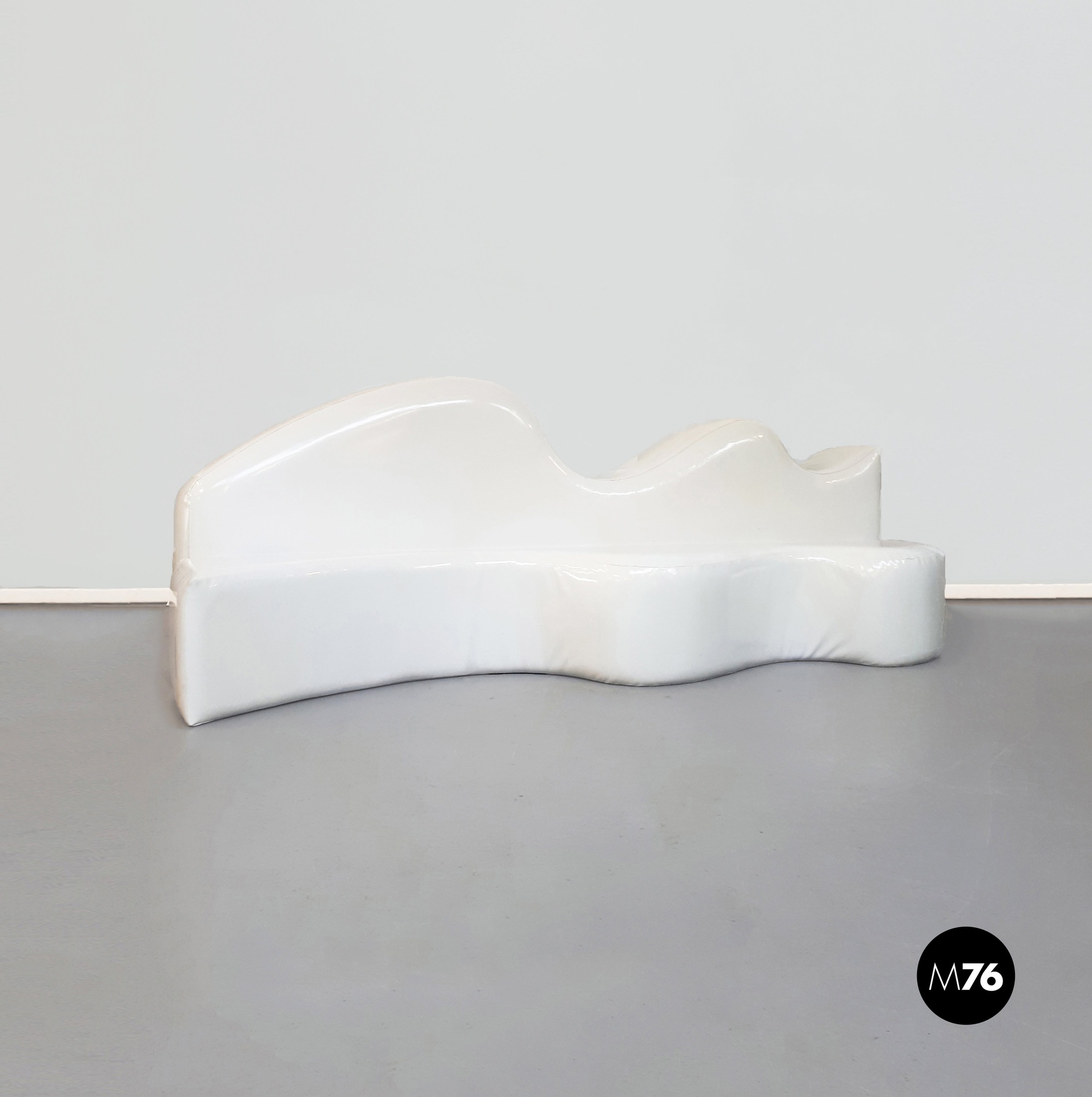 Divano componibile modello Superonda, composto da due forme con taglio ondulato in finta pelle bianca lucida. La leggerezza e componibilità consentono di variarne l’uso, infatti Superonda può essere divano, letto e chaise longue.