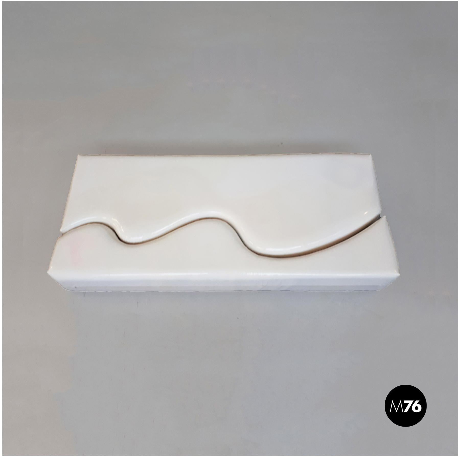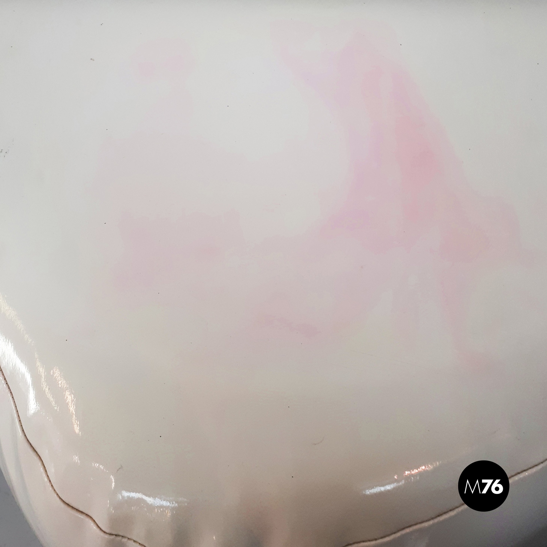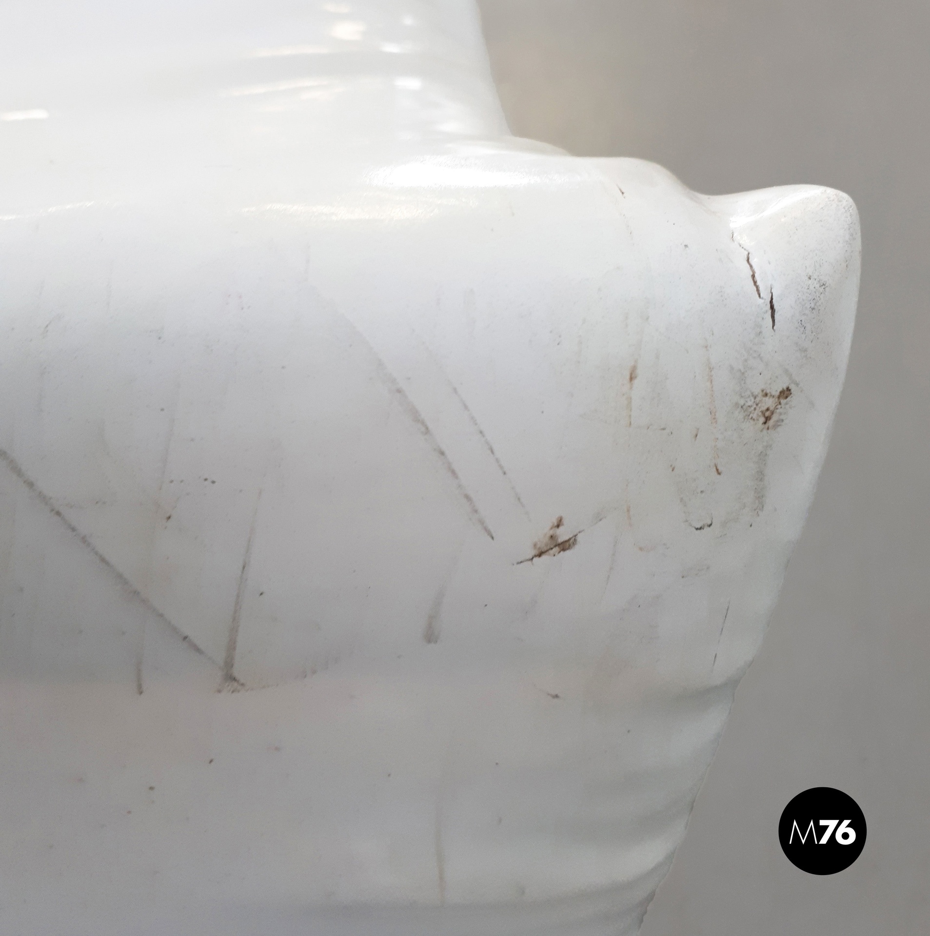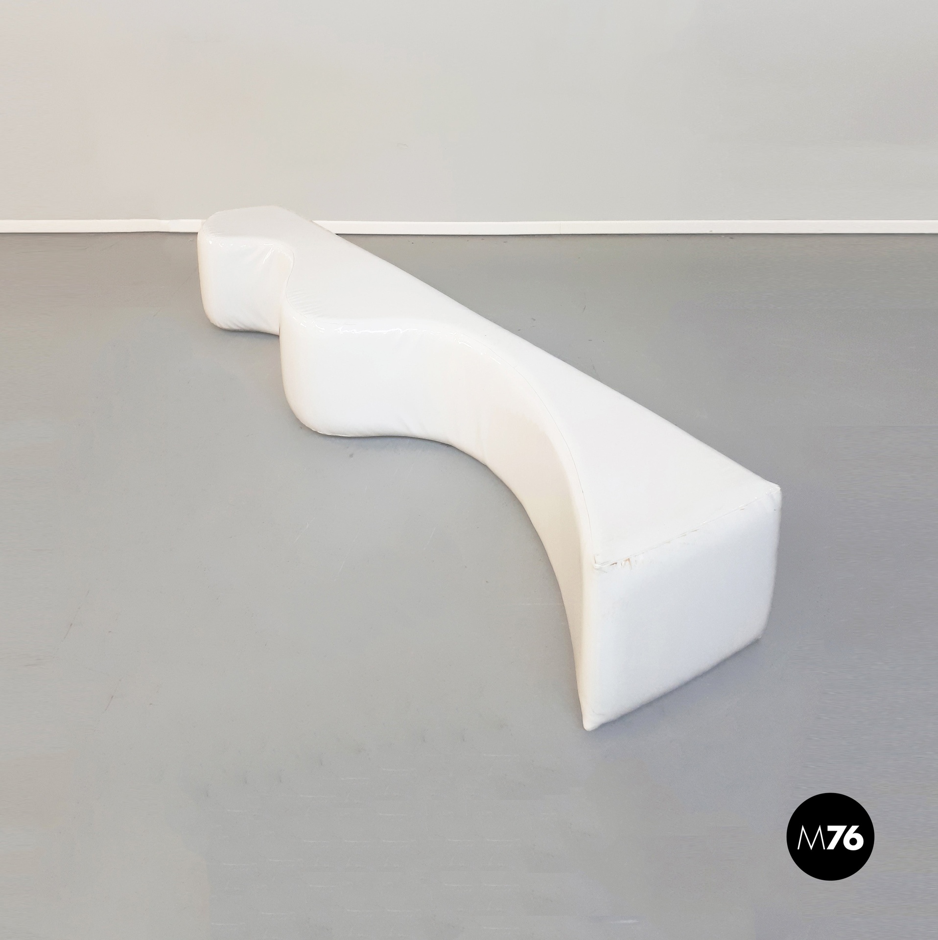 Divano componibile modello Superonda, composto da due forme con taglio ondulato in finta pelle bianca lucida. La leggerezza e componibilità consentono di variarne l’uso, infatti Superonda può essere divano, letto e chaise longue.