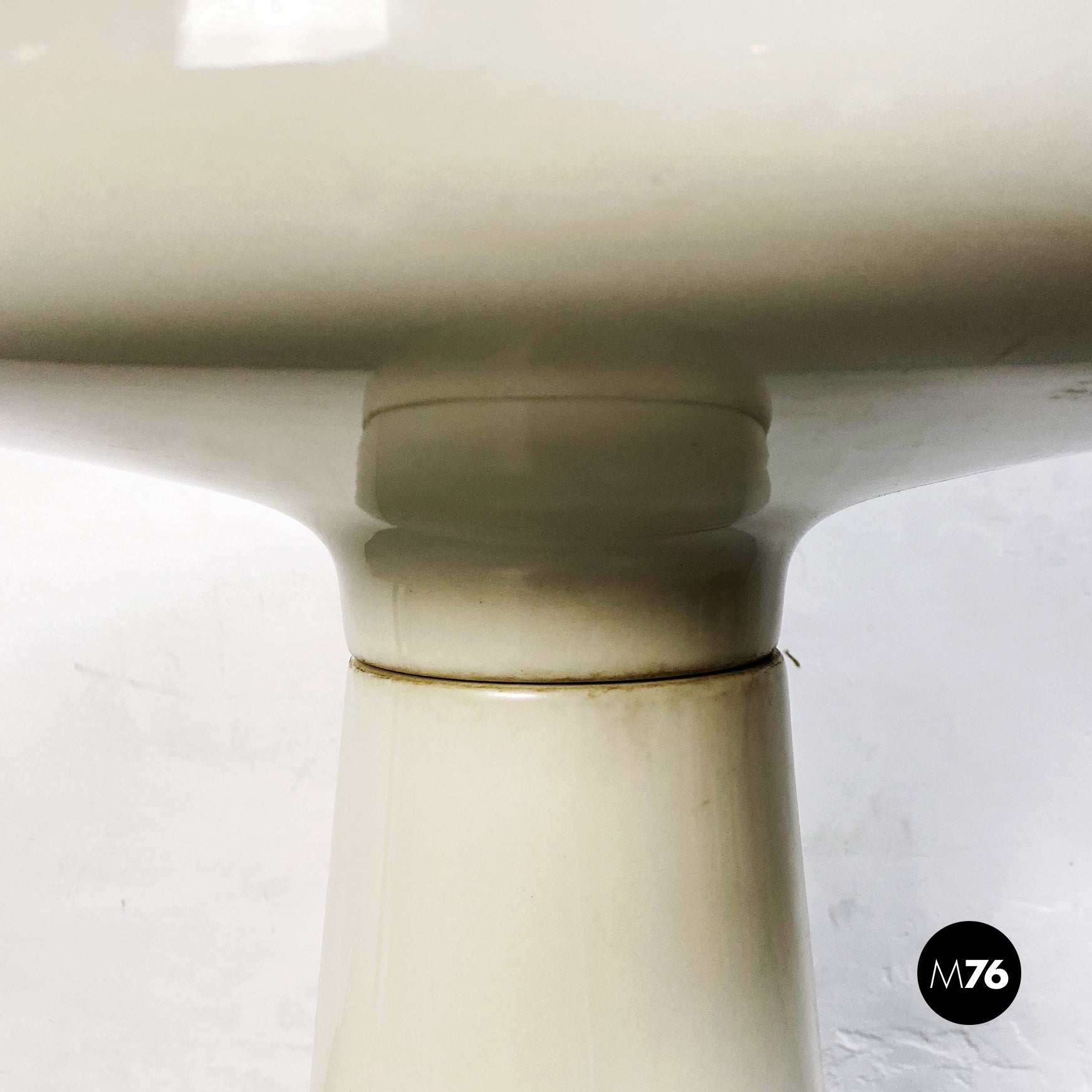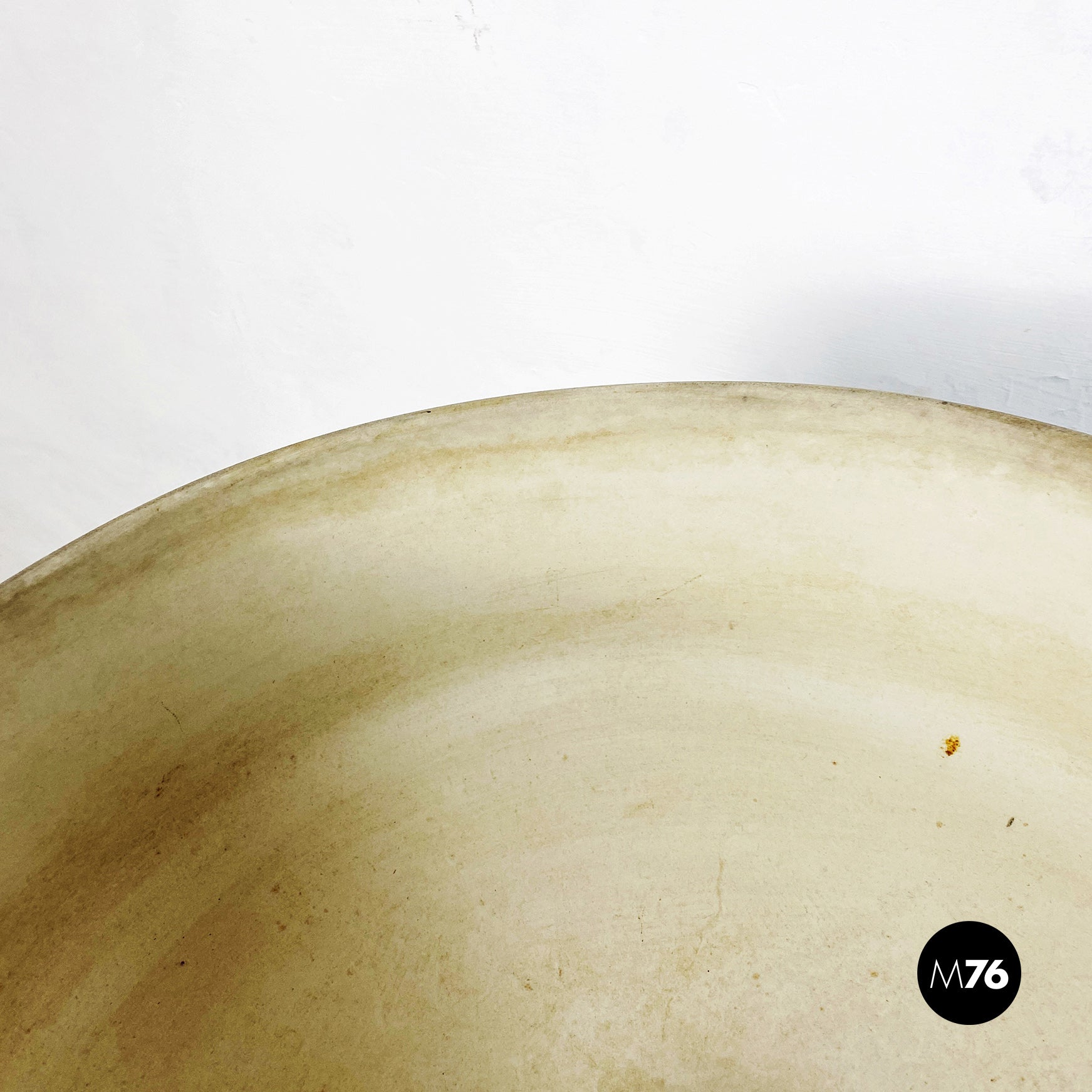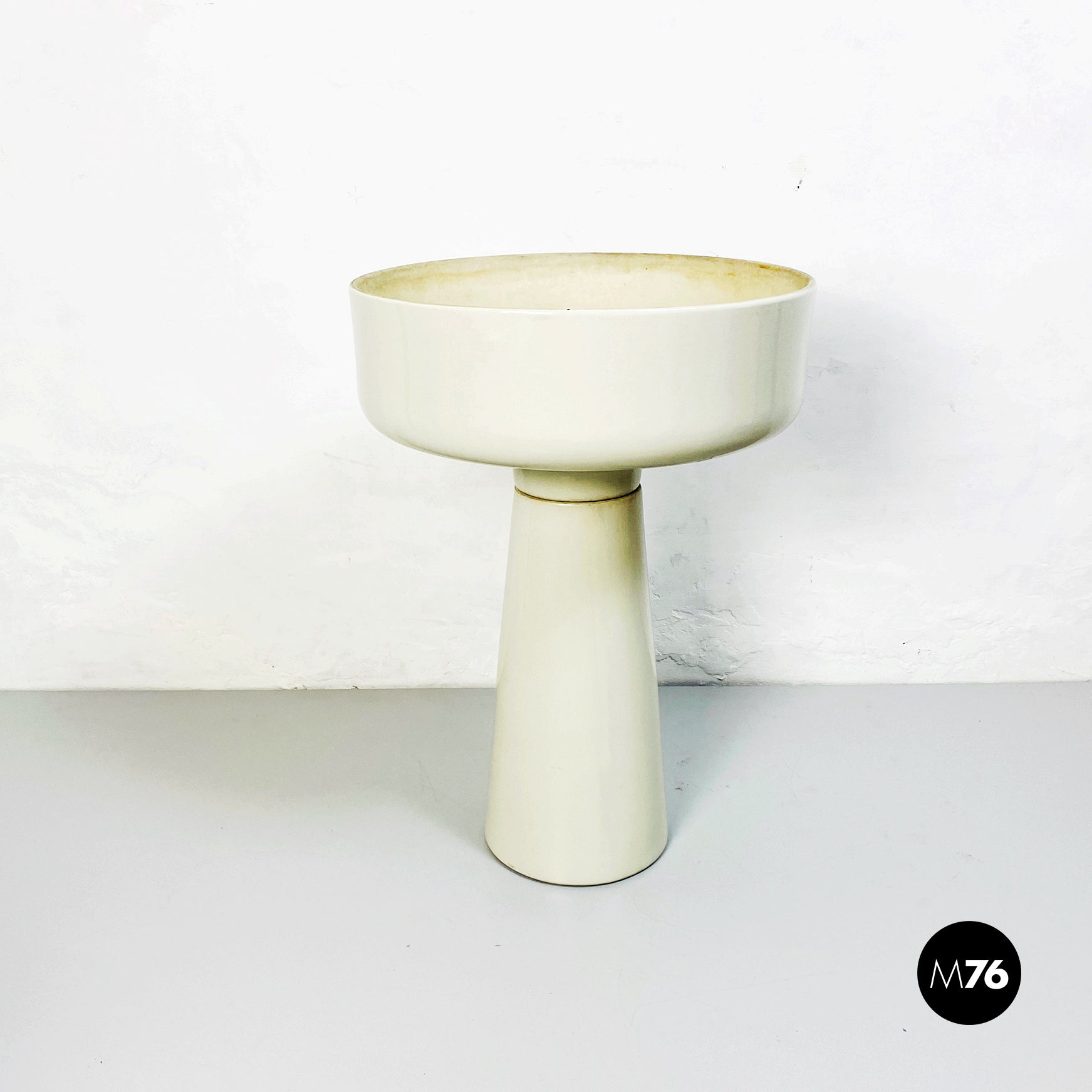 Grande fioriera da terra in gres porcellanato bianco, composta da due pezzi, un vaso circolare e una base conica.