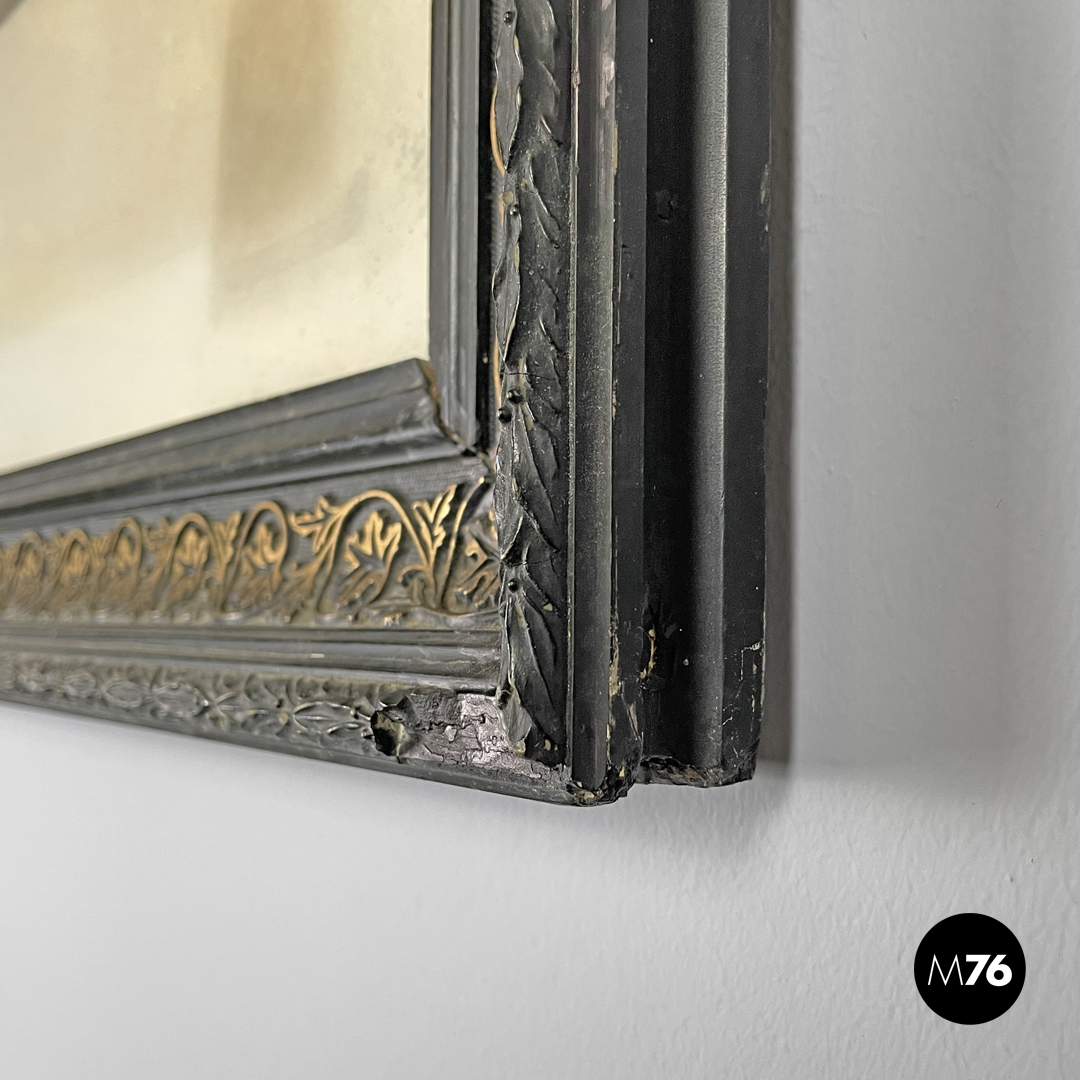 Condizioni discrete, con segni del tempo, aloni e macchie sulla carta e mancanze di materiale sulla cornice.