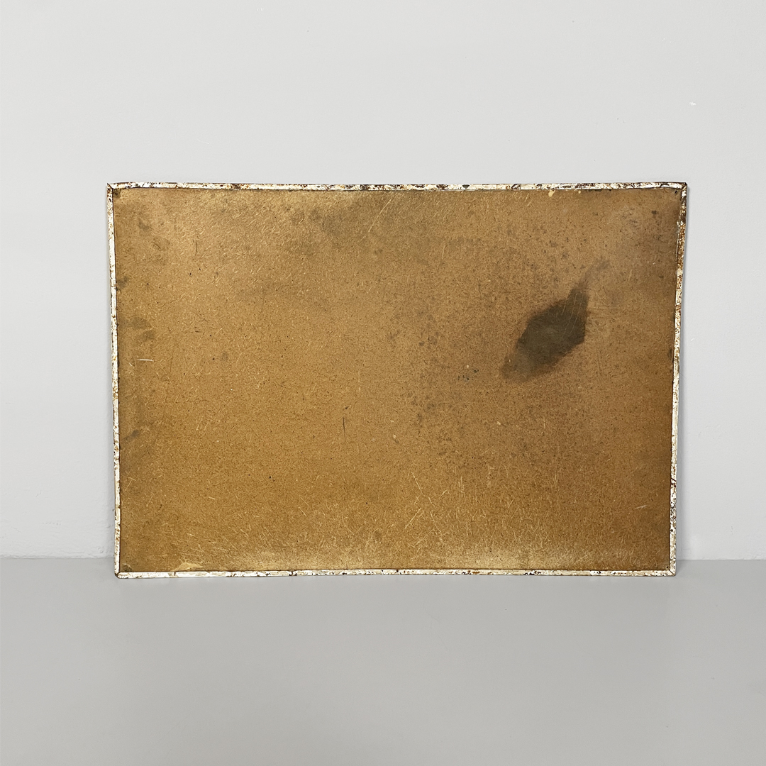 Condizioni vintage, segni sparsi, ruggine, e mancanze di colore sul metallo.