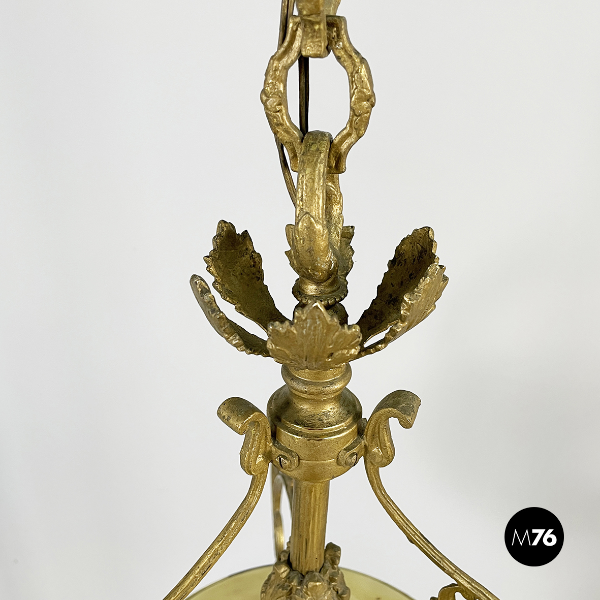 Lampadario in ottone e vetro satinato, inizio 1900 ca.