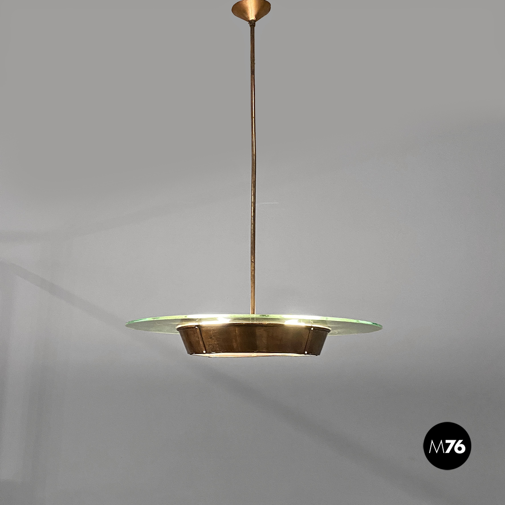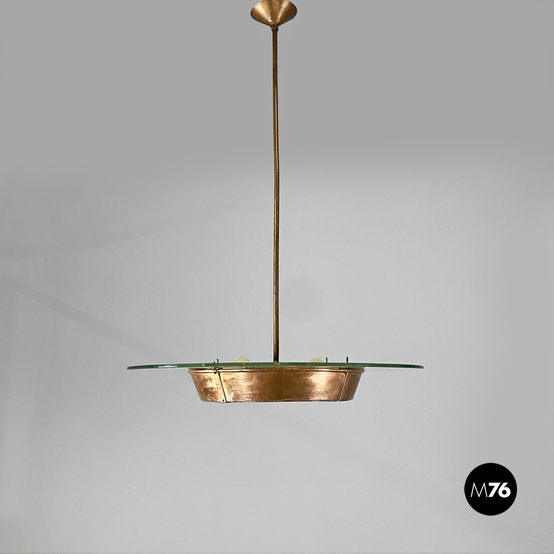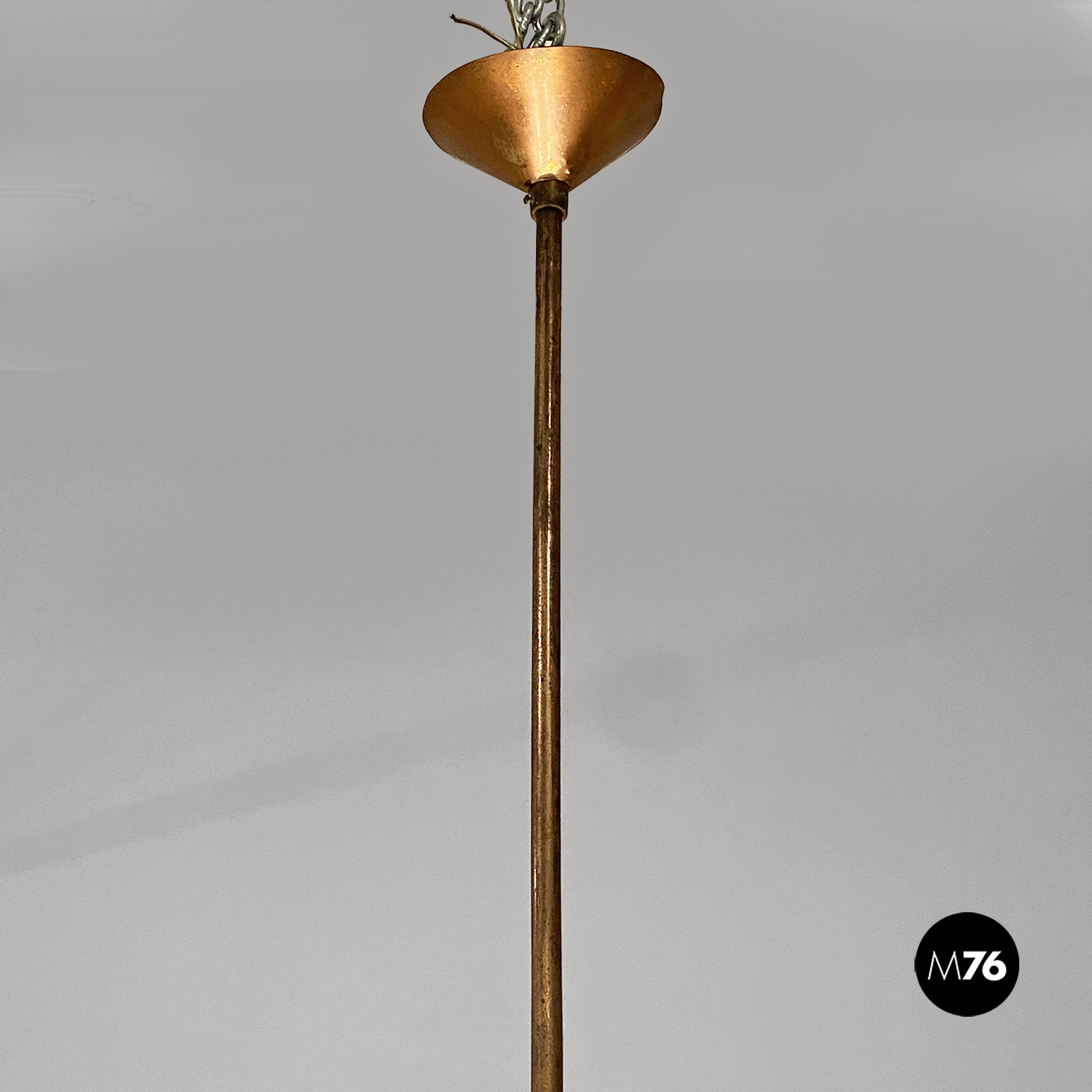 Lampadario con decorazione in vetro e rame, 1940 ca.