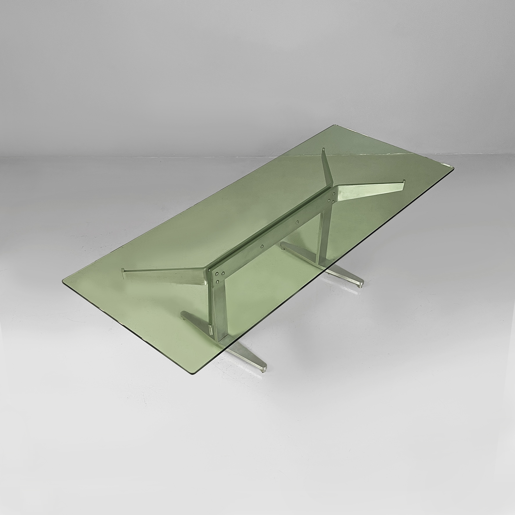 Tavolo da caffè in vetro e alluminio, 1970 ca.
