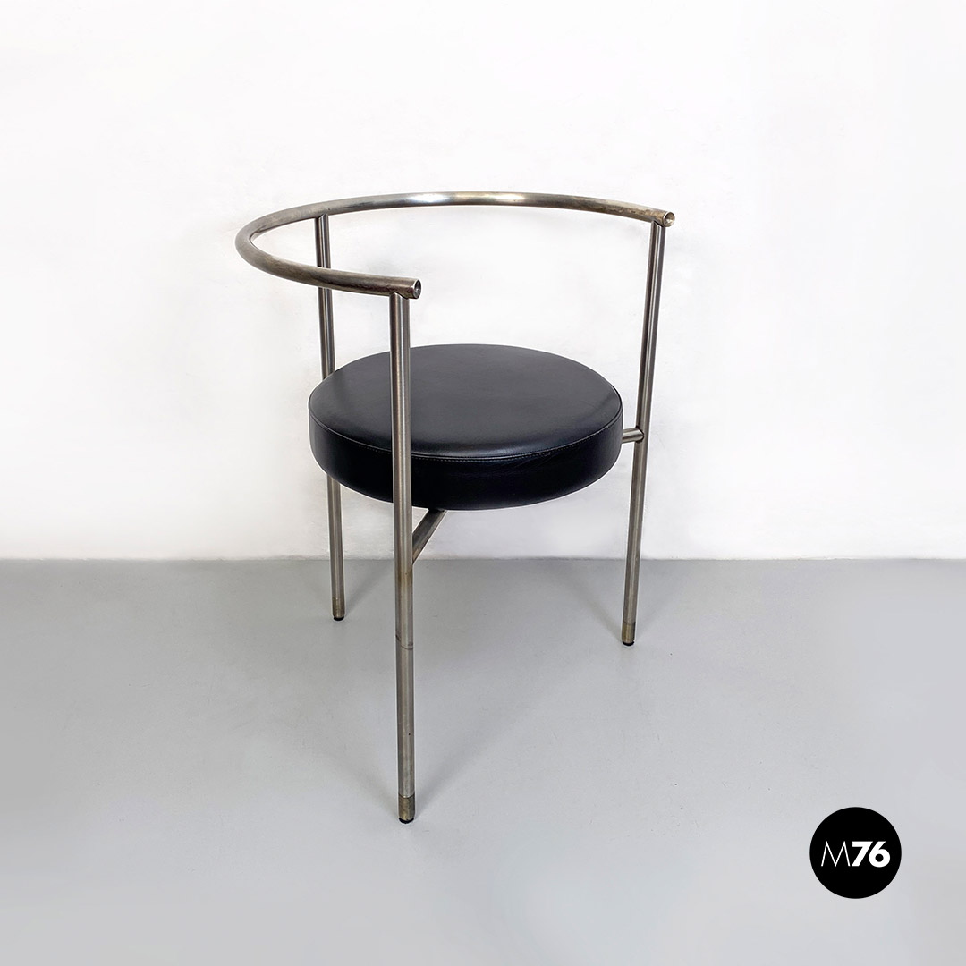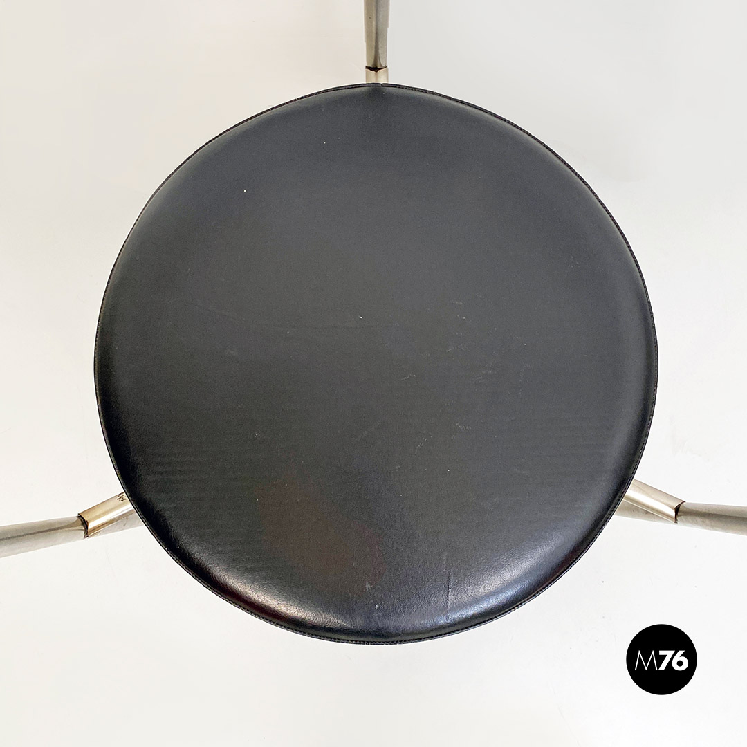 Sedia a pozzetto in pelle nera e metallo, 1980 ca.