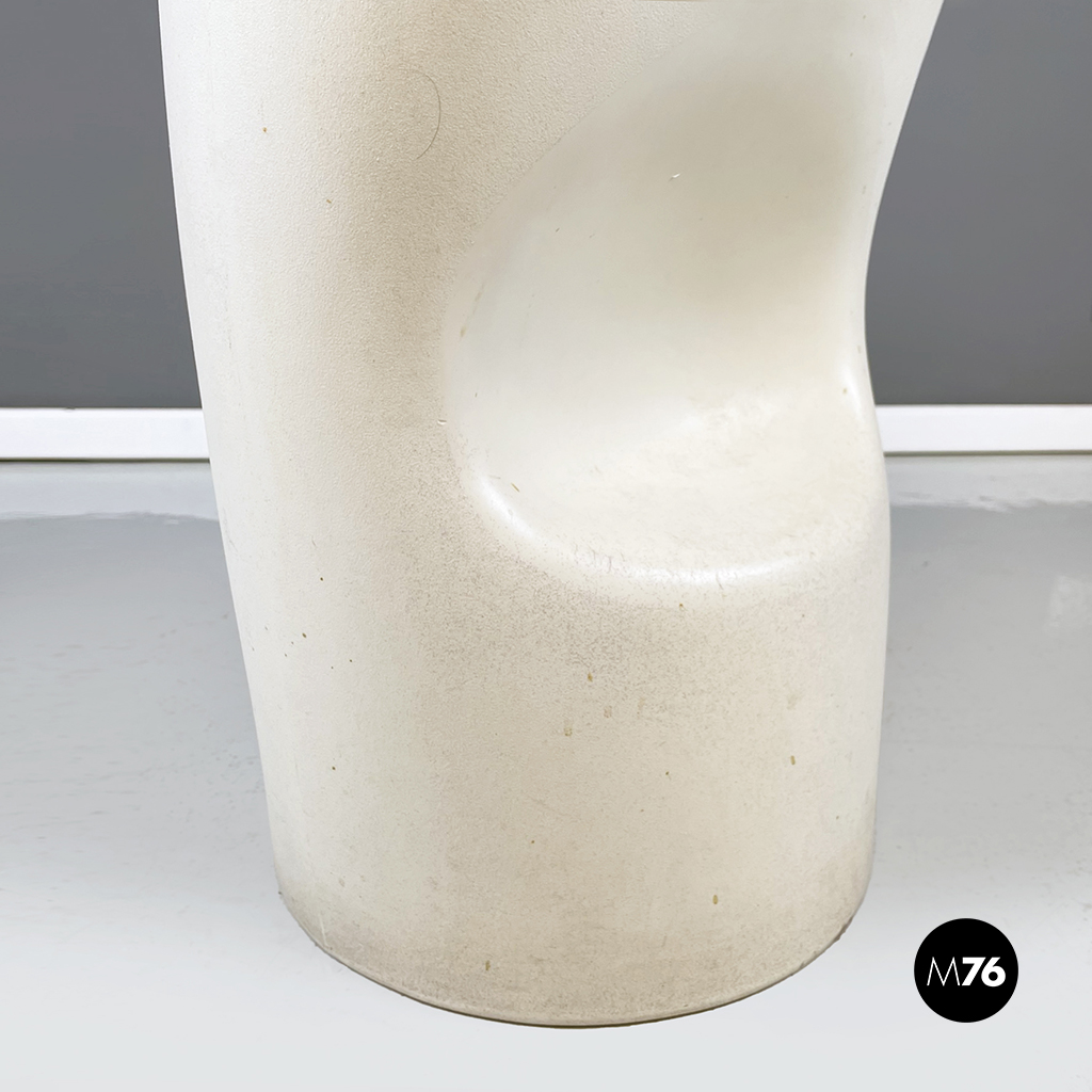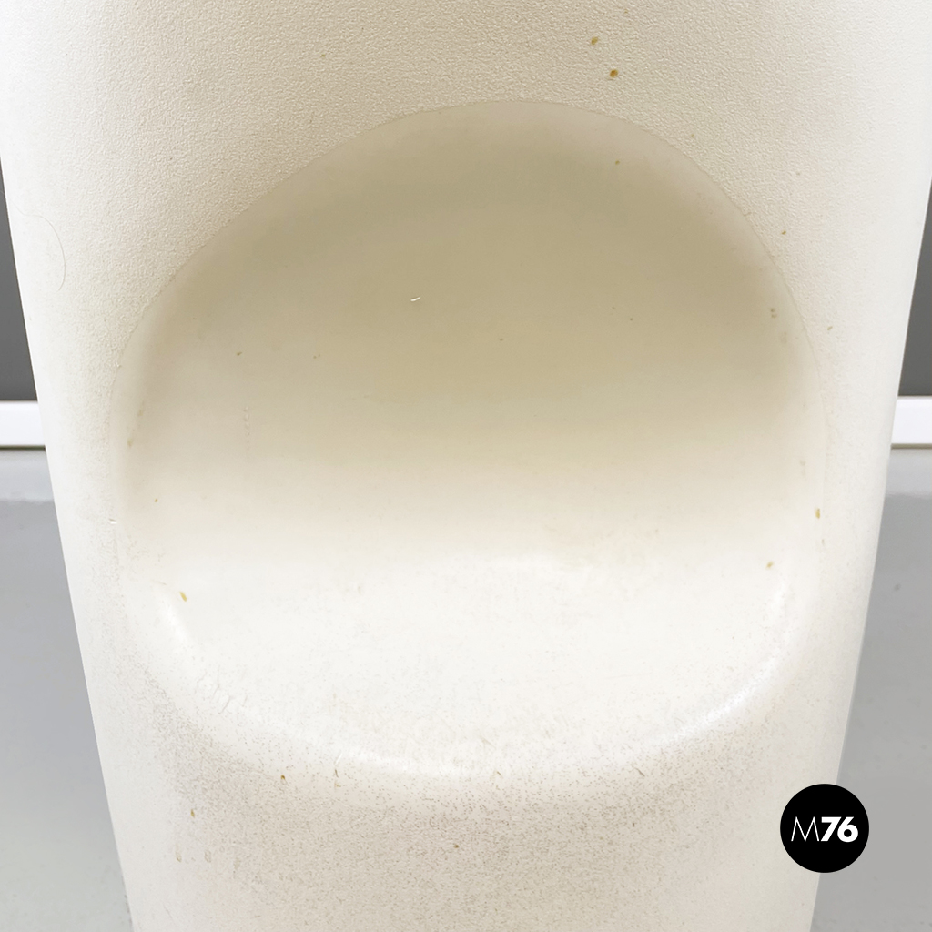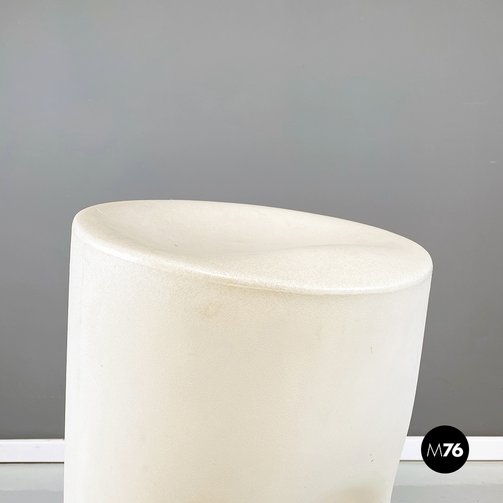 Sgabello da bar modello Tokyo Pop a base tonda in plastica bianca con finitura opaca. La struttura presenta una silhouette morbida e arrotondata. Poggiapiedi presente alla base.