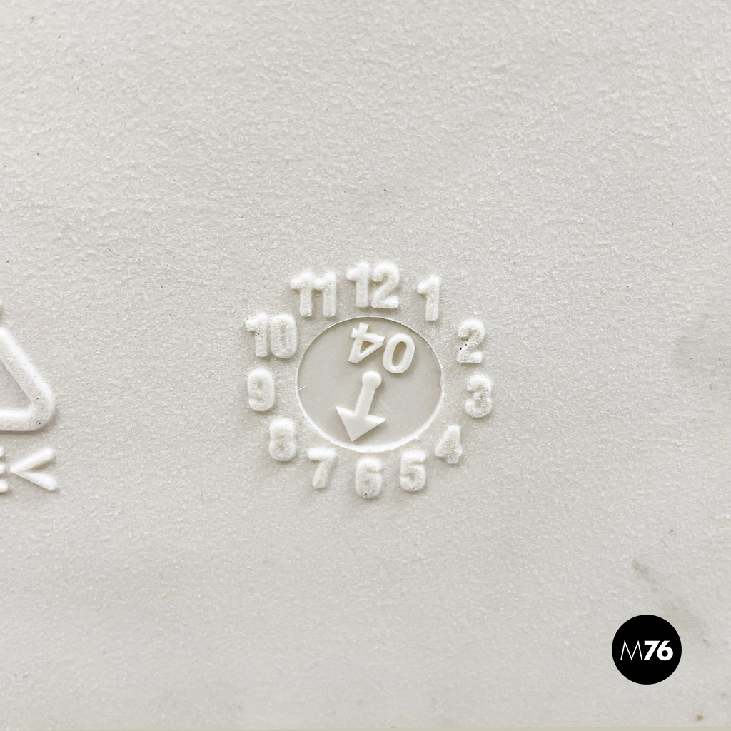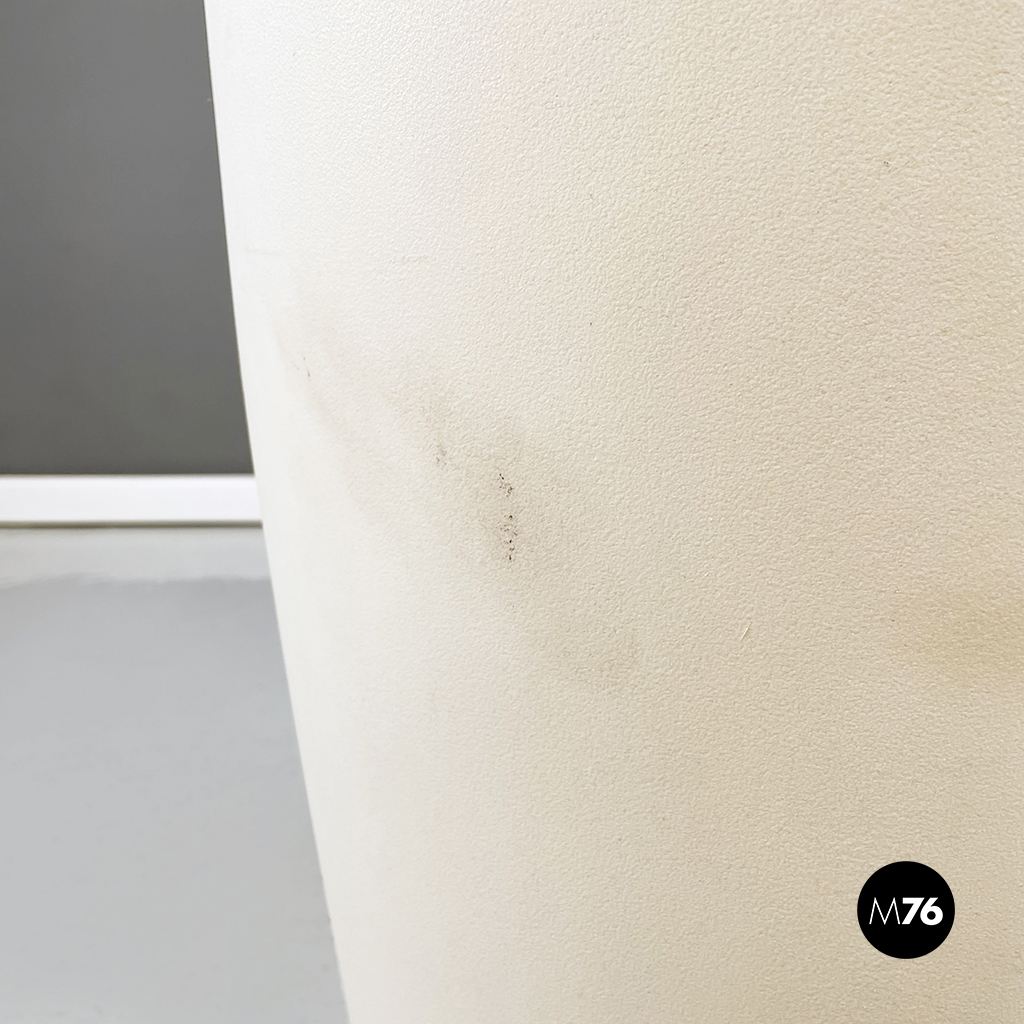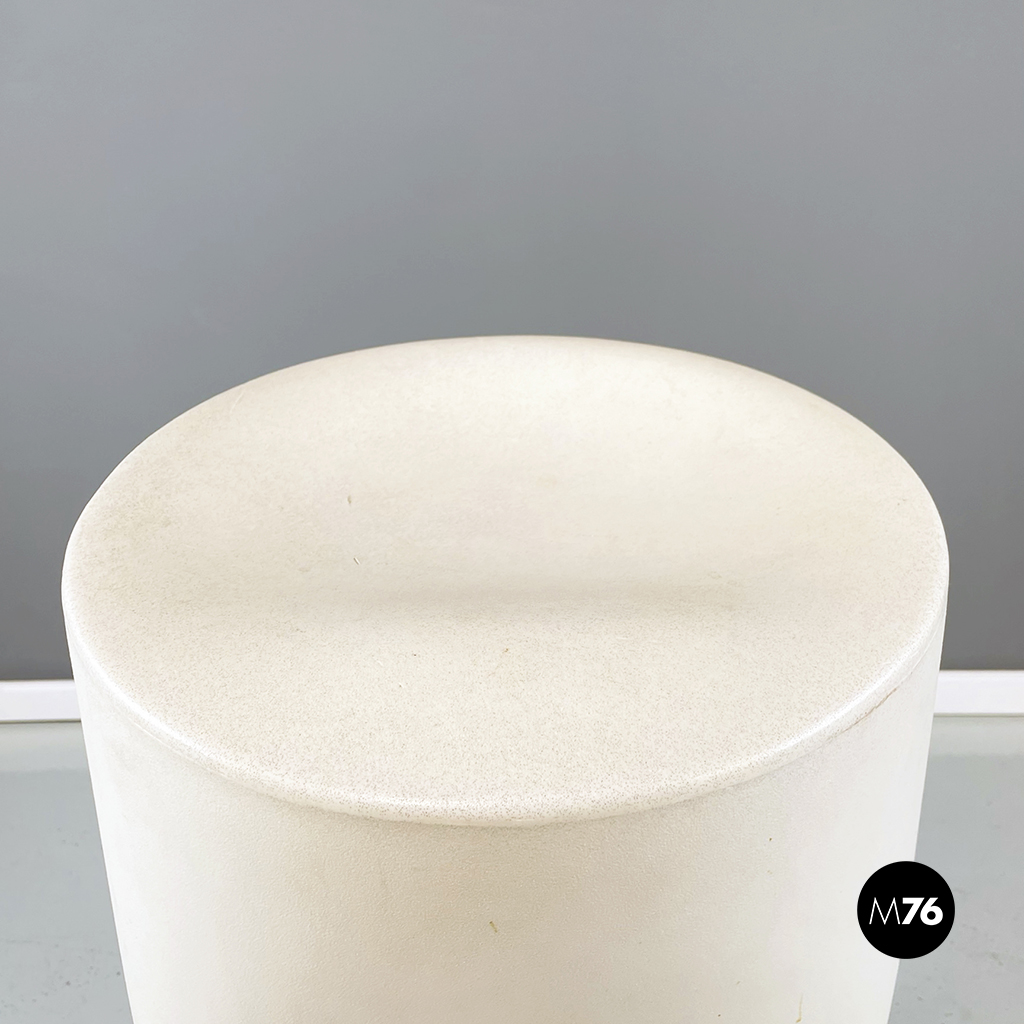 Sgabello da bar modello Tokyo Pop a base tonda in plastica bianca con finitura opaca. La struttura presenta una silhouette morbida e arrotondata. Poggiapiedi presente alla base.