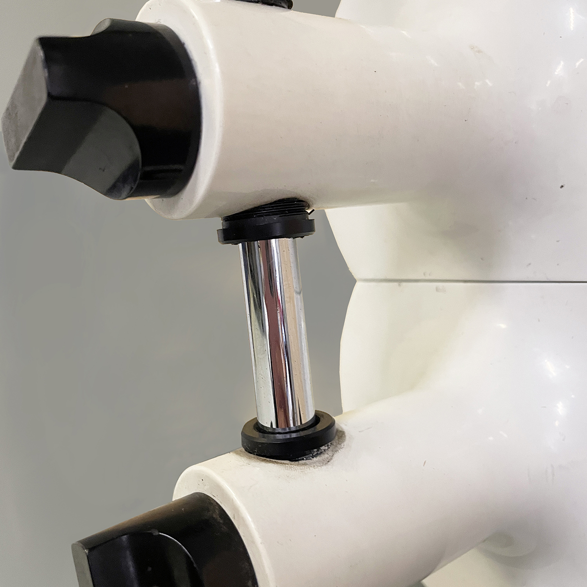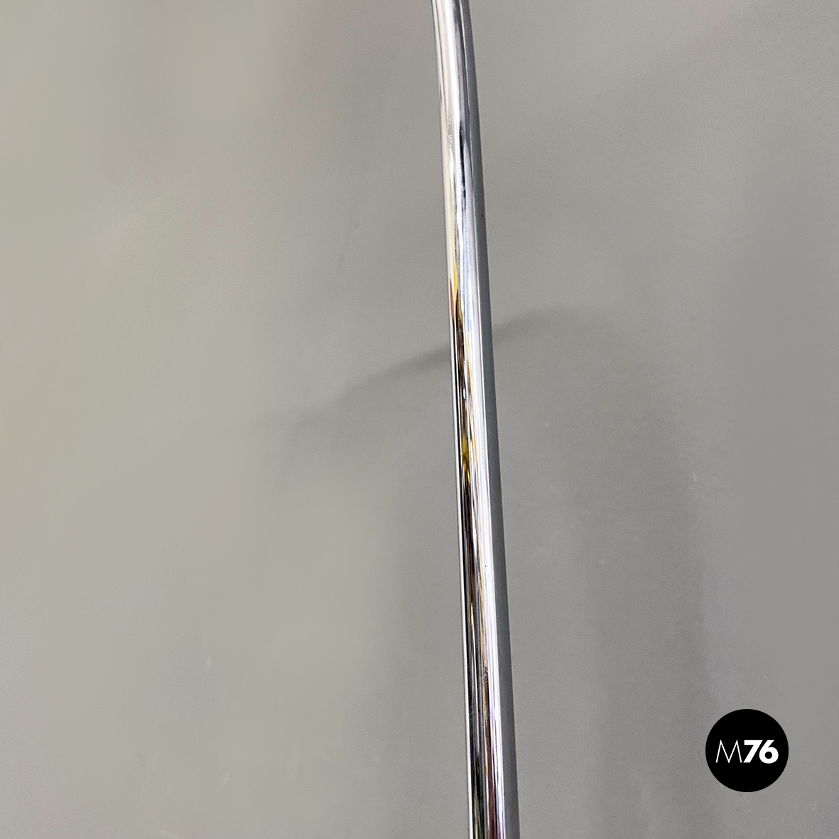Discrete condizioni. La lampada a braccio presenta segni sparsi e piccole mancanze di vernice sparse, soprattutto sul profilo del paralume e alla base. L’acciaio presenta leggeri segni del tempo. Il paralume presenta un difetto evidente.