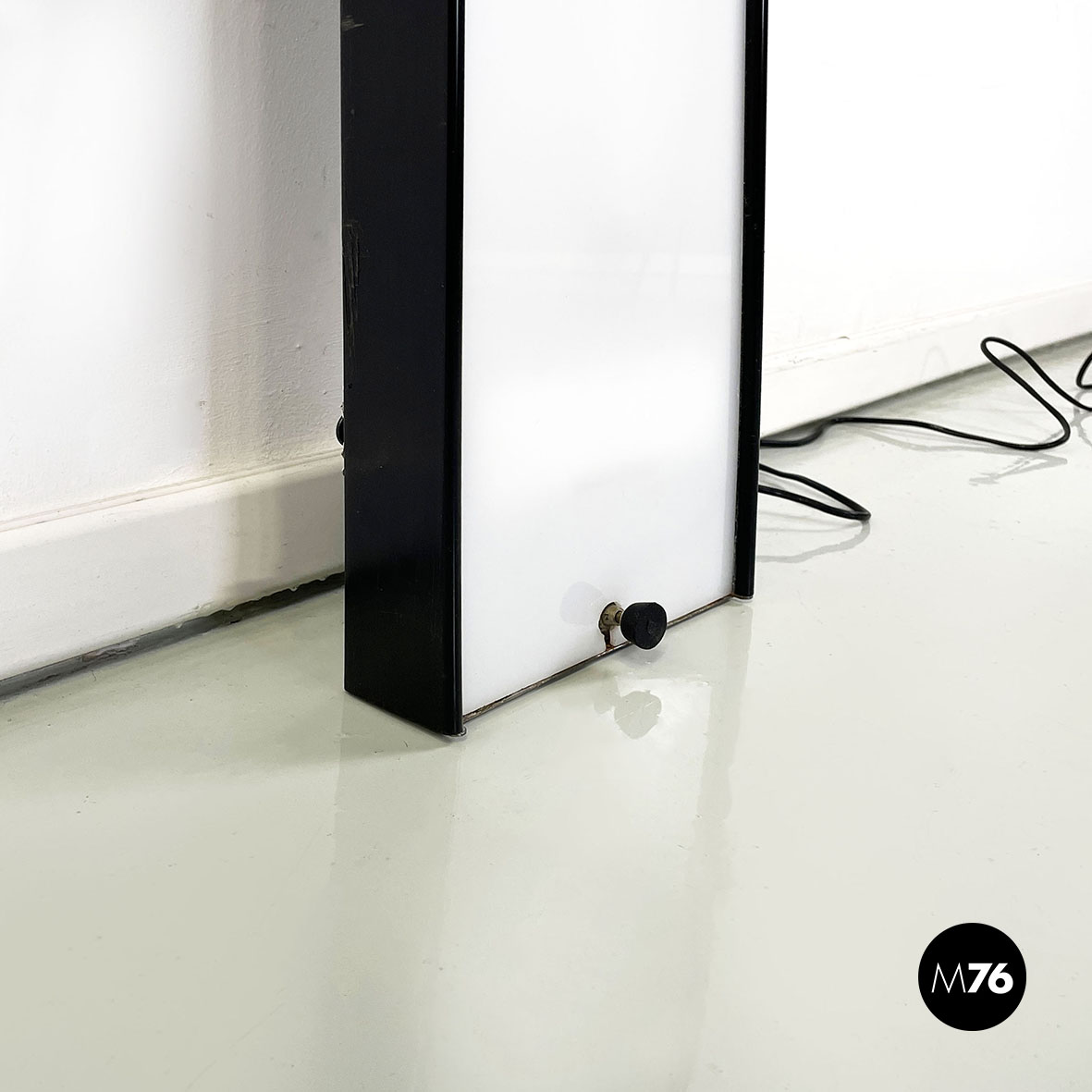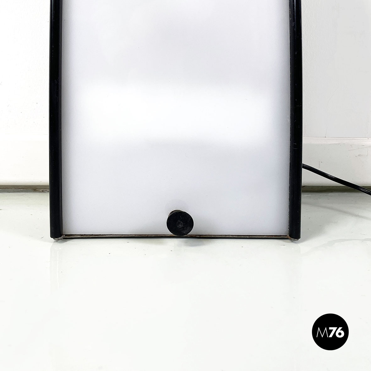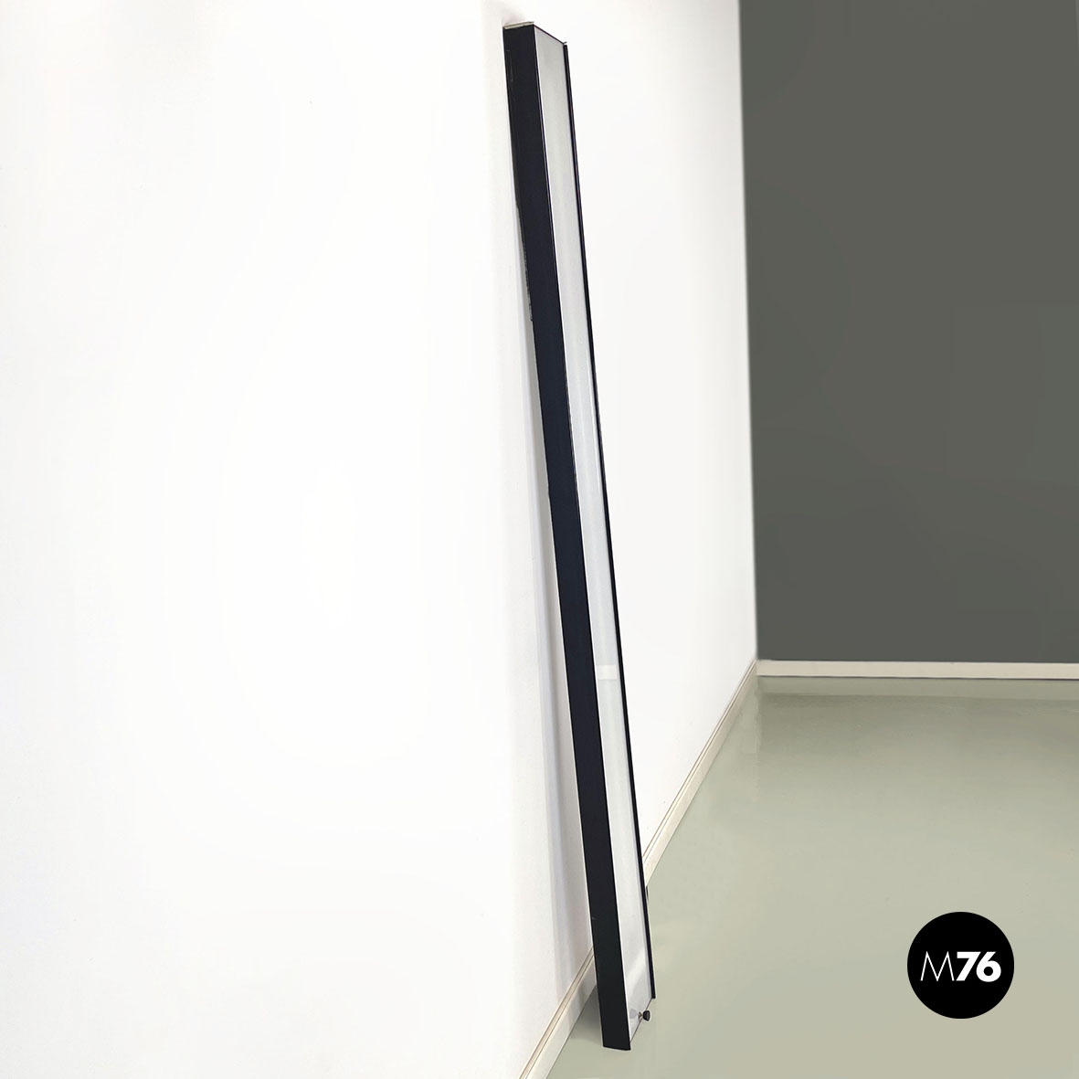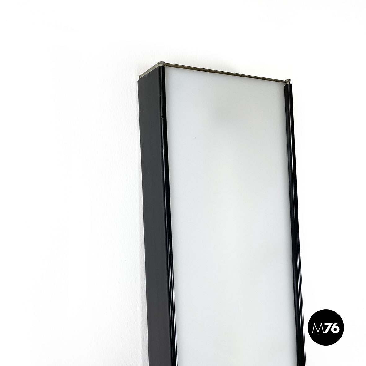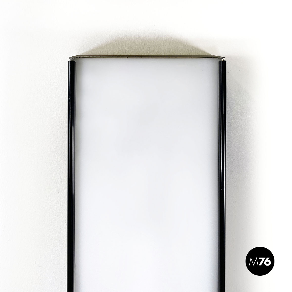 Lampada da parete modello Gronda con diffusore rettangolare in plastica bianca. La fonte luminosa è presente su tutto il fronte. La struttura della cornice è in plastica nera.