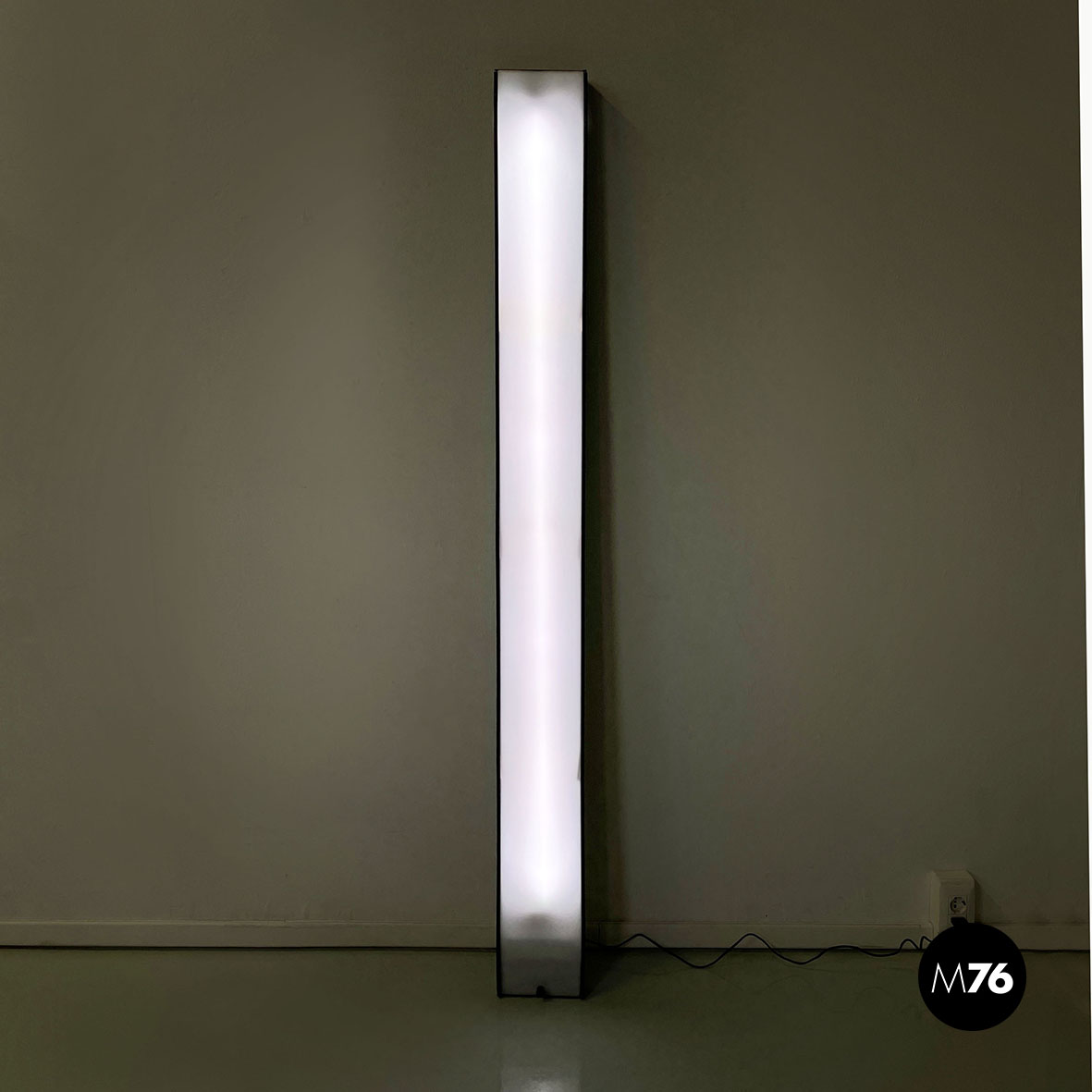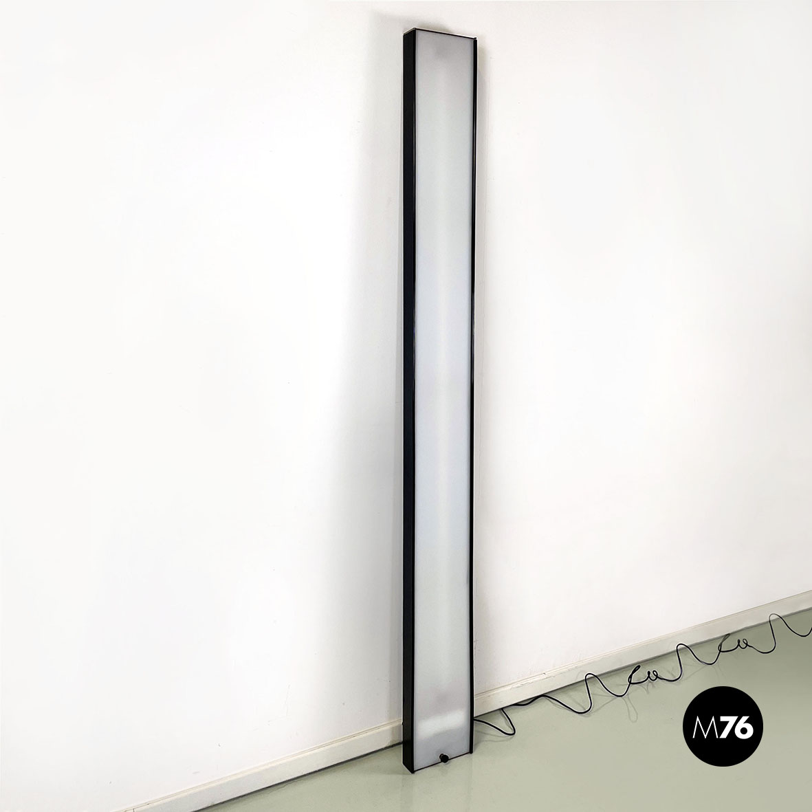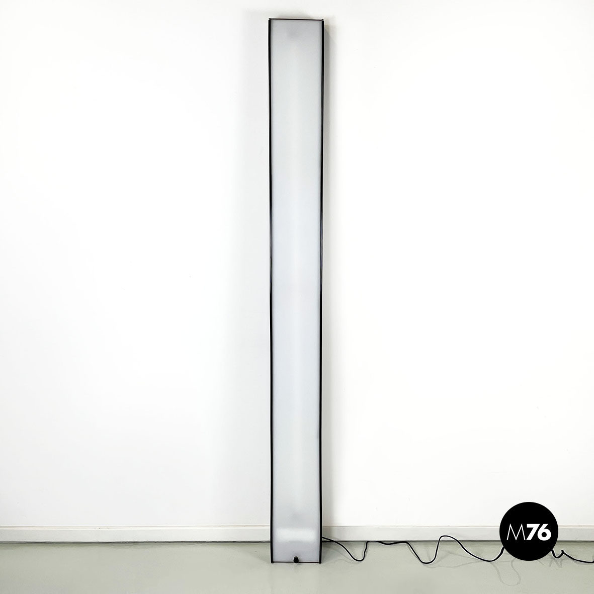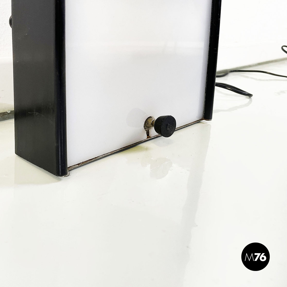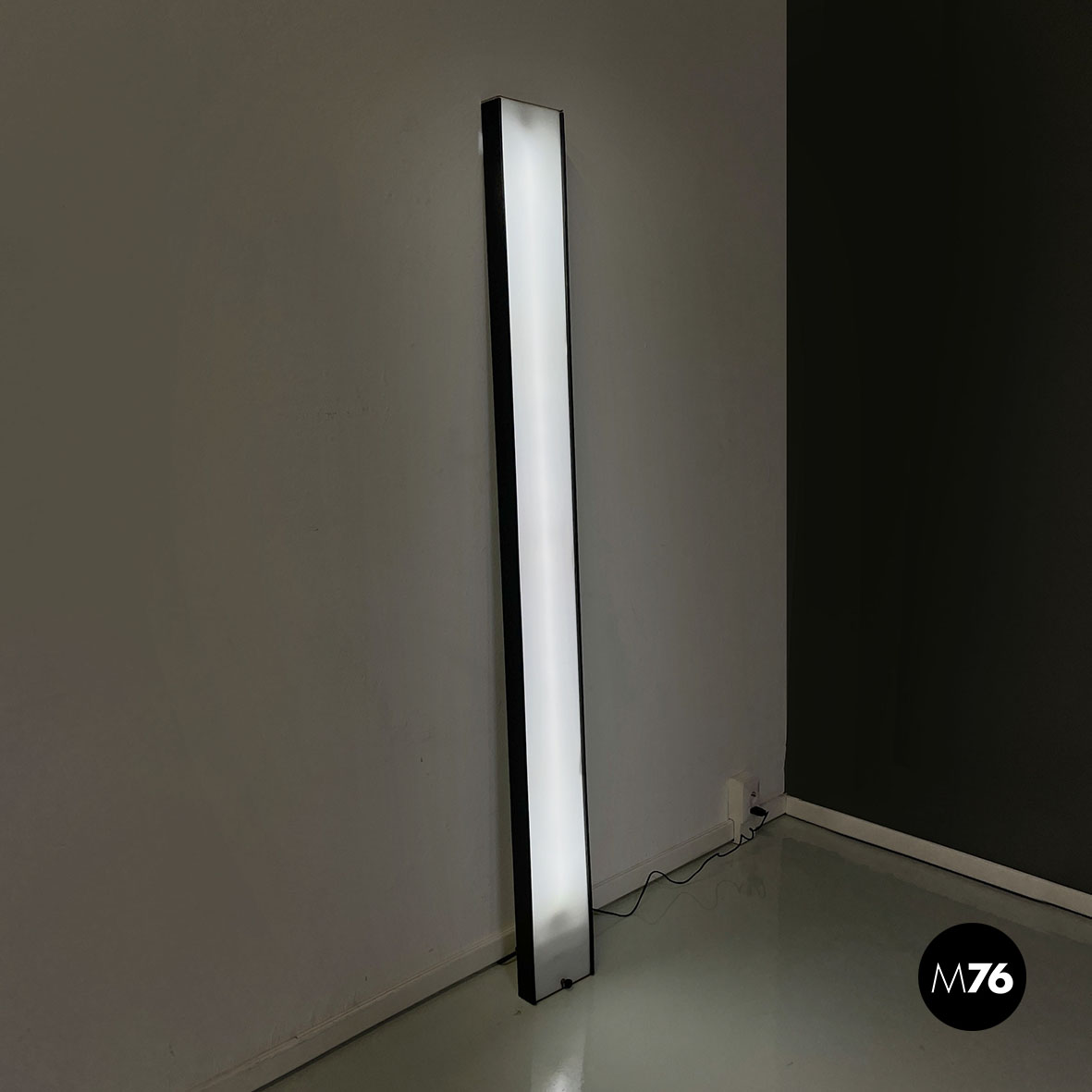 Lampada da parete modello Gronda con diffusore rettangolare in plastica bianca. La fonte luminosa è presente su tutto il fronte. La struttura della cornice è in plastica nera.