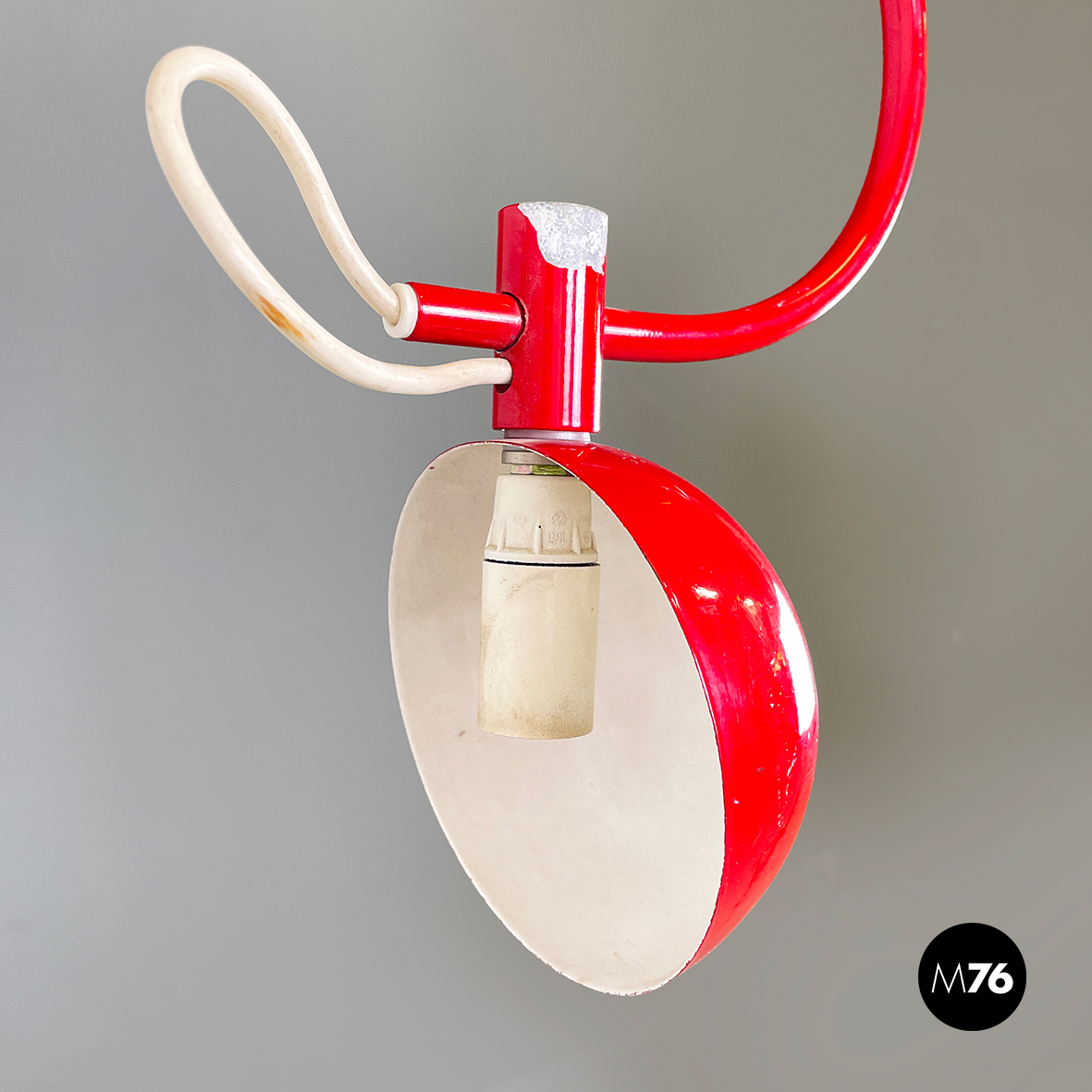 Lampada da parete in metallo bianco e rosso, 1970 ca.