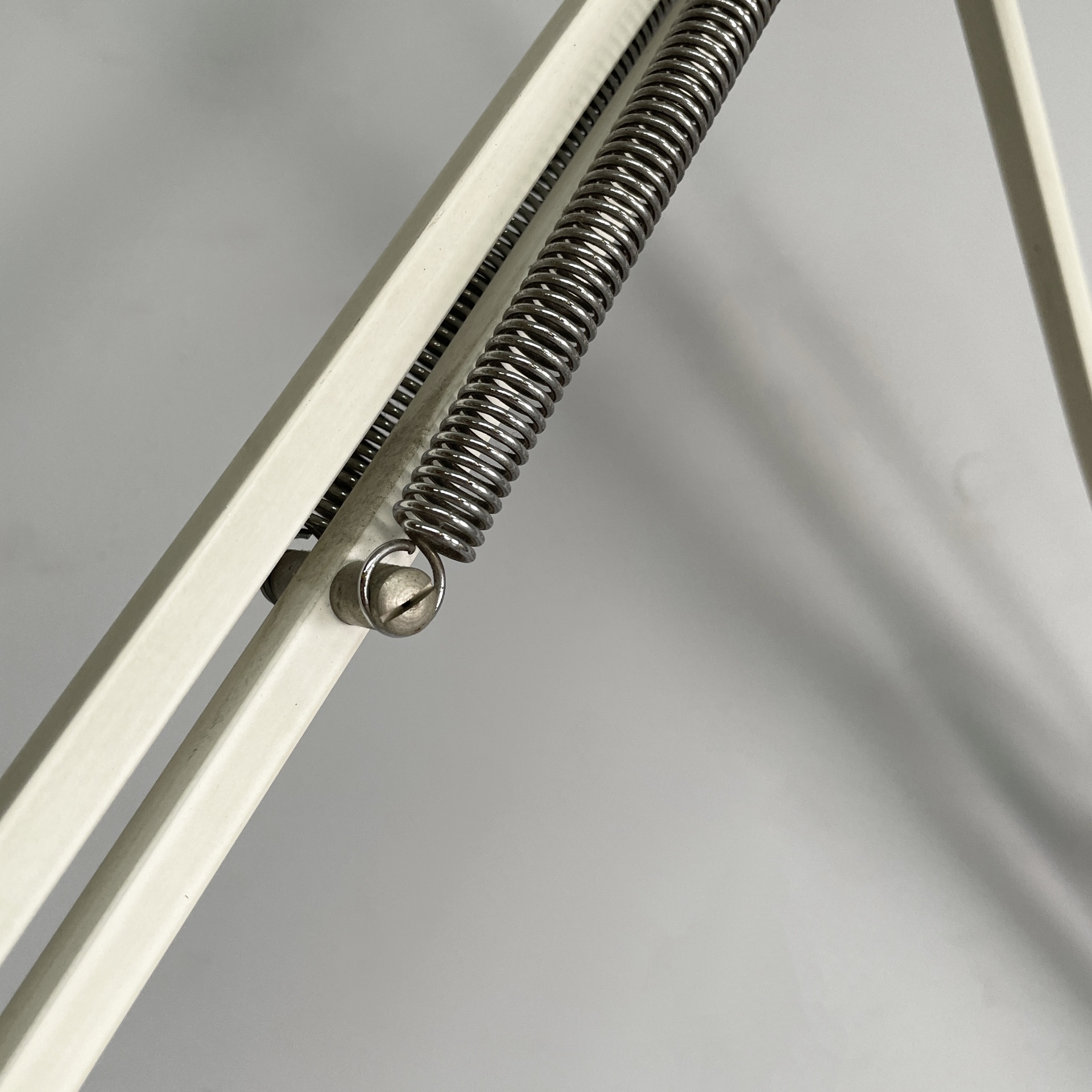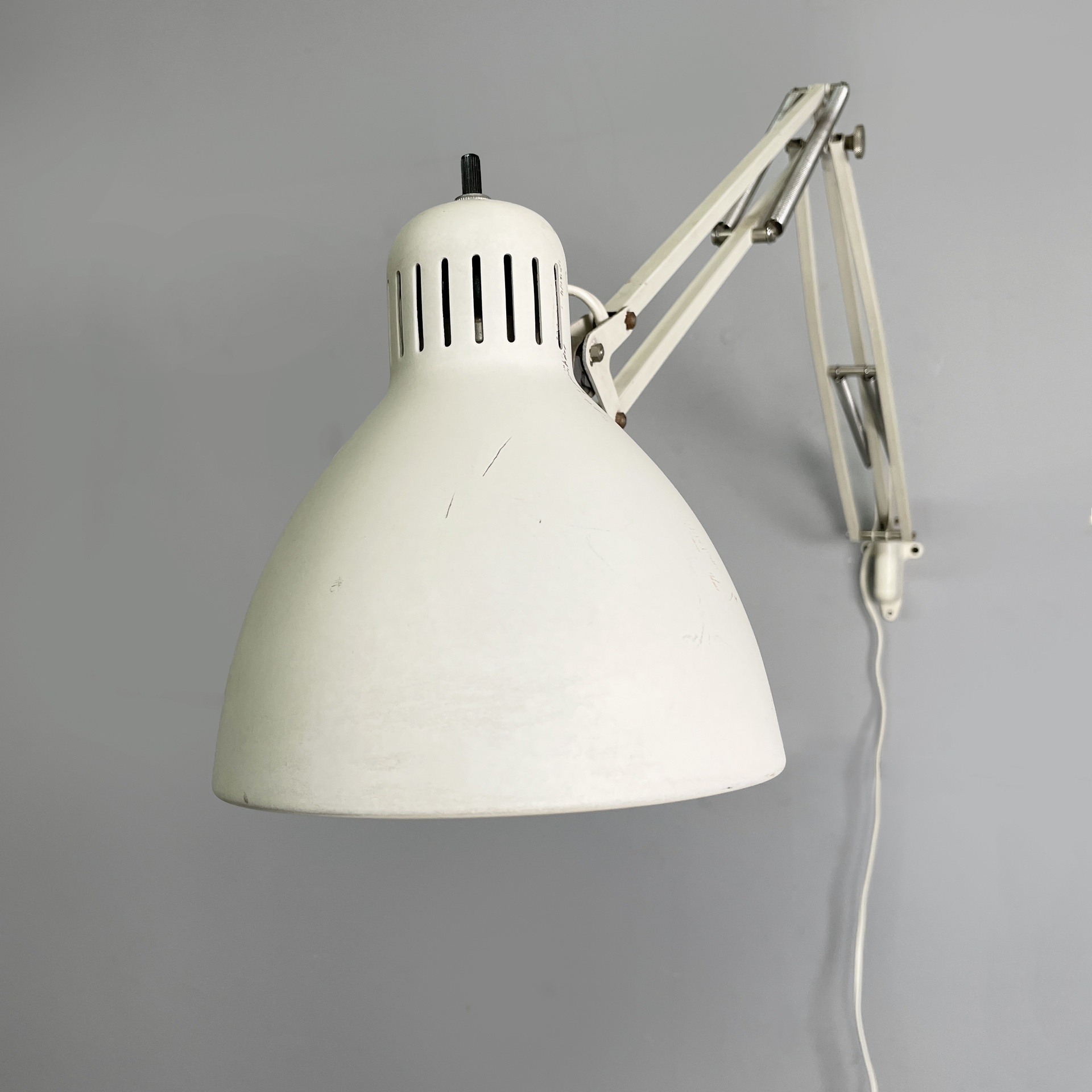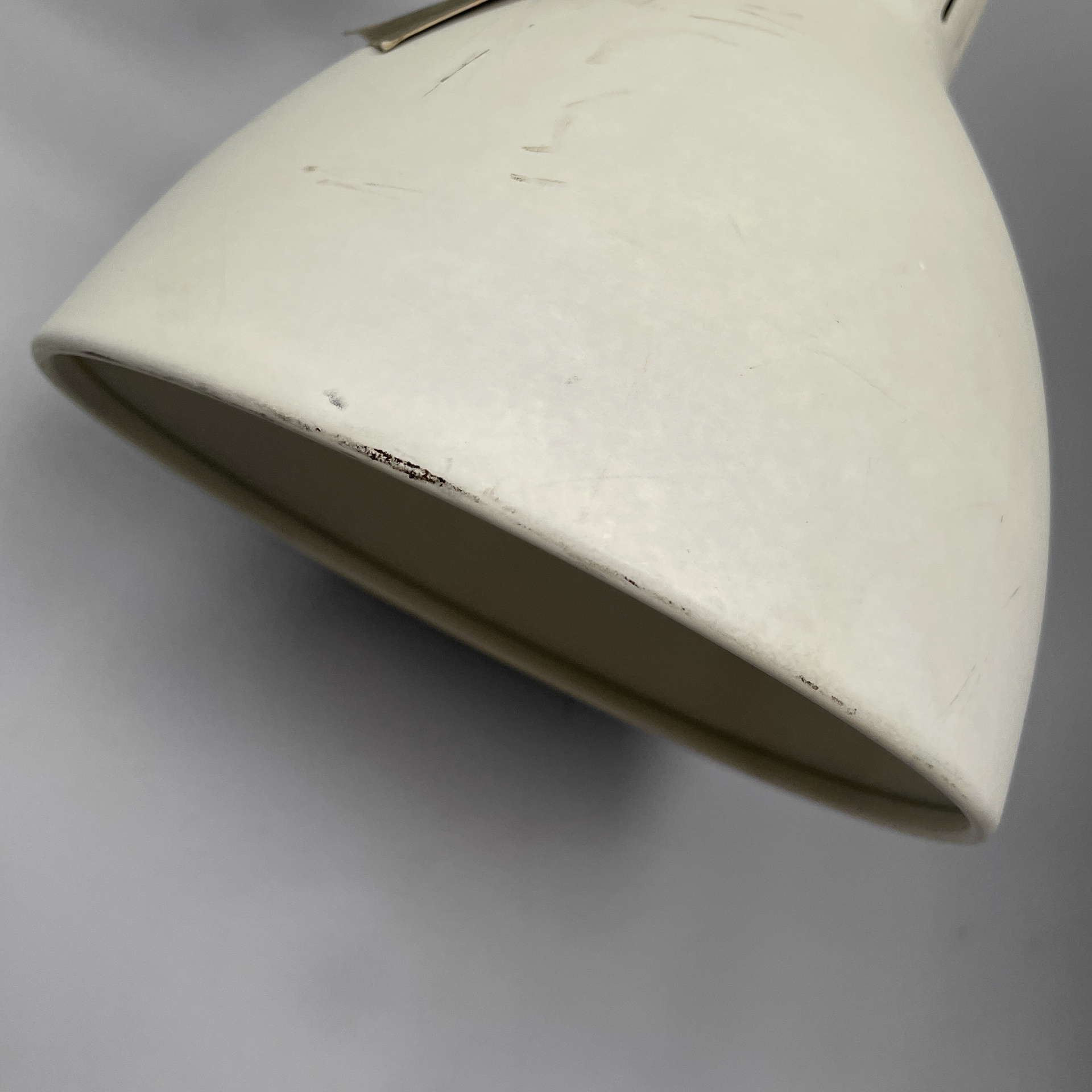 Lampada a braccio da parete modello Naska Loris in metallo bianco. Il paralume orientabile di forma conica presenta l’interruttore nero. La struttura è composta da due bracci orientabili in metallo bianco, composti da due listelli a sezione rettangolare. Attacco a parete in bianco.