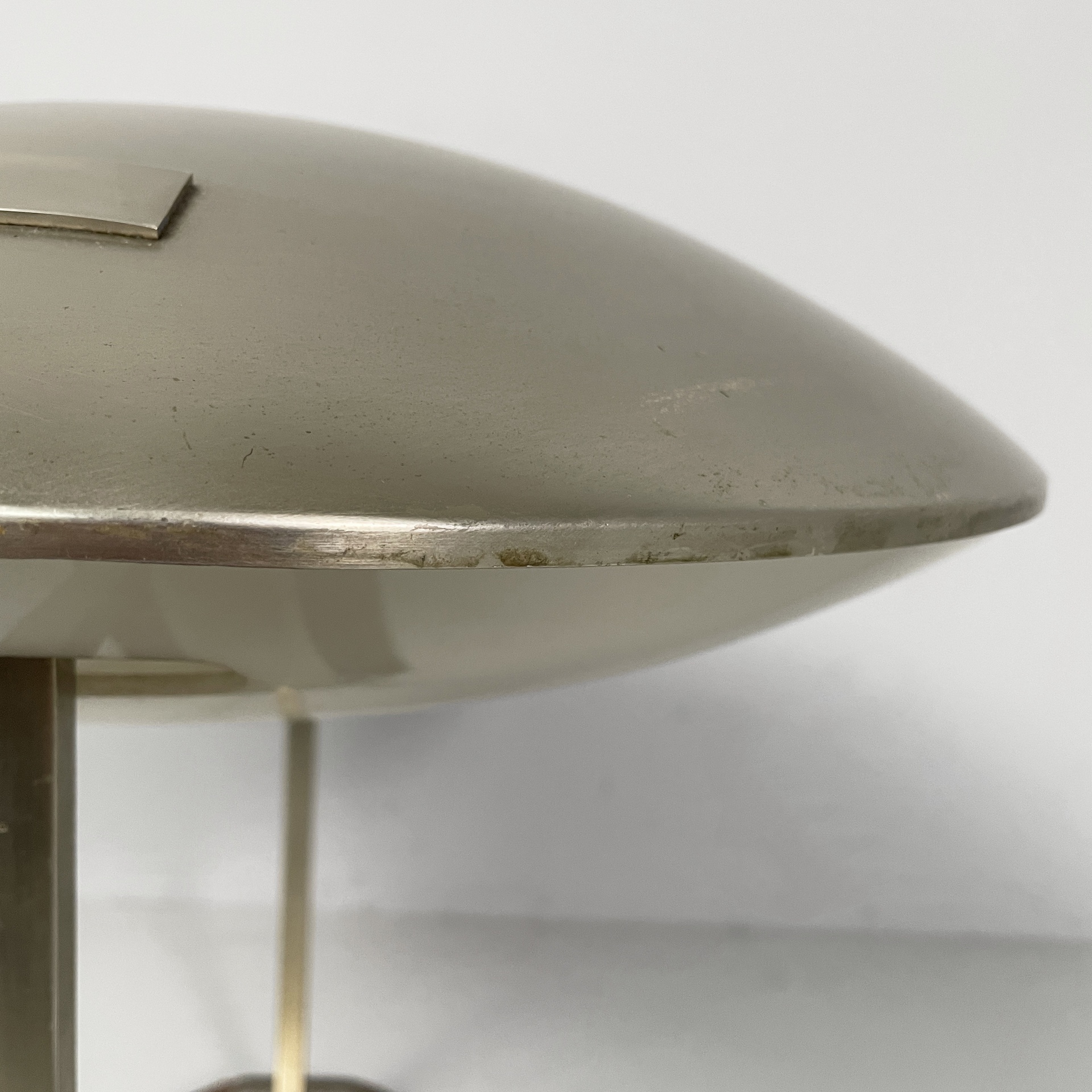 Condizioni discrete. Il metallo presenta segni del tempo sparsi. La base in cuoi presenta numerosi segni e mancanze.