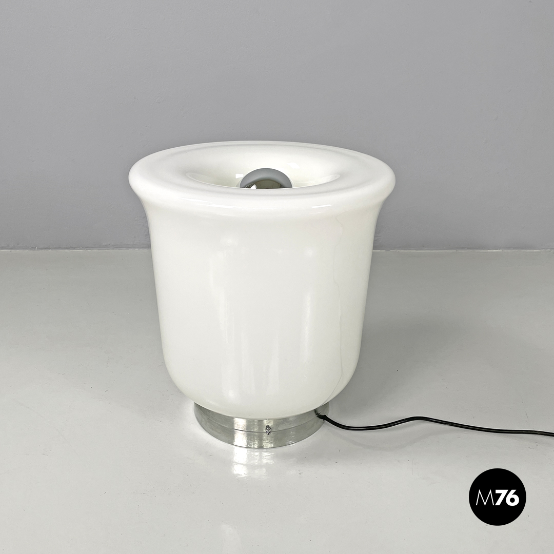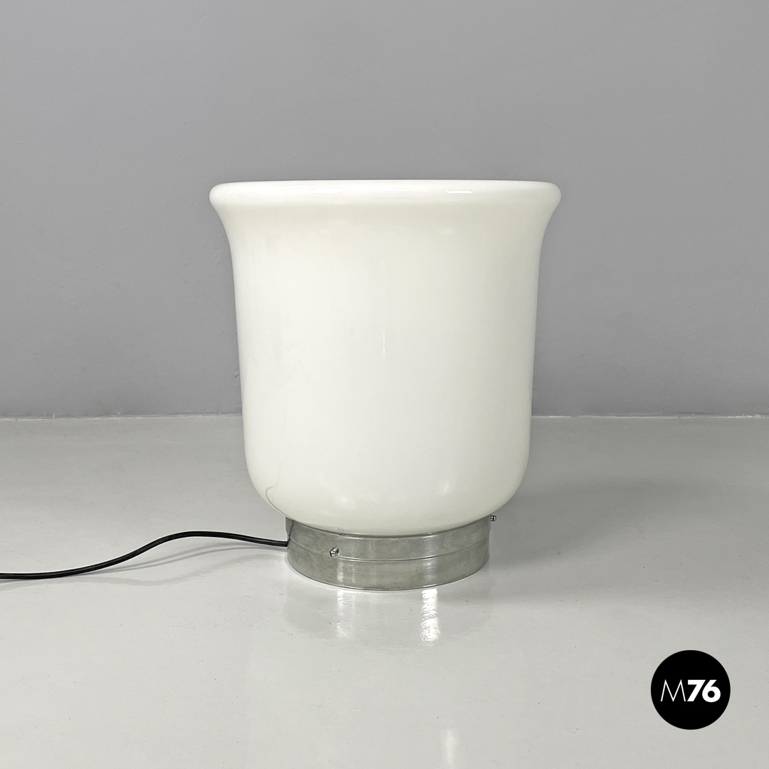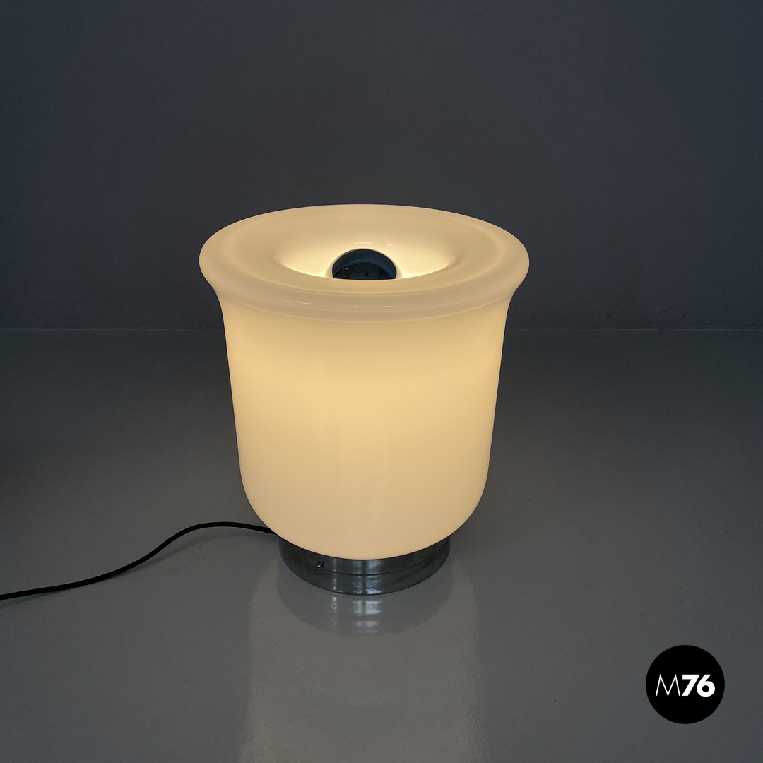 Lampada da tavolo in metallo e vetro bianco, 1970 ca.