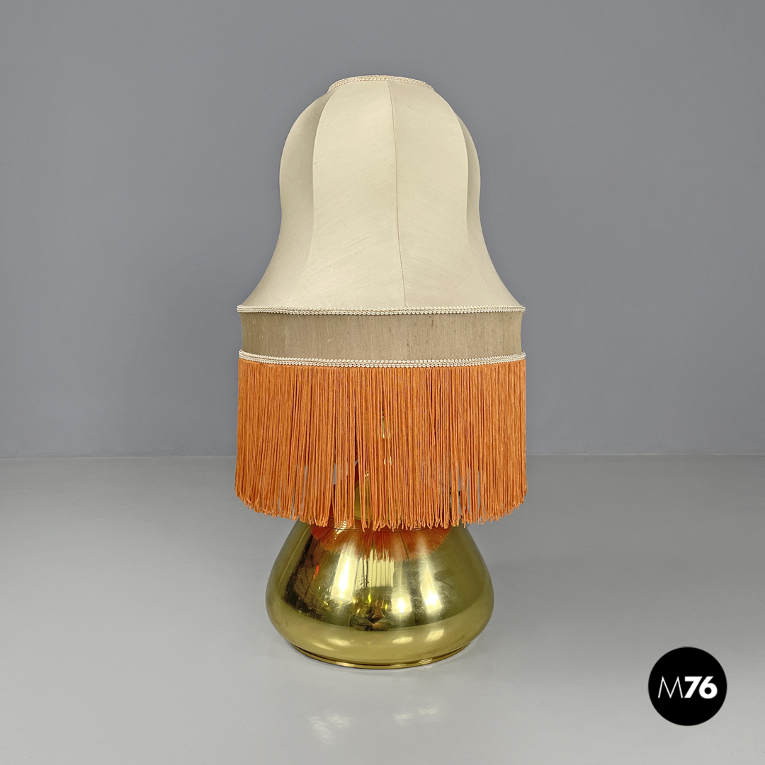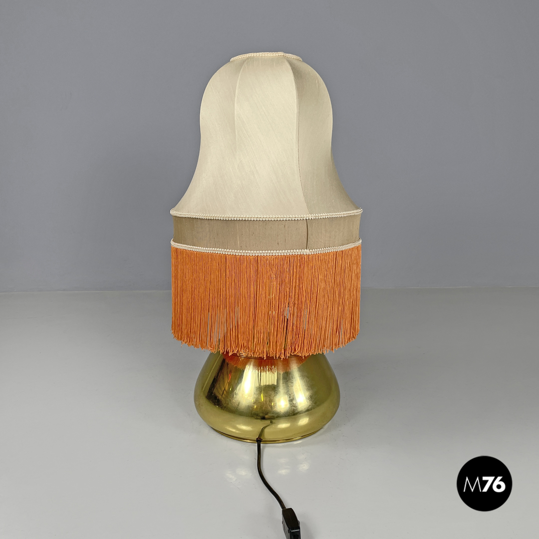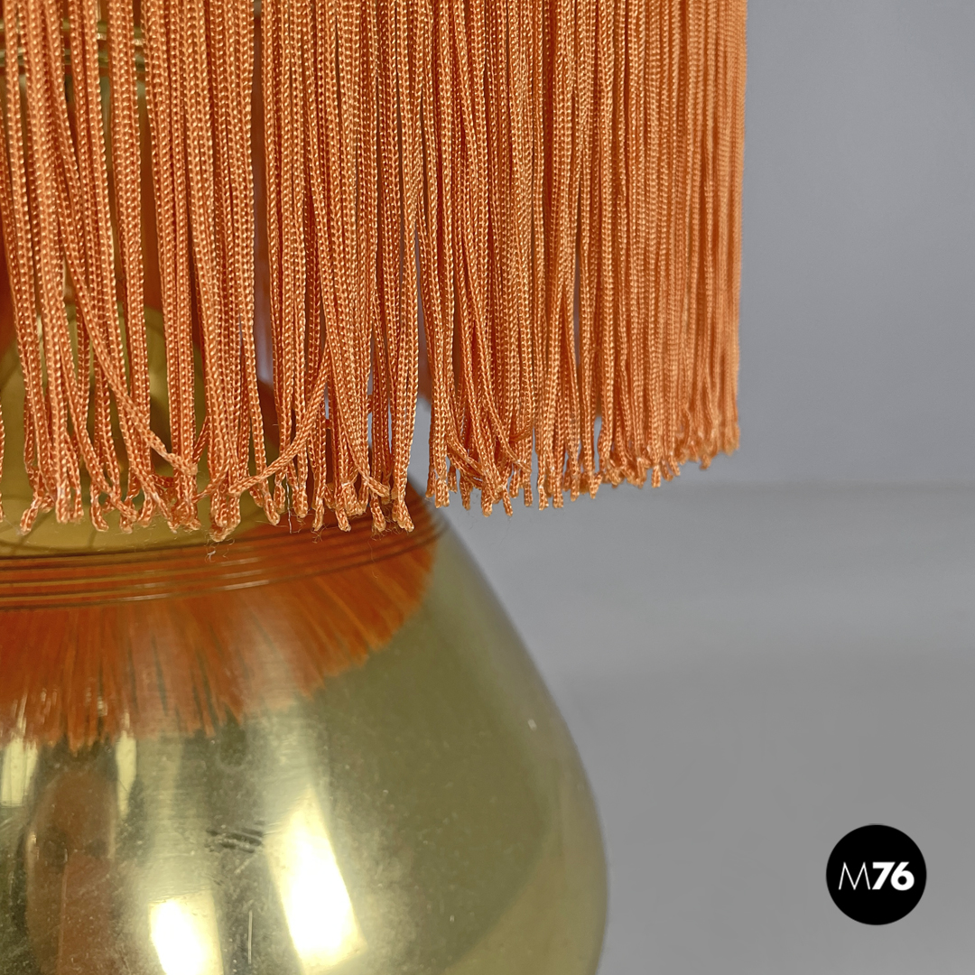 Lampada da tavolo in ottone e tessuto beige con frange arancioni, 1980 ca.