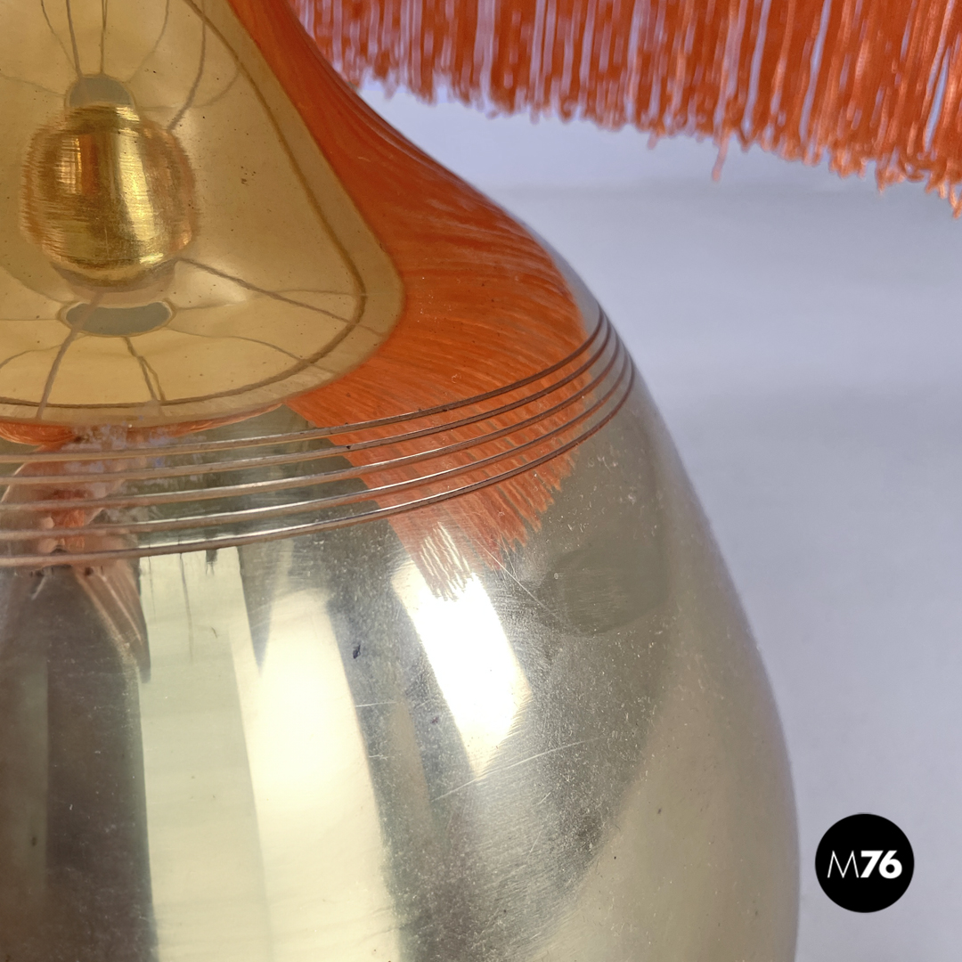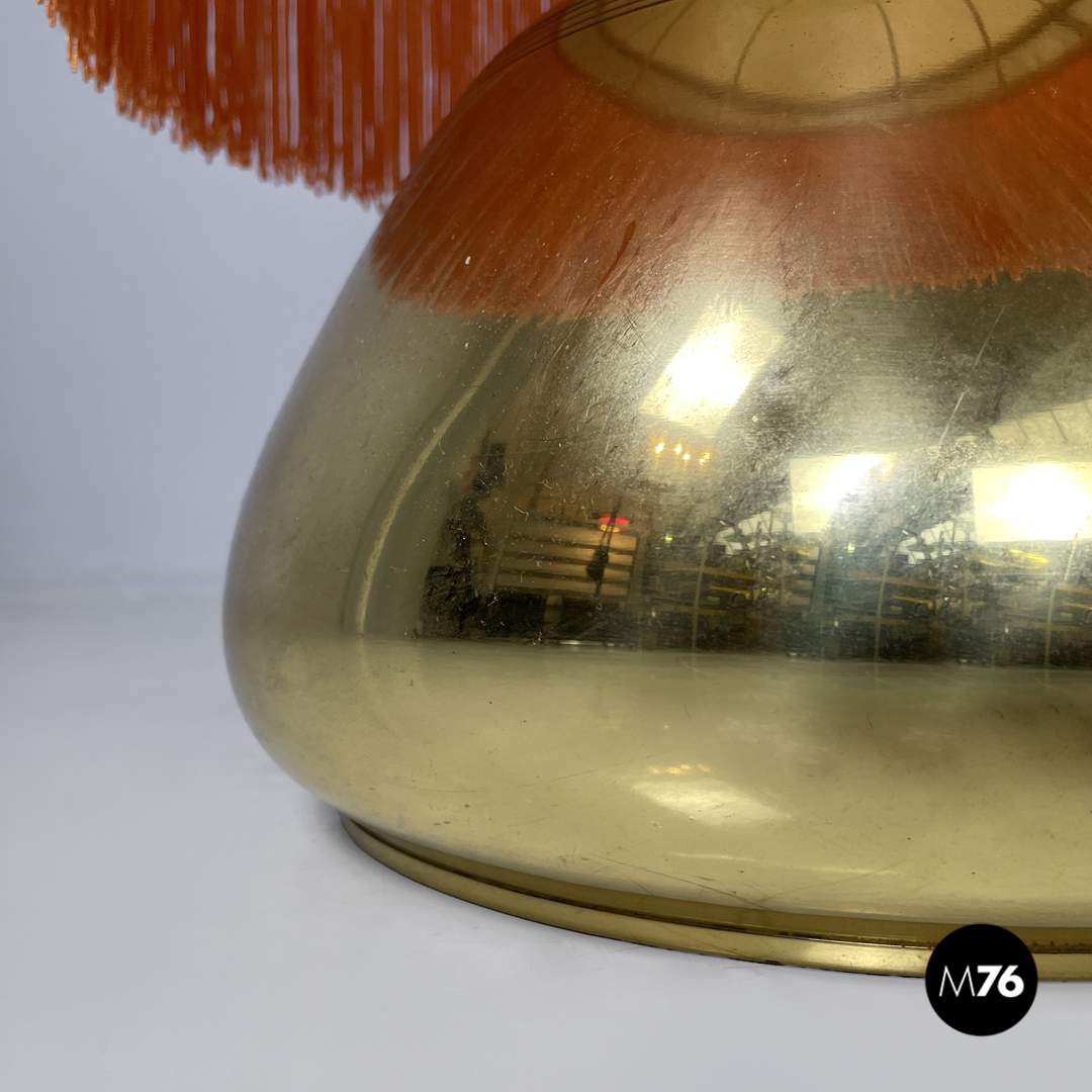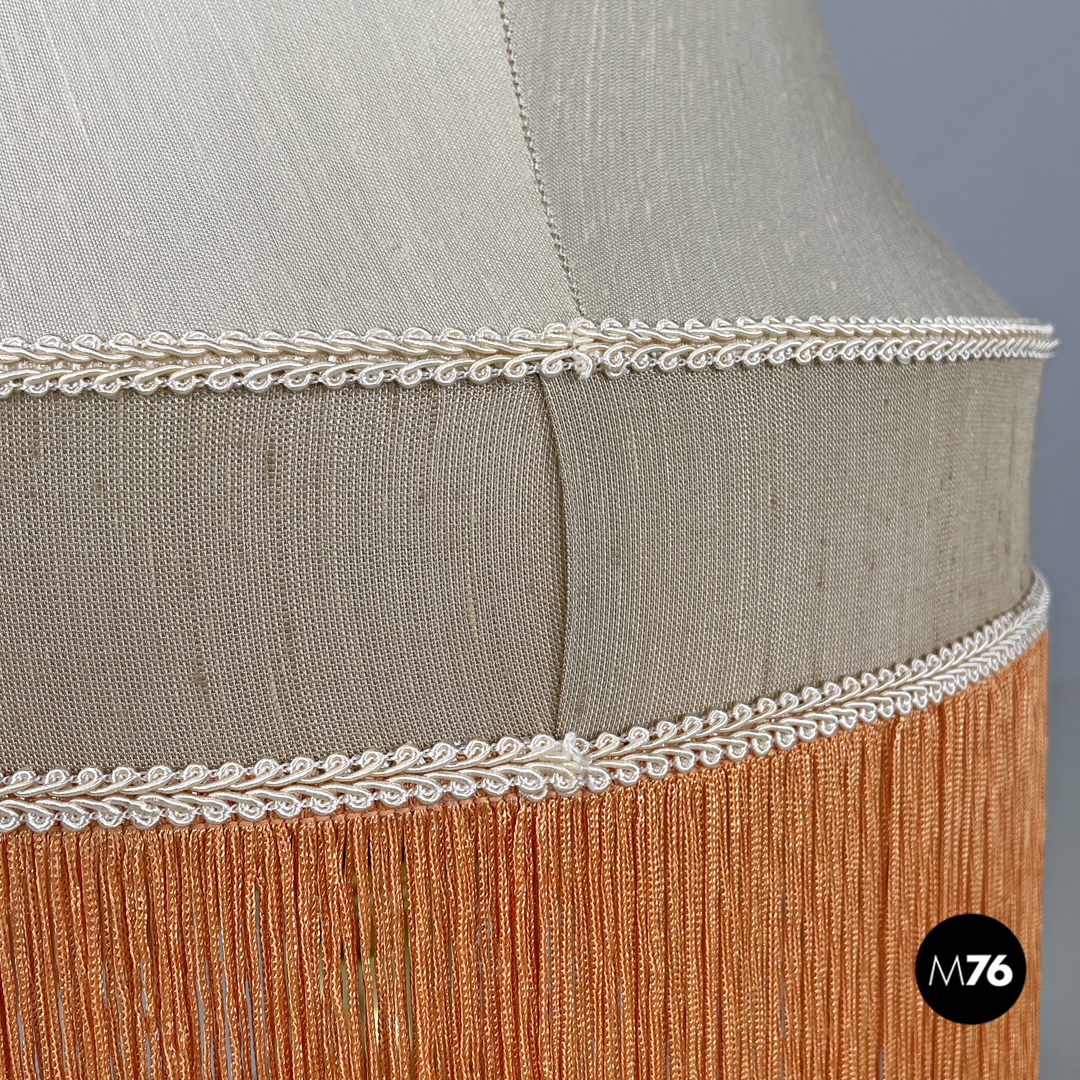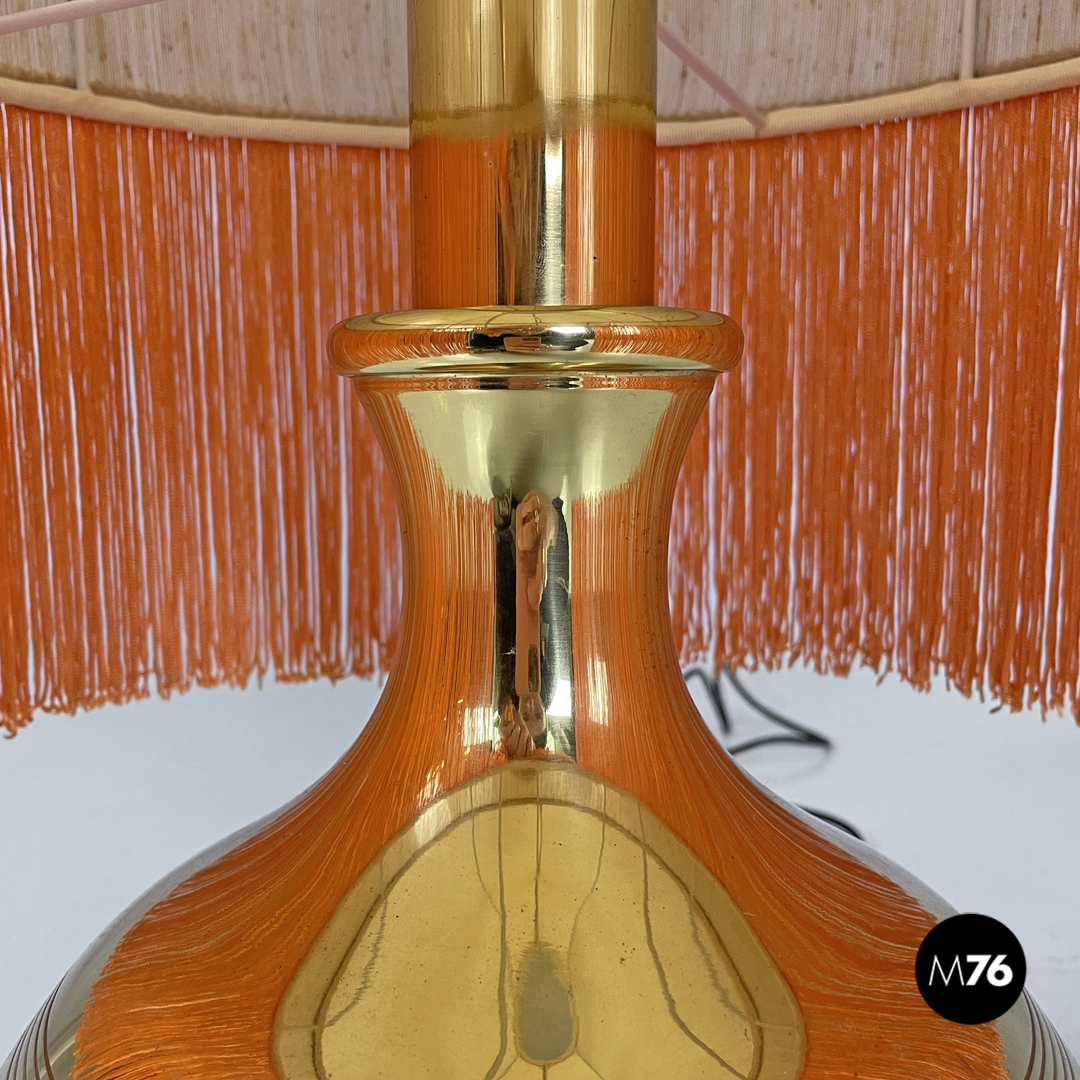 Lampada da tavolo in ottone e tessuto beige con frange arancioni, 1980 ca.