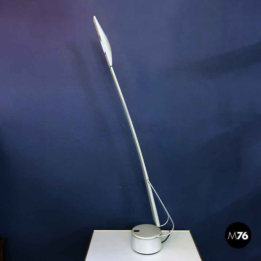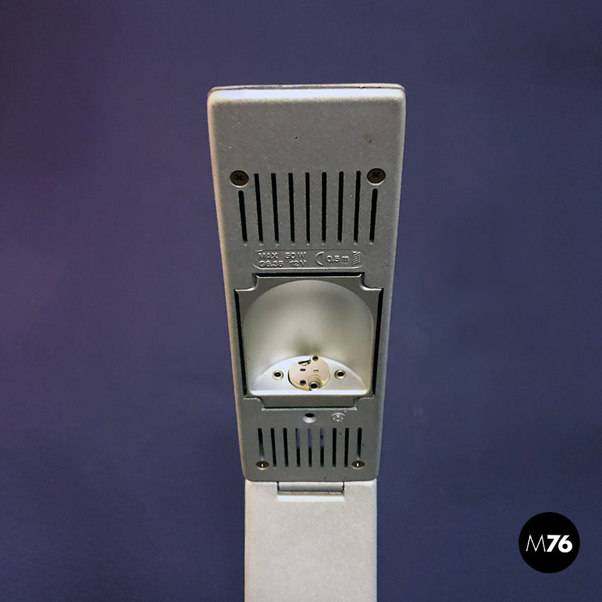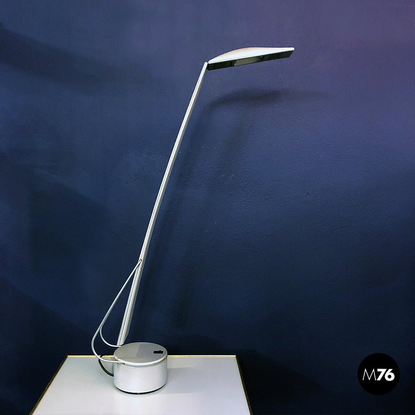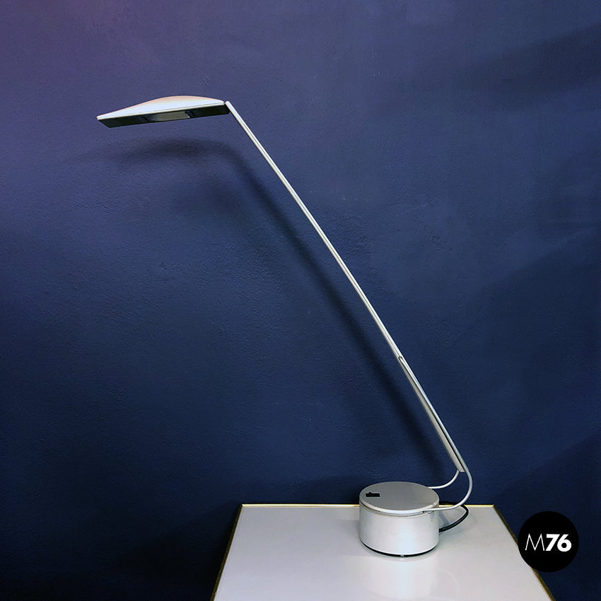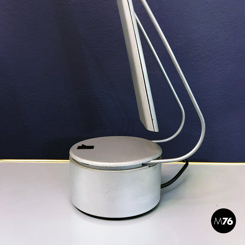 Lampada da tavolo regolabile, con struttura in plastica e snodi in metallo.
