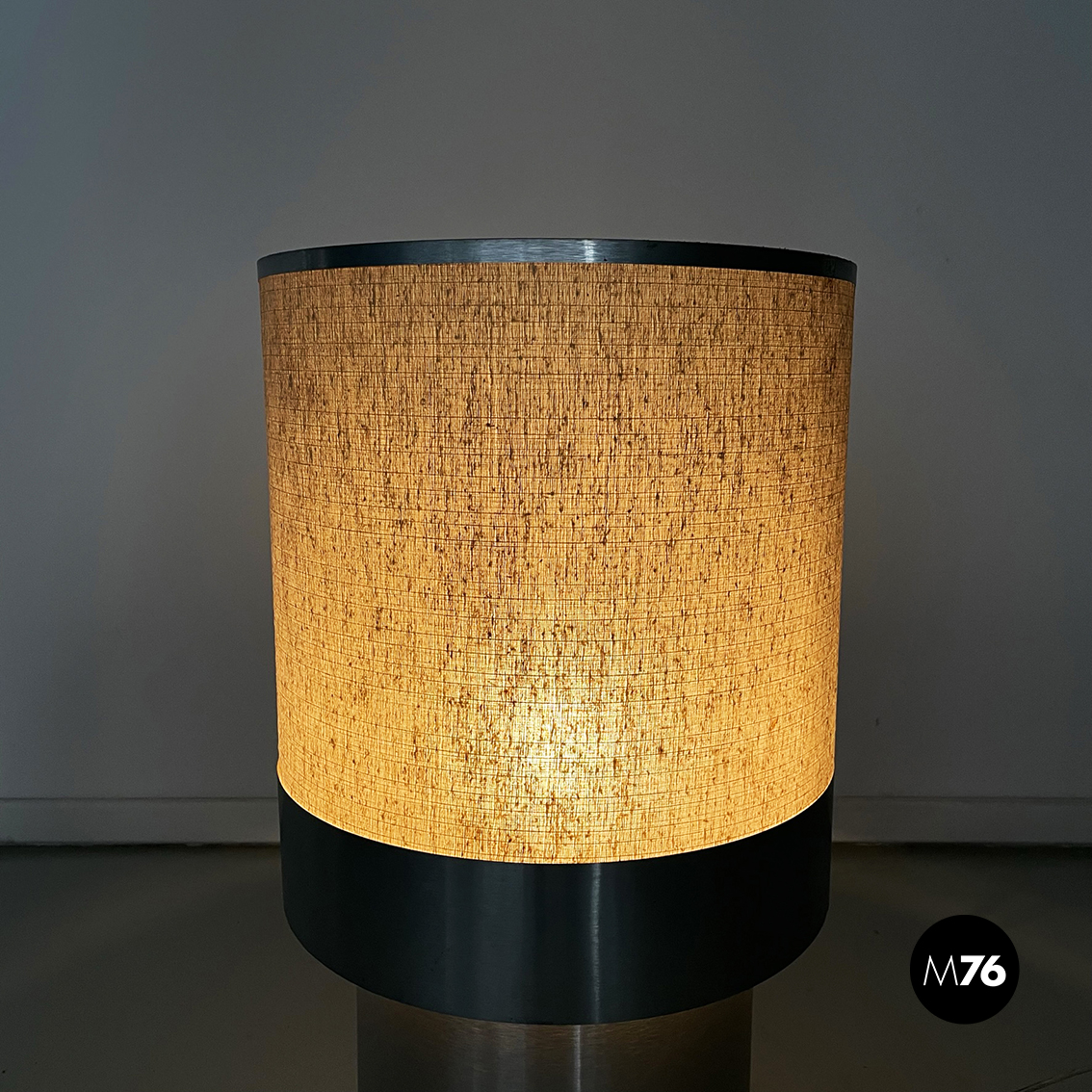 Lampada da tavolo in tessuto e alluminio spazzolato, 1960 ca.