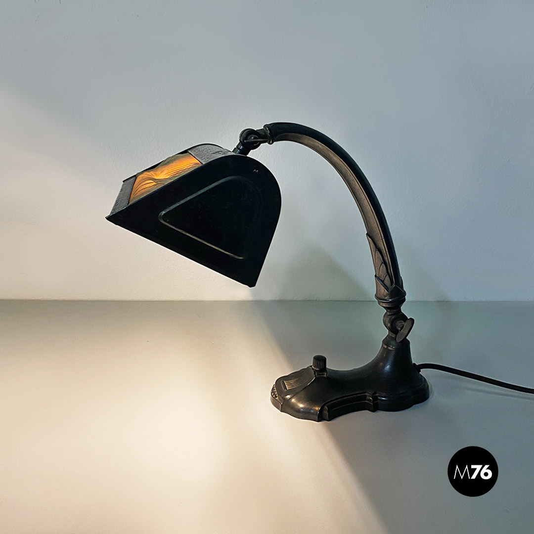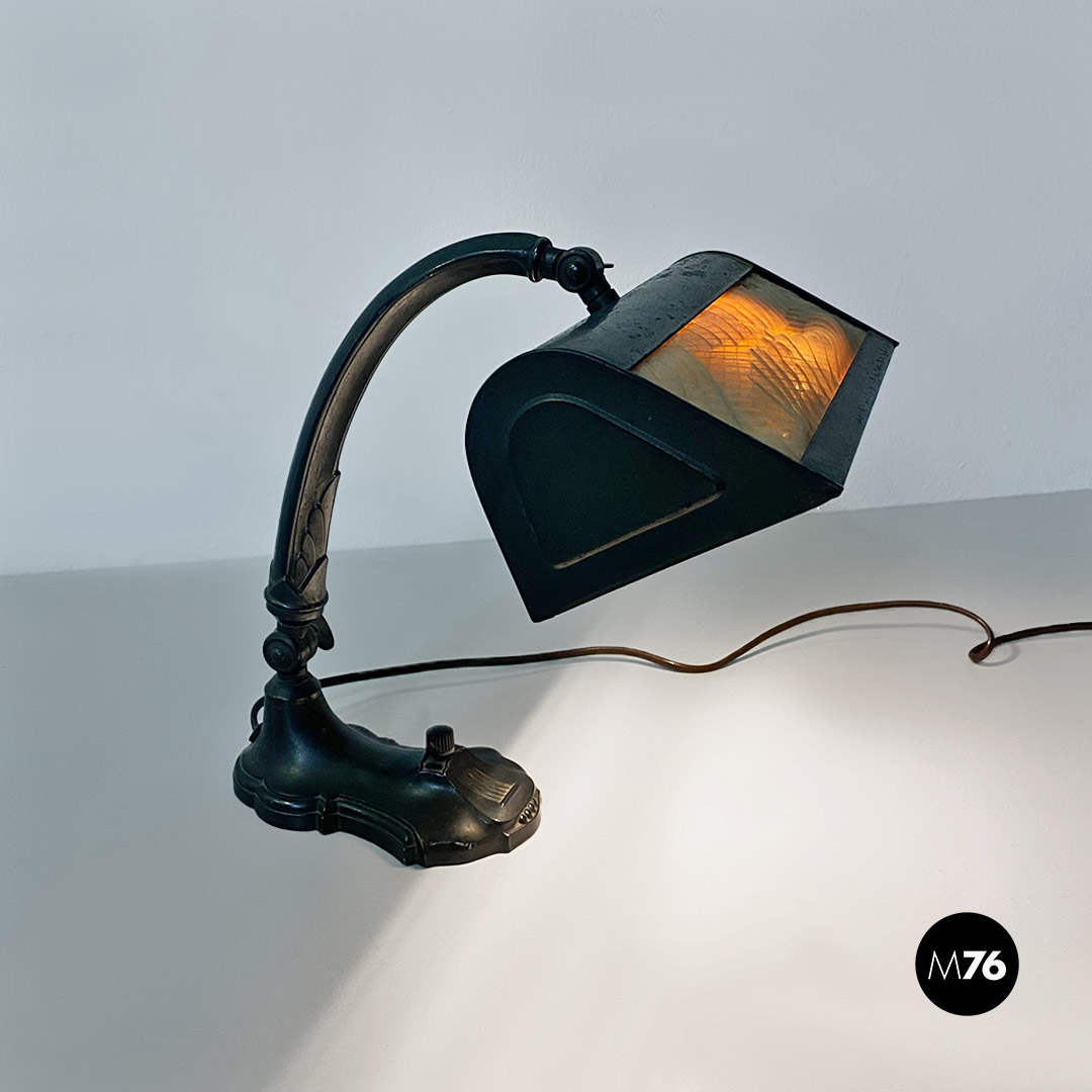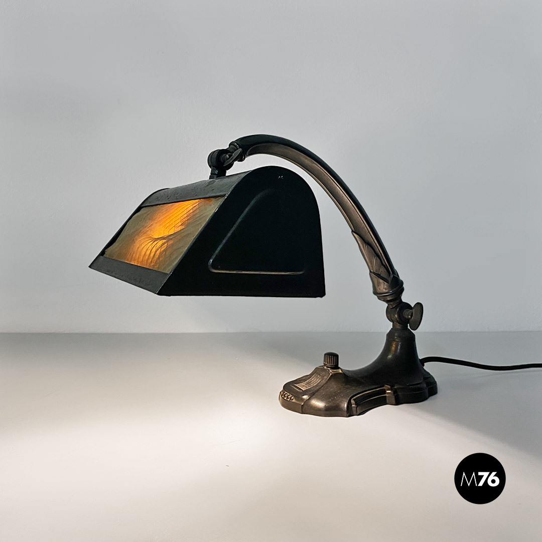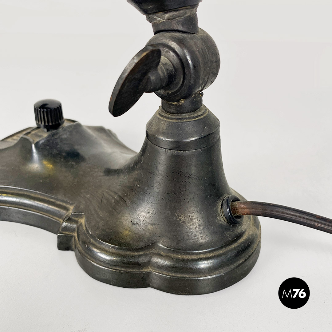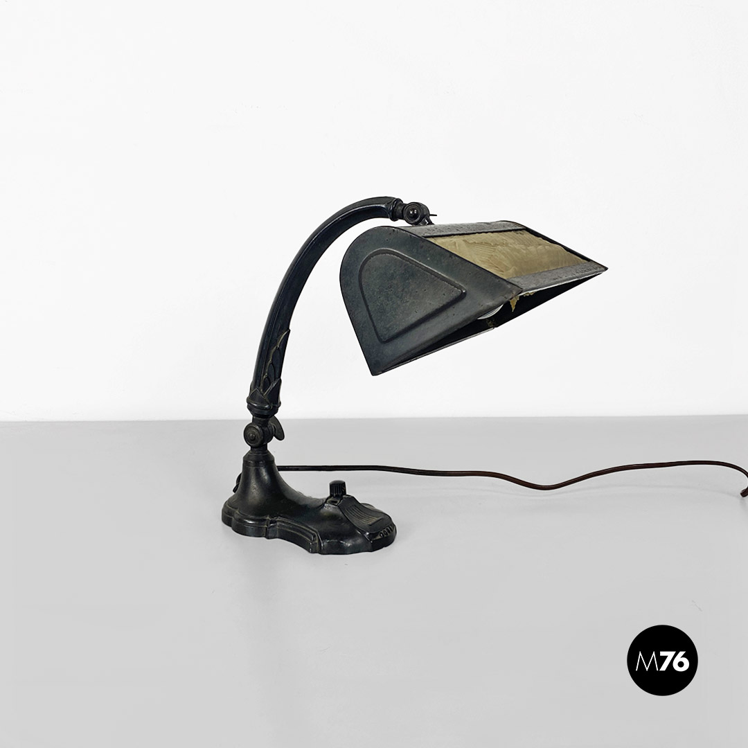 Lampada da tavolo ministeriale in metallo e tessuto, 1900 ca.