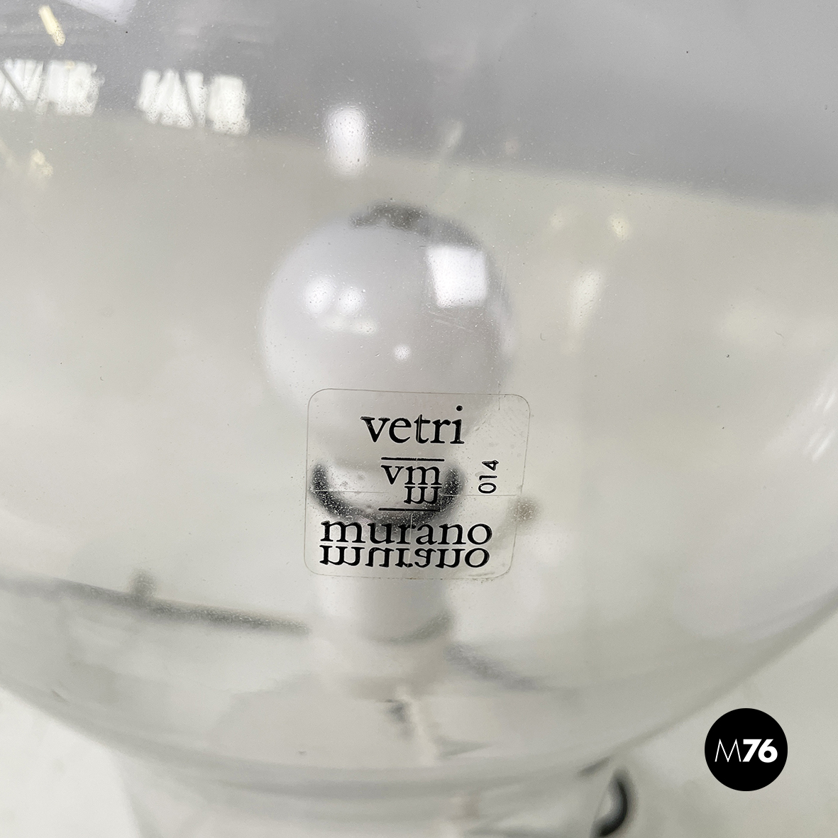 Prodotta da Skipper nel 1960 ca. e disegnata da Angelo Mangiarotti. Entrambi i vetri presentano un’etichetta che riporta “vetro di Murano”.
