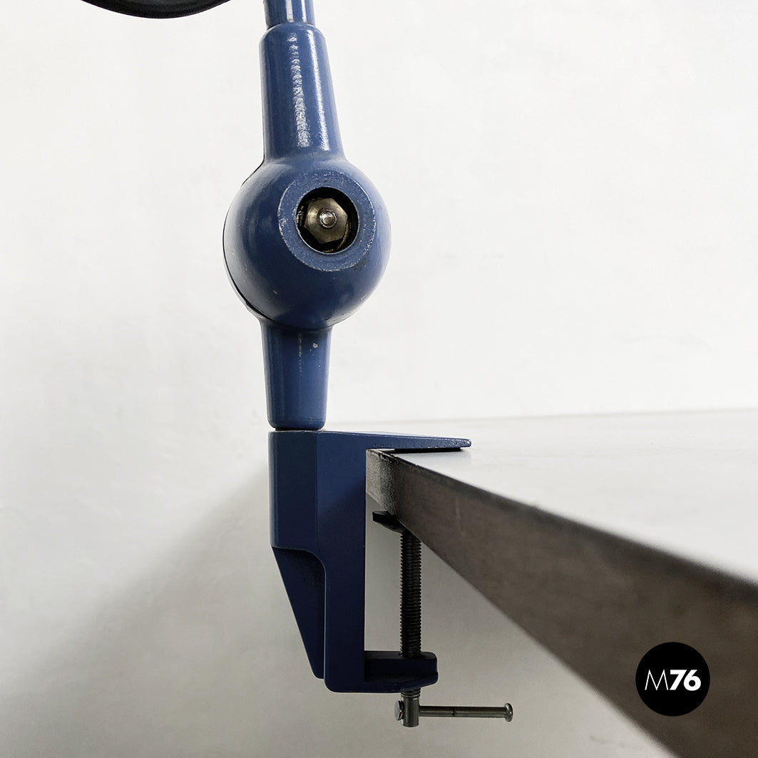 Lampada da tavolo in metallo blu con morsetto, 1970 ca.