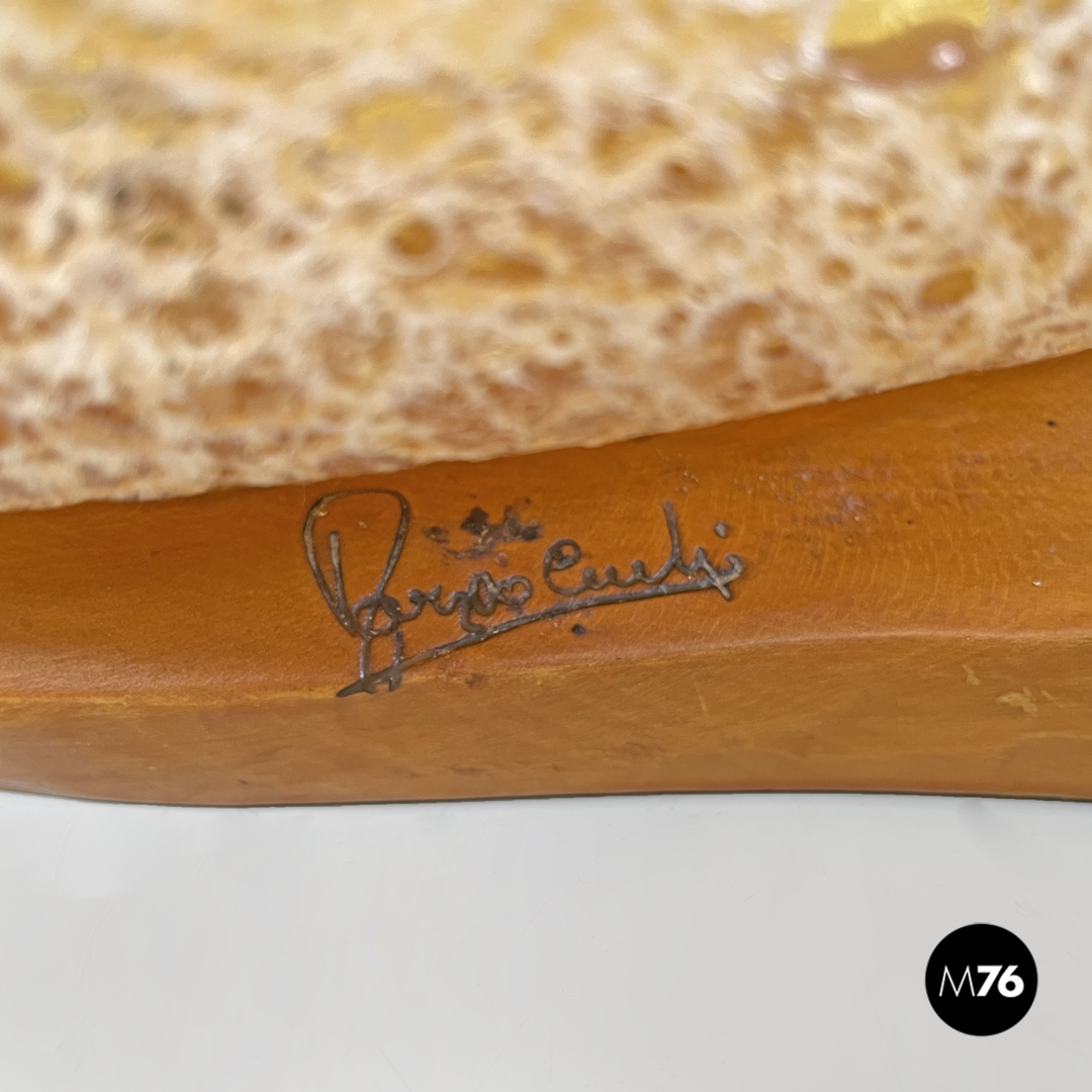 Prodotta da Dimensione Fuoco nel 1960 ca. e disegnata da Marzio Cecchi. Presente firma dell’artista sulla base in legno.