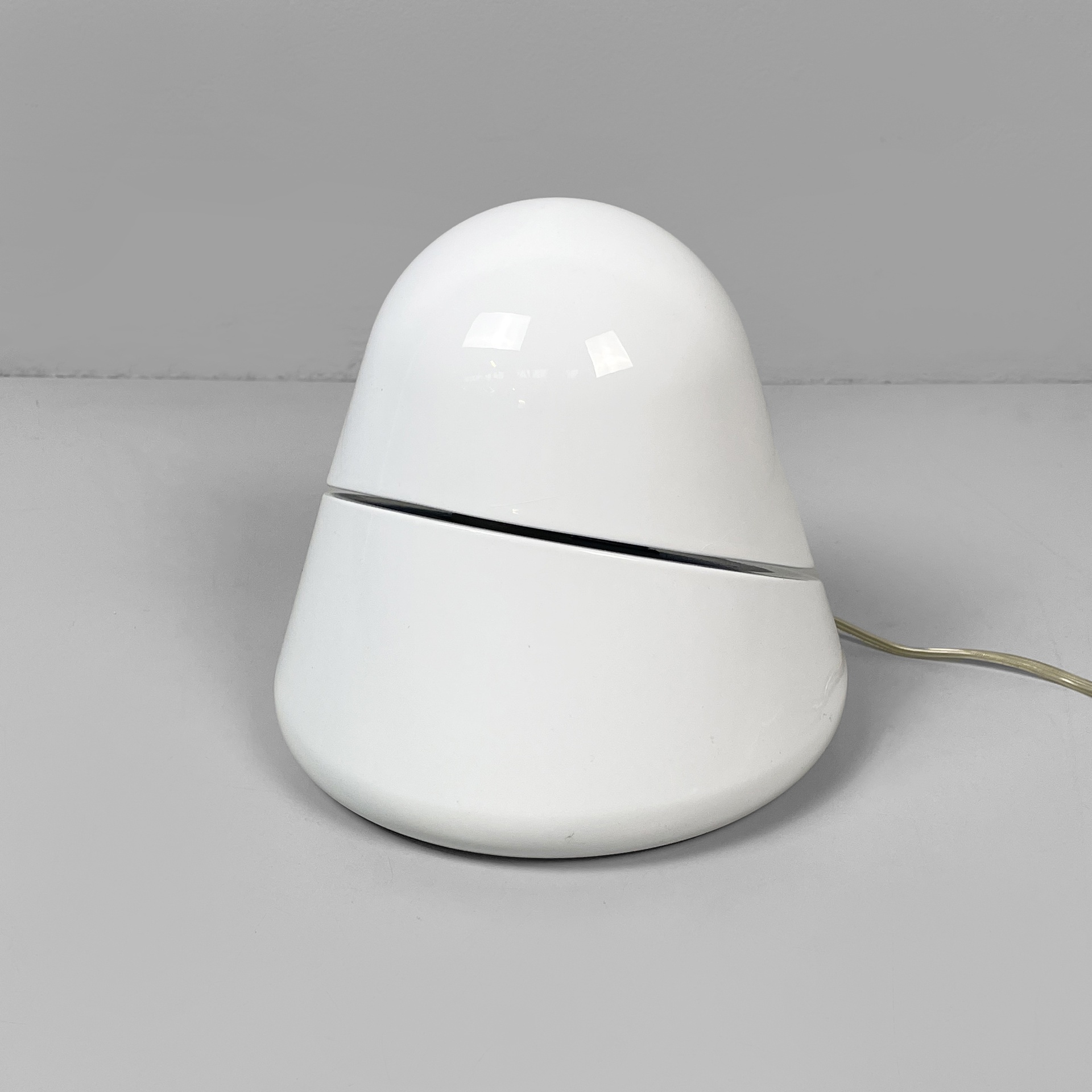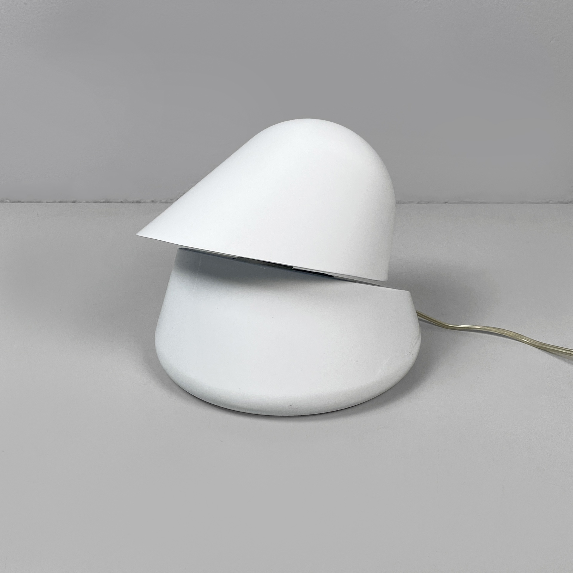 Lampada da tavolo modello 5450 Tikal interamente in metallo smaltato bianco. il diffusore orientabile è la punta della struttura conica. Con scatola originale