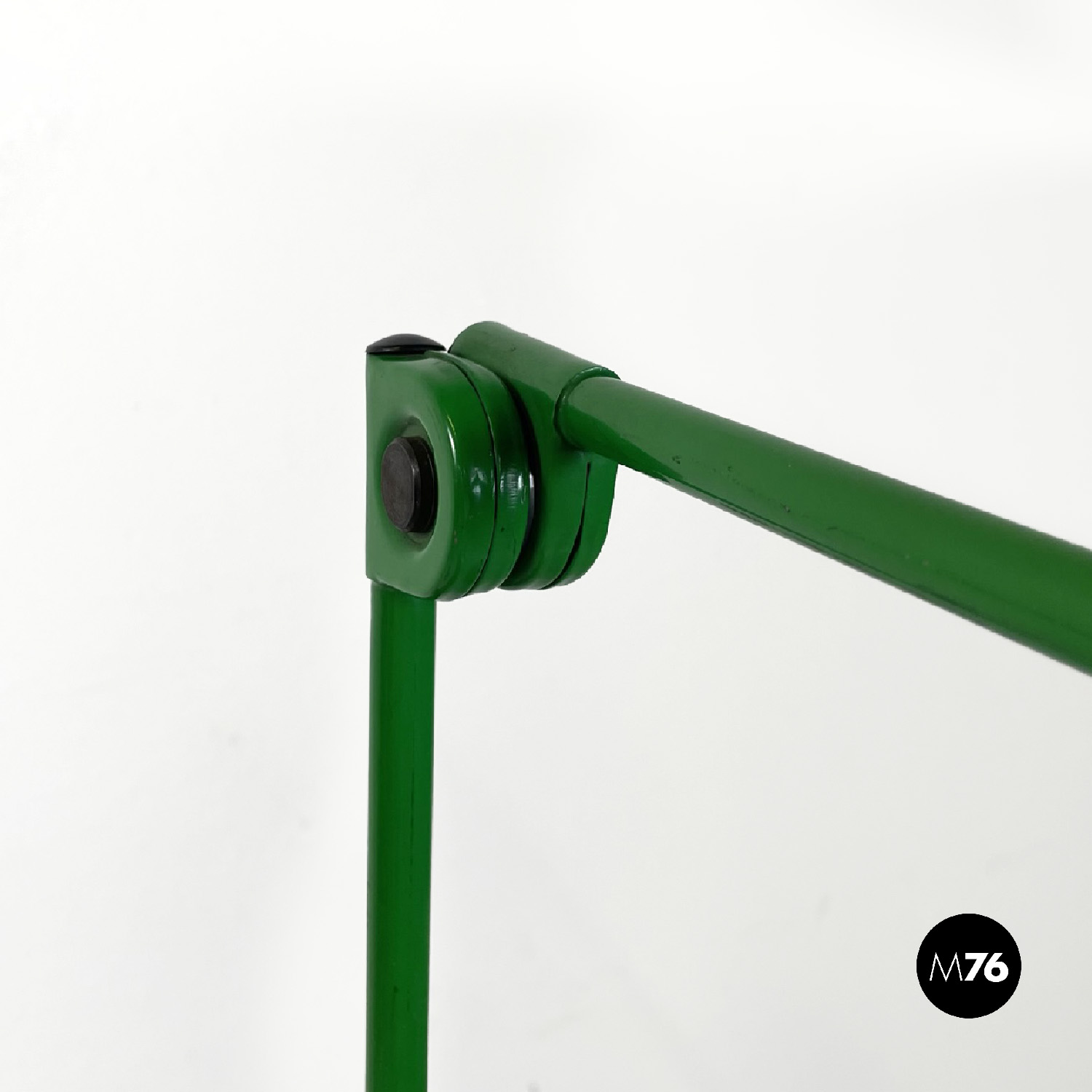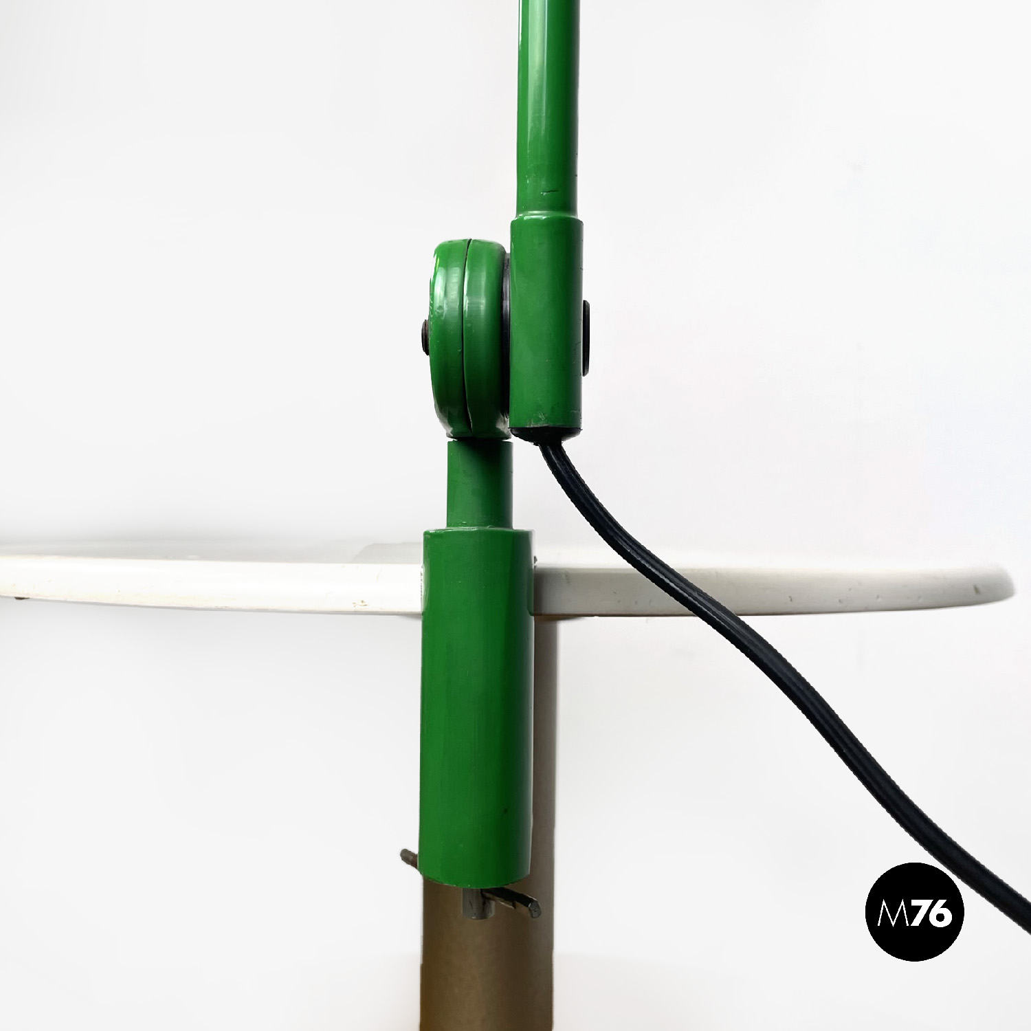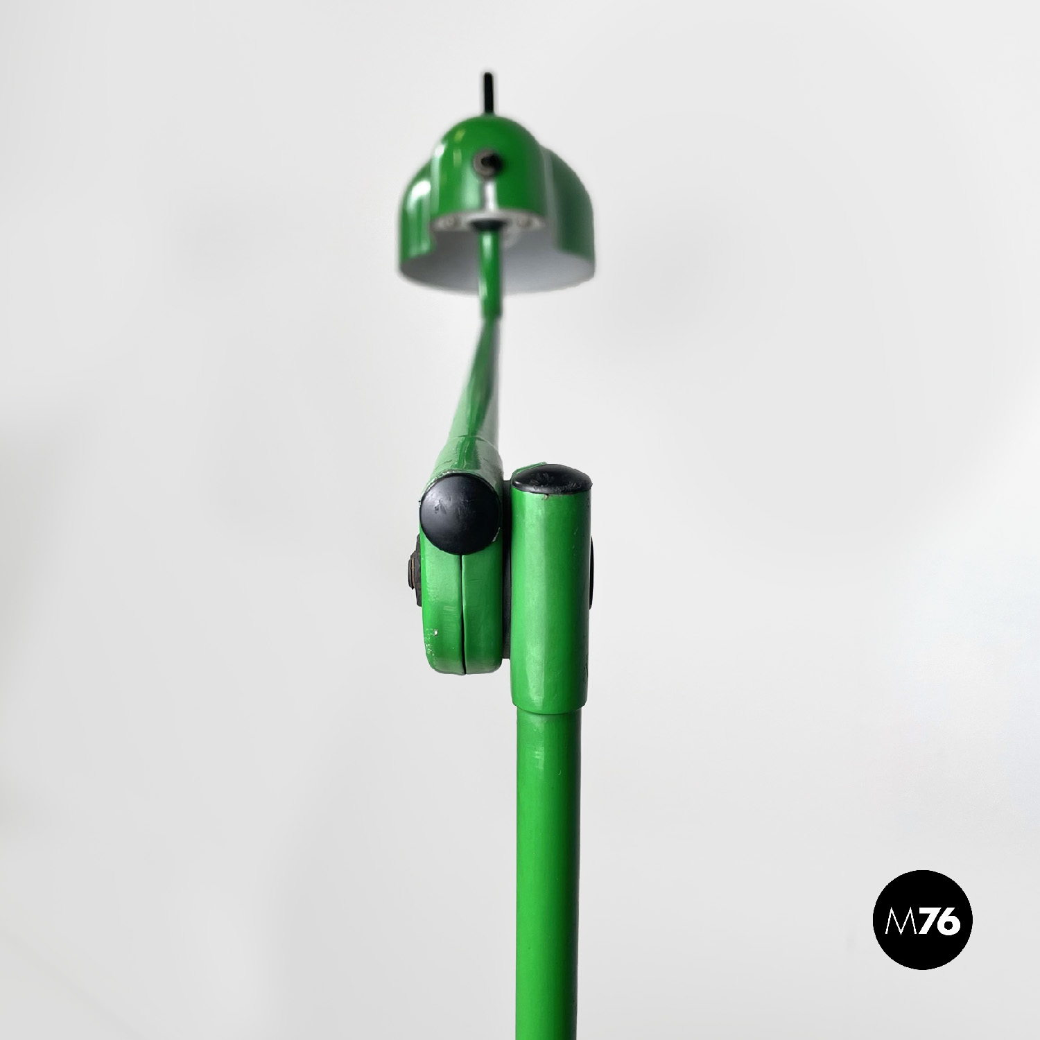 Lampada da tavolo modello Topo con morsetto. La struttura è regolabile, il paralume ha una maniglia in plastica nera per direzionarlo. La lampada è in metallo verniciato verde con finitura lucida, presenta dettagli in plastica nera.