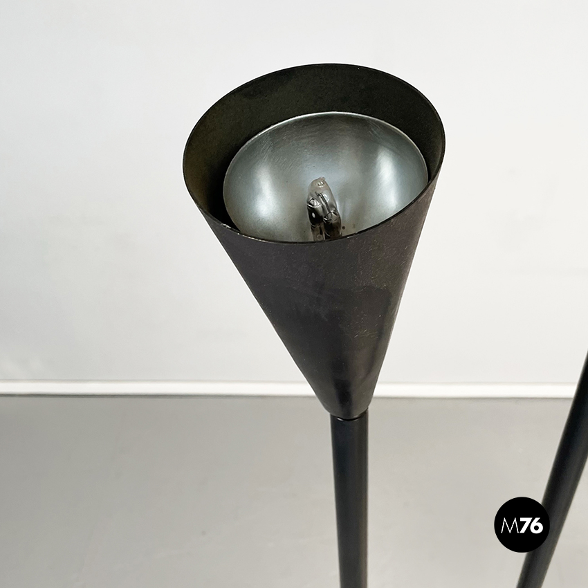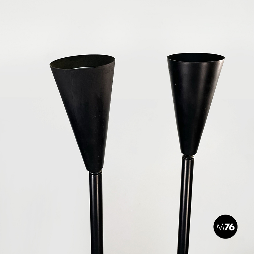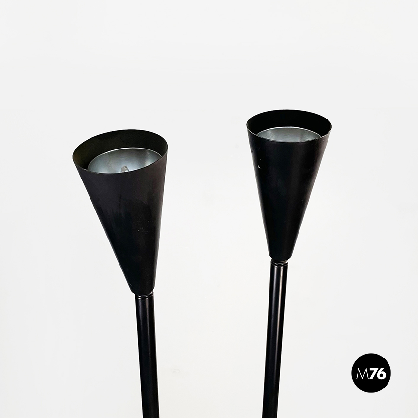 Lampada da terra a due luci in metallo nero, 1990 ca.