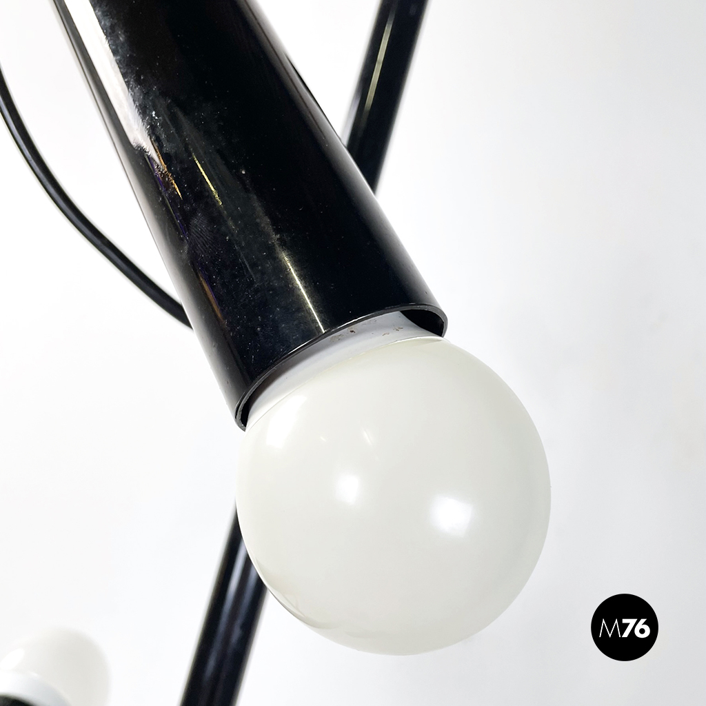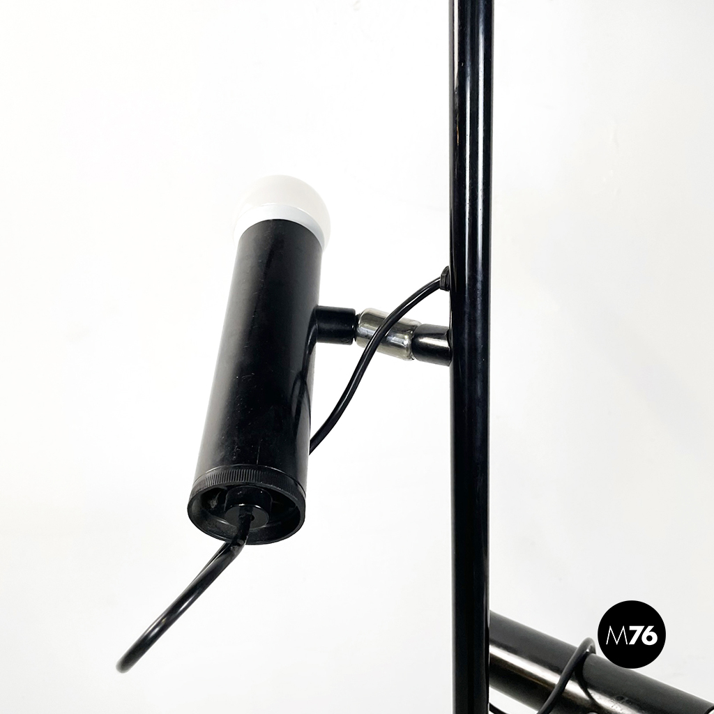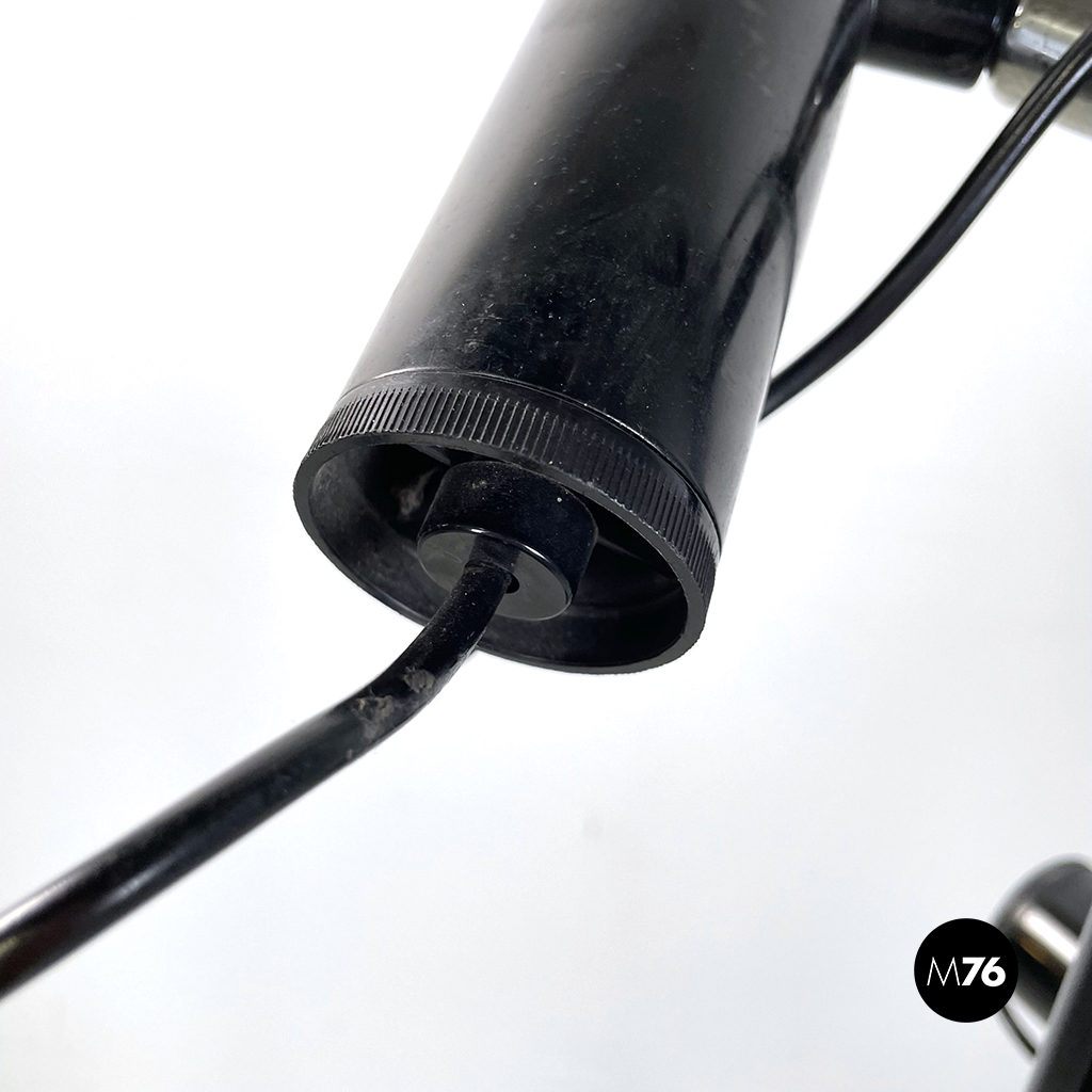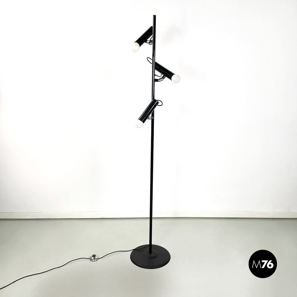 Lampada da terra a tre luci in acciaio nero, 1970 ca.
