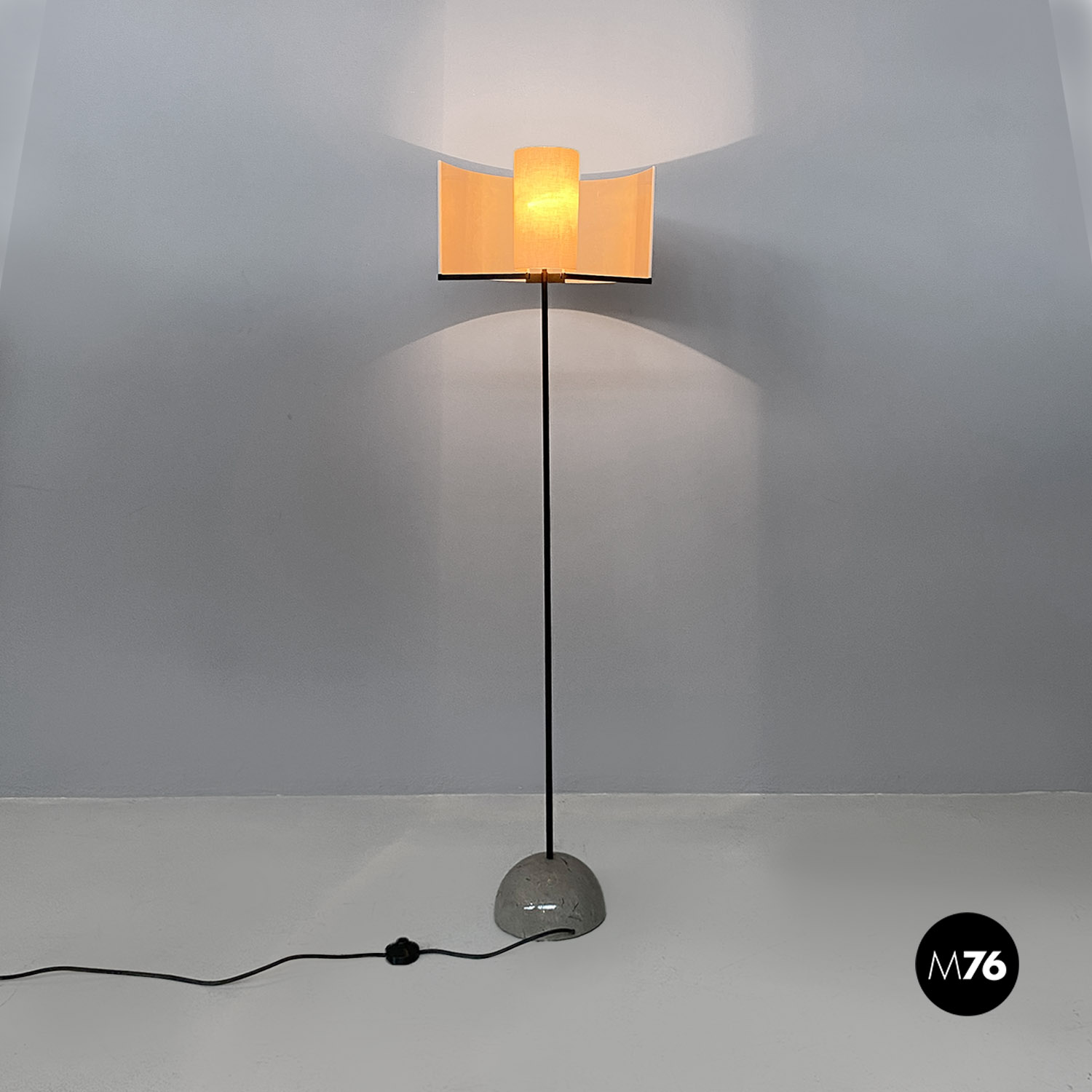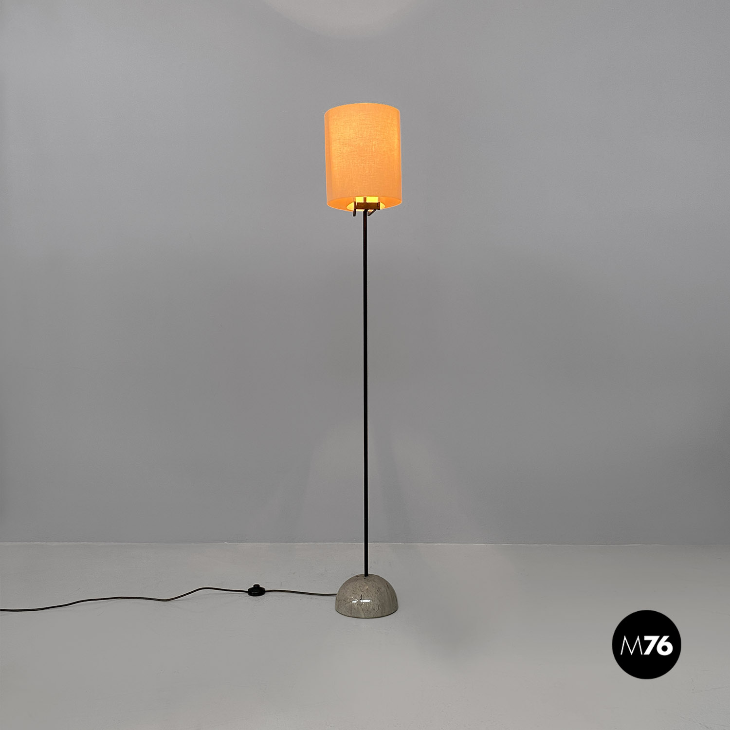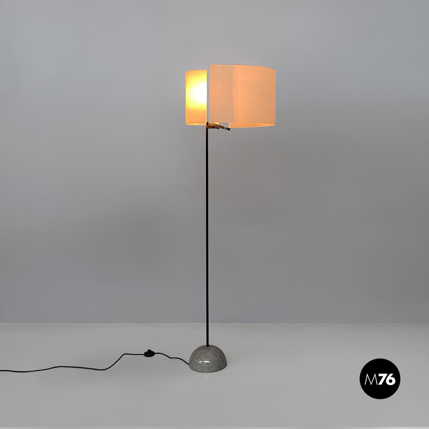 Lampada da terra modello Abate, con base in marmo grigio semicircolare e la pianta in acciaio nero. Il paralume in particolare permette di spostarlo come si preferisce.