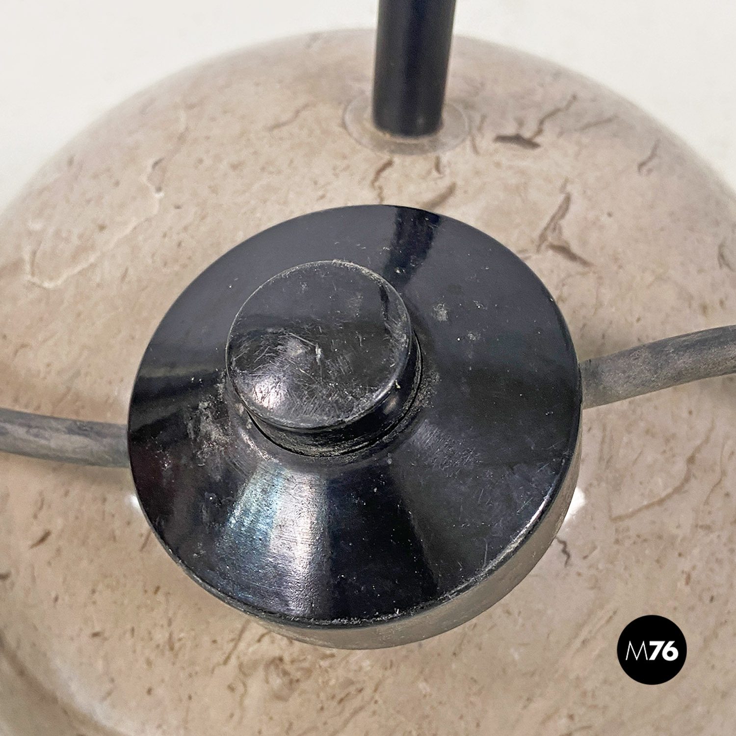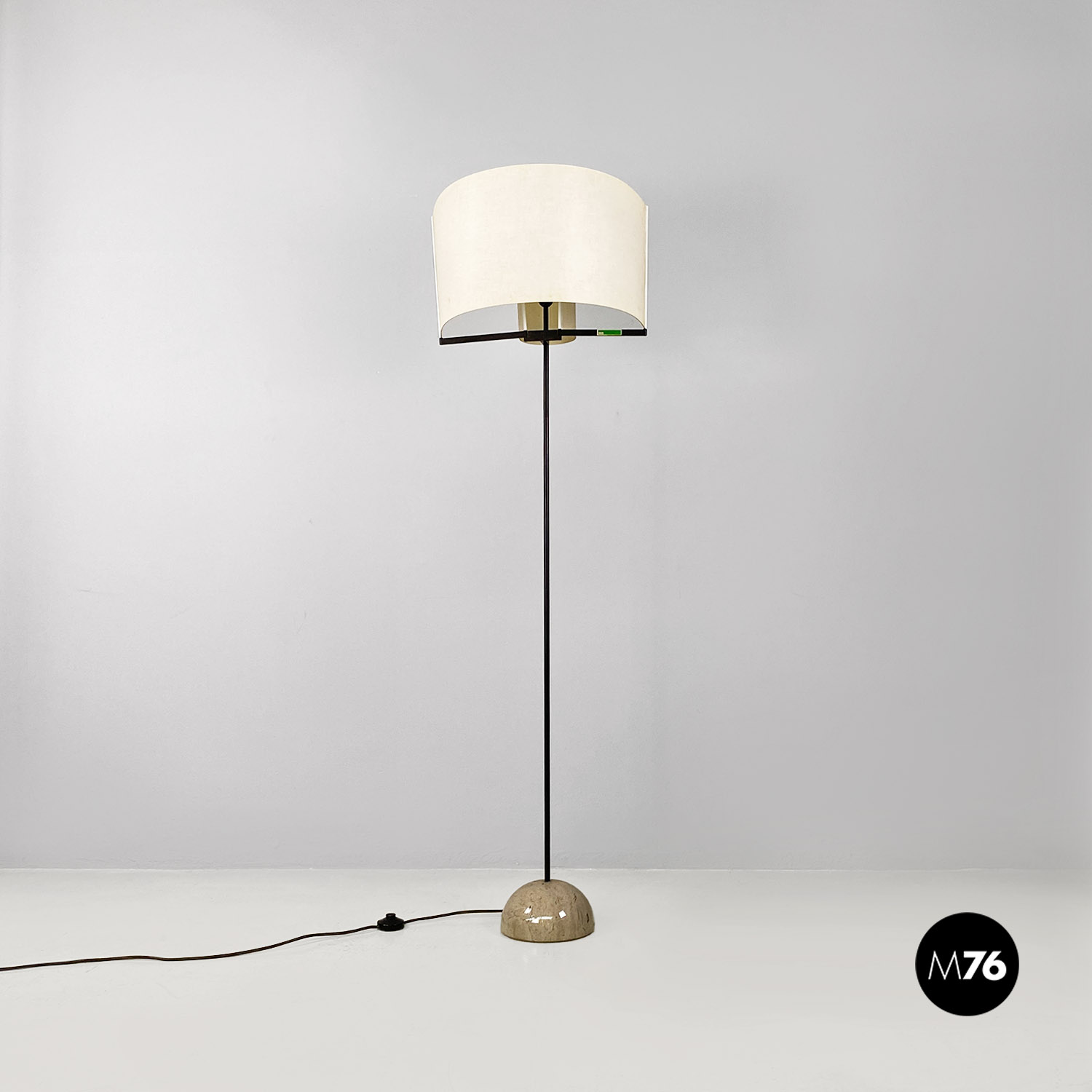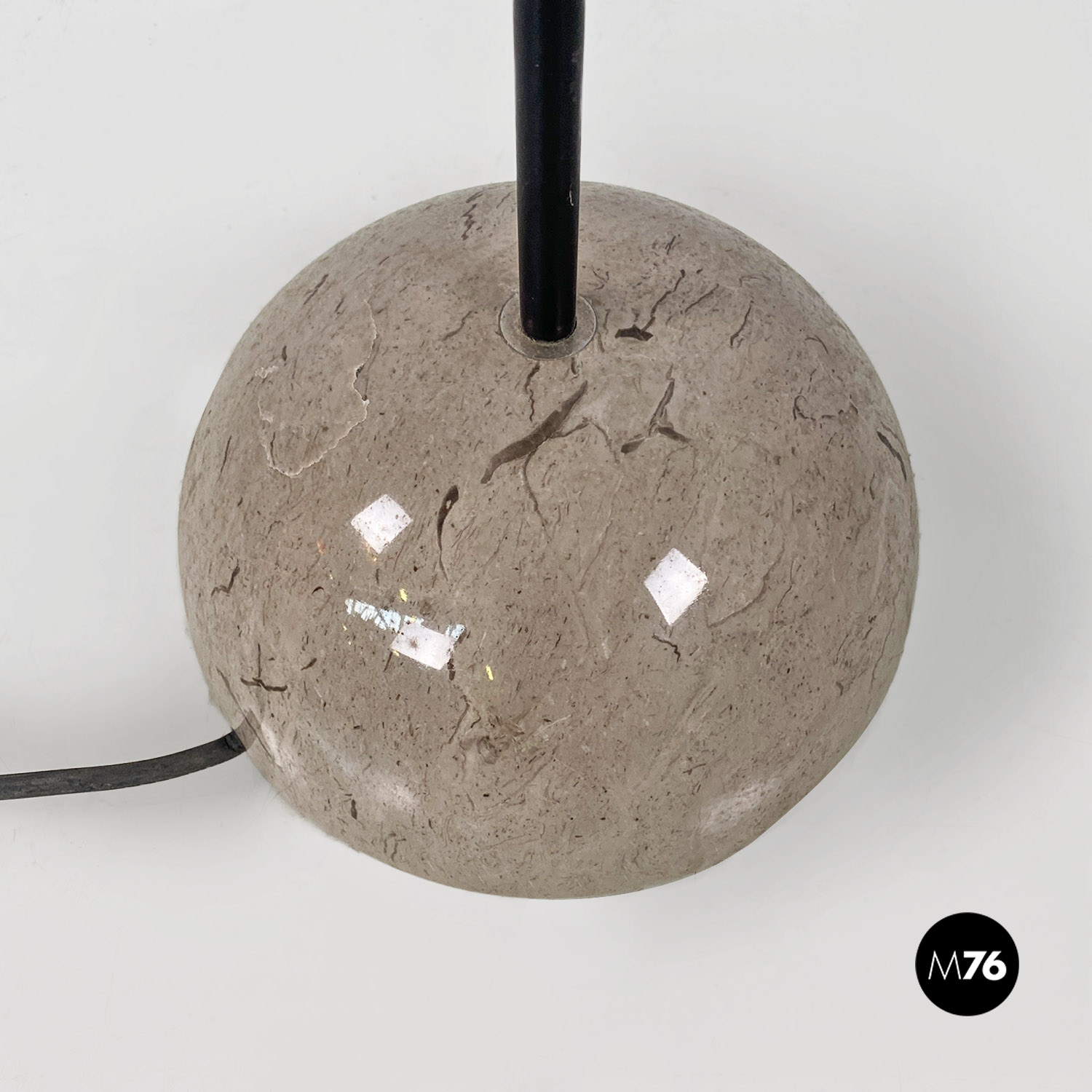Lampada da terra modello Abate, con base in marmo grigio semicircolare e la pianta in acciaio nero. Il paralume in particolare permette di spostarlo come si preferisce.