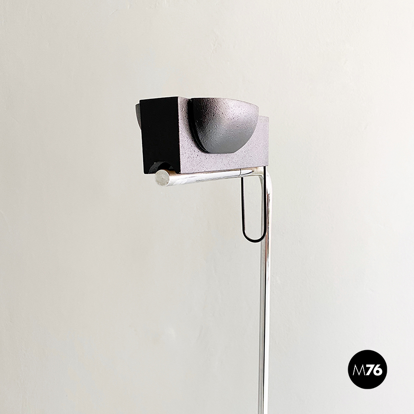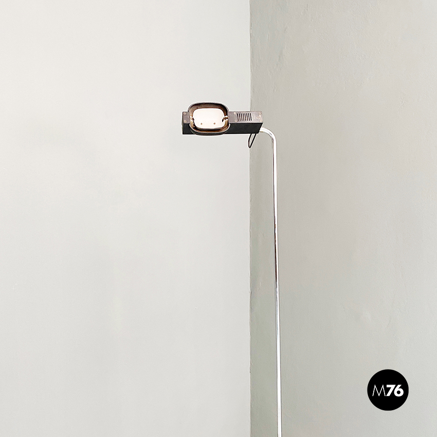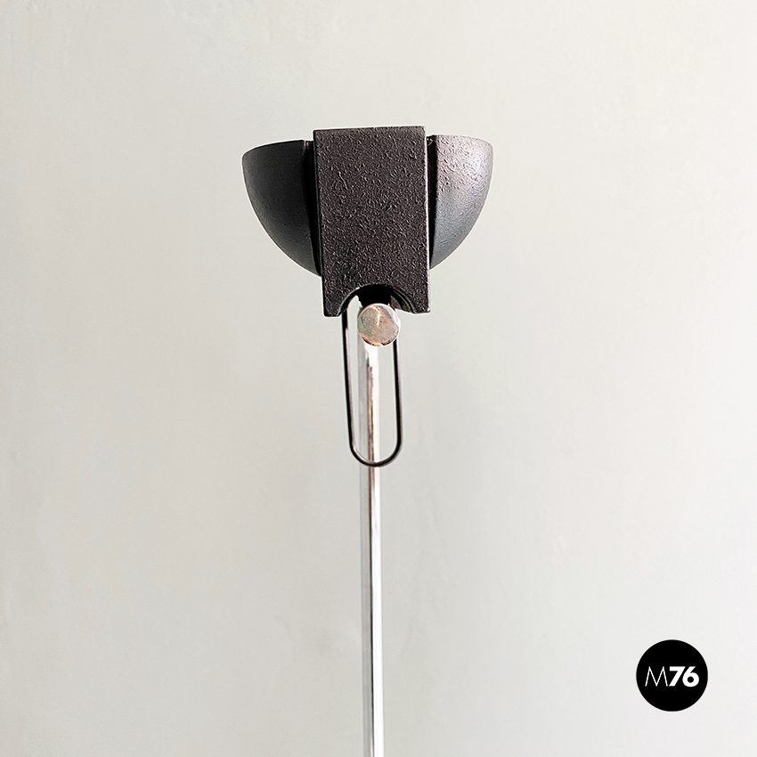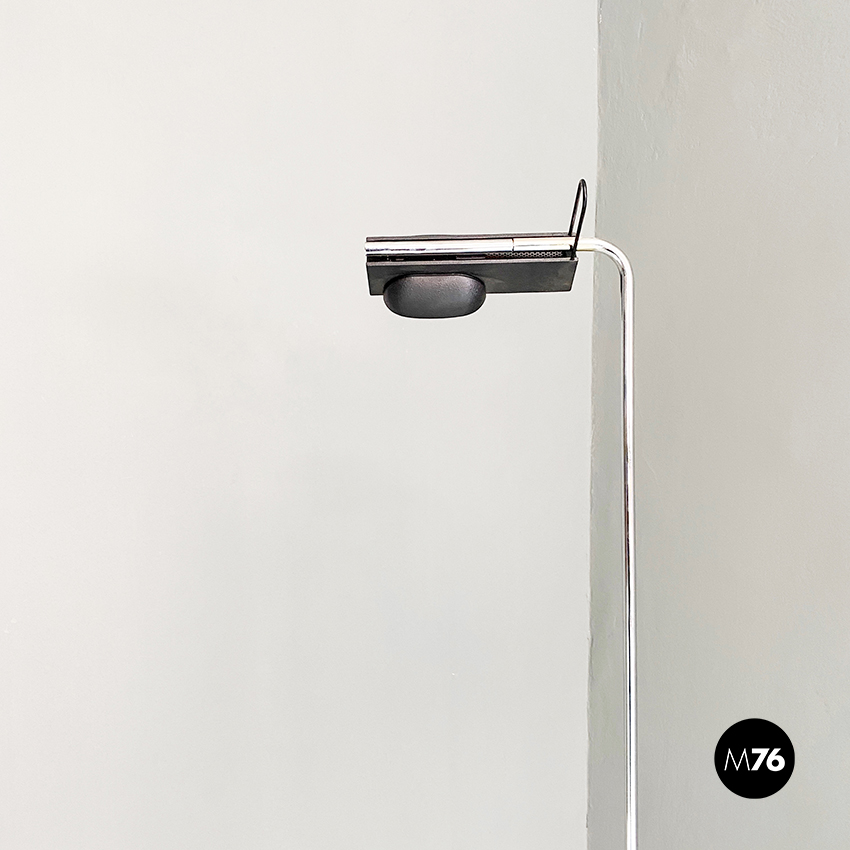 Lampada da terra in acciaio cromato e metallo nero, 1980 ca.