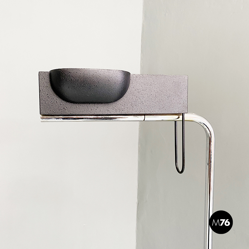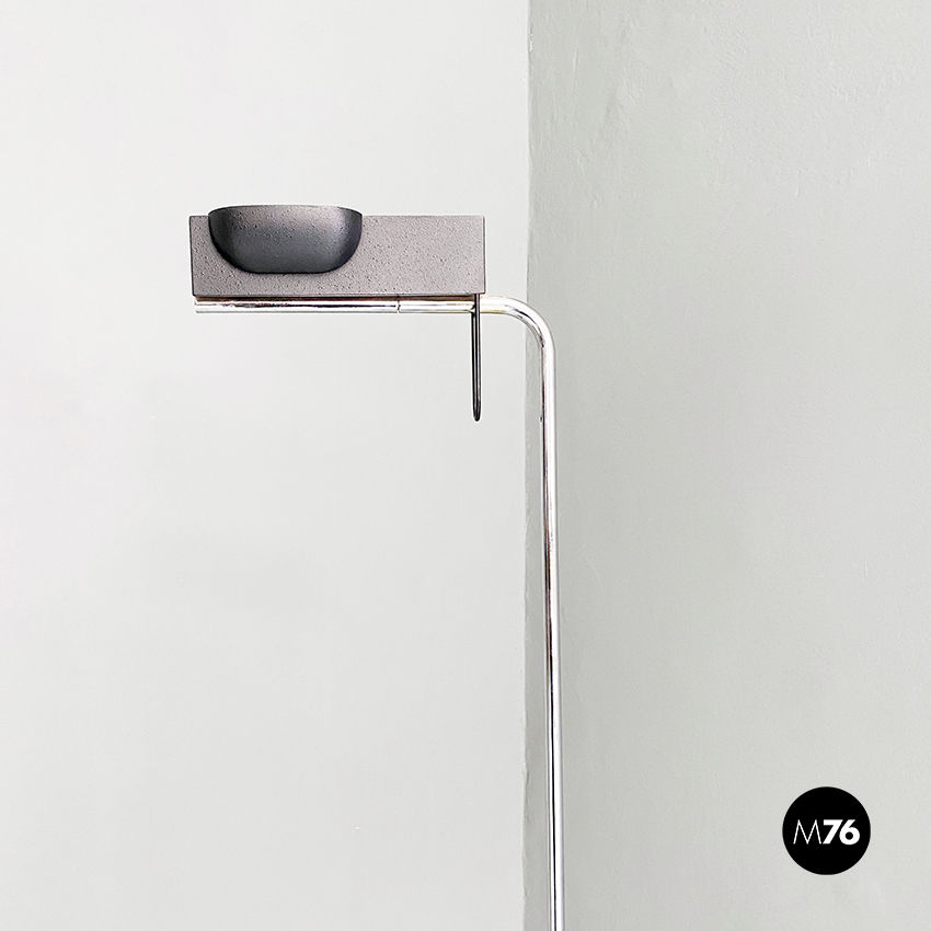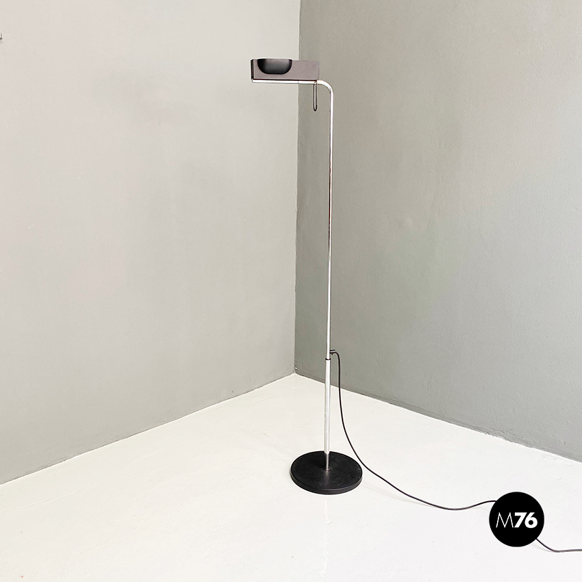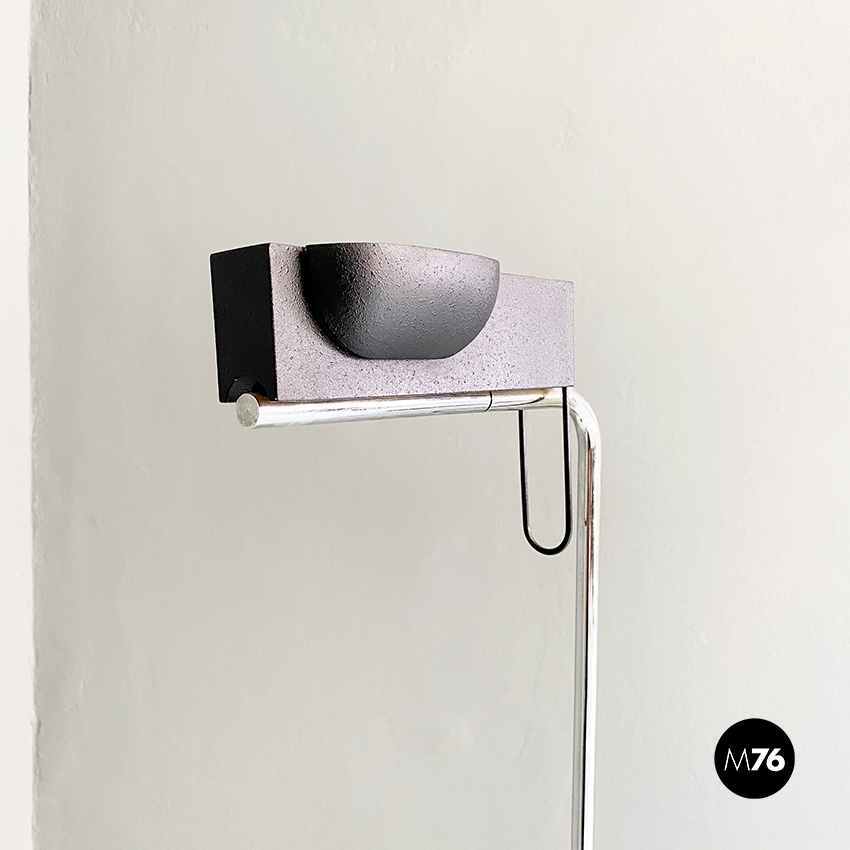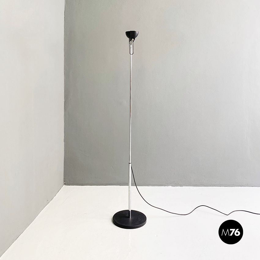 Lampada da terra in acciaio cromato e metallo nero, 1980 ca.