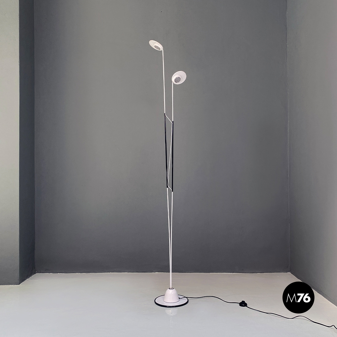 Lampada da terra in metallo bianco e nero, 1980 ca.
