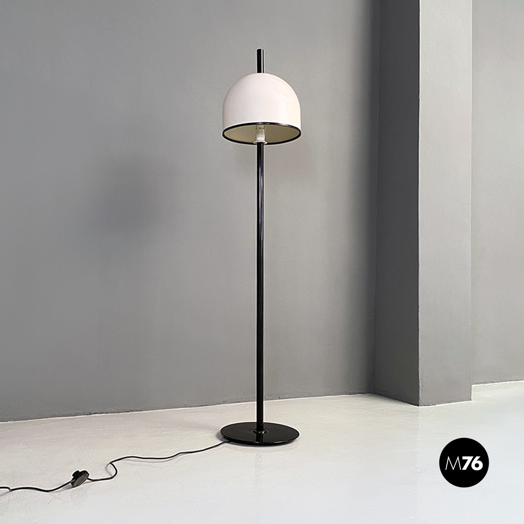 Lampada da terra in metallo bianco e nero, 1980 ca.