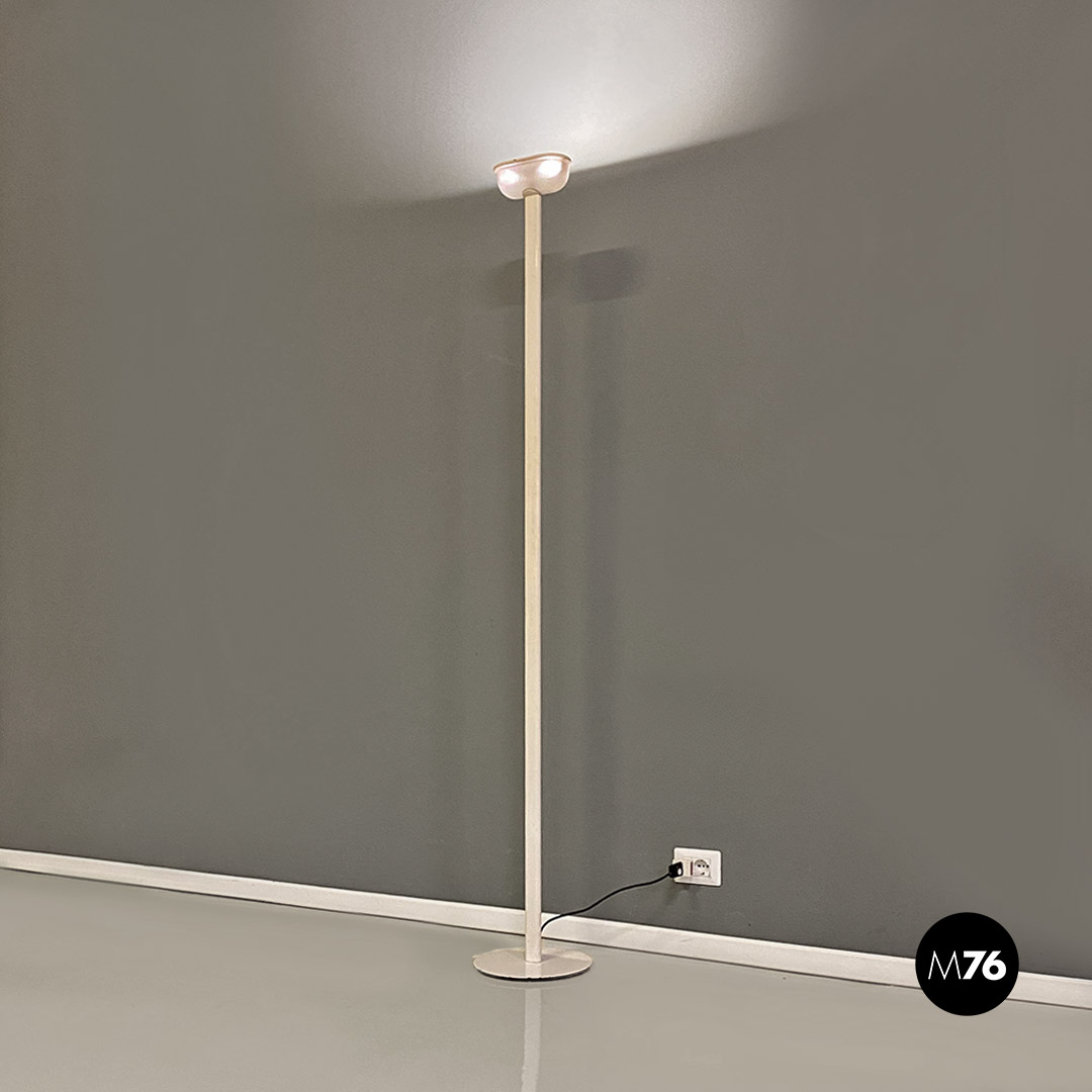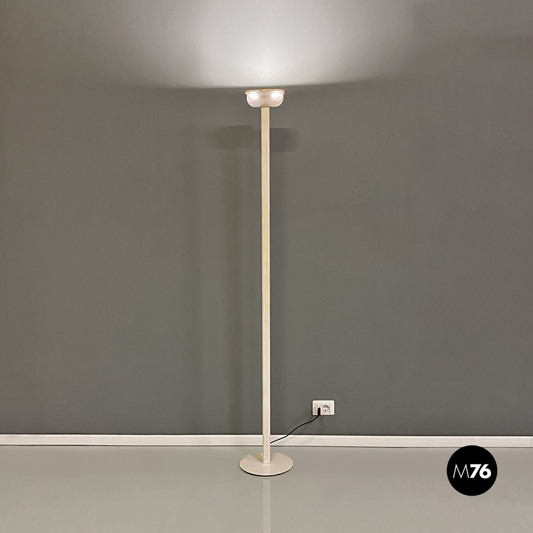 Lampada da terra in metallo bianco e vetro, 1980 ca.