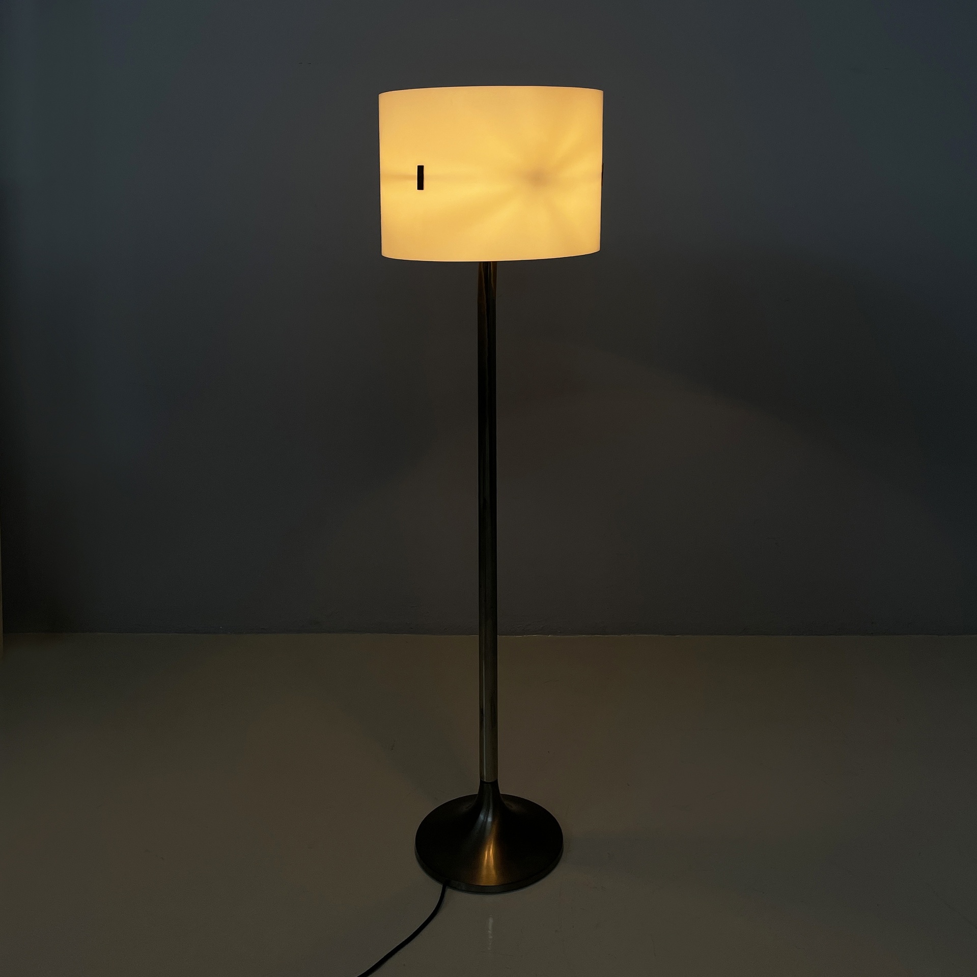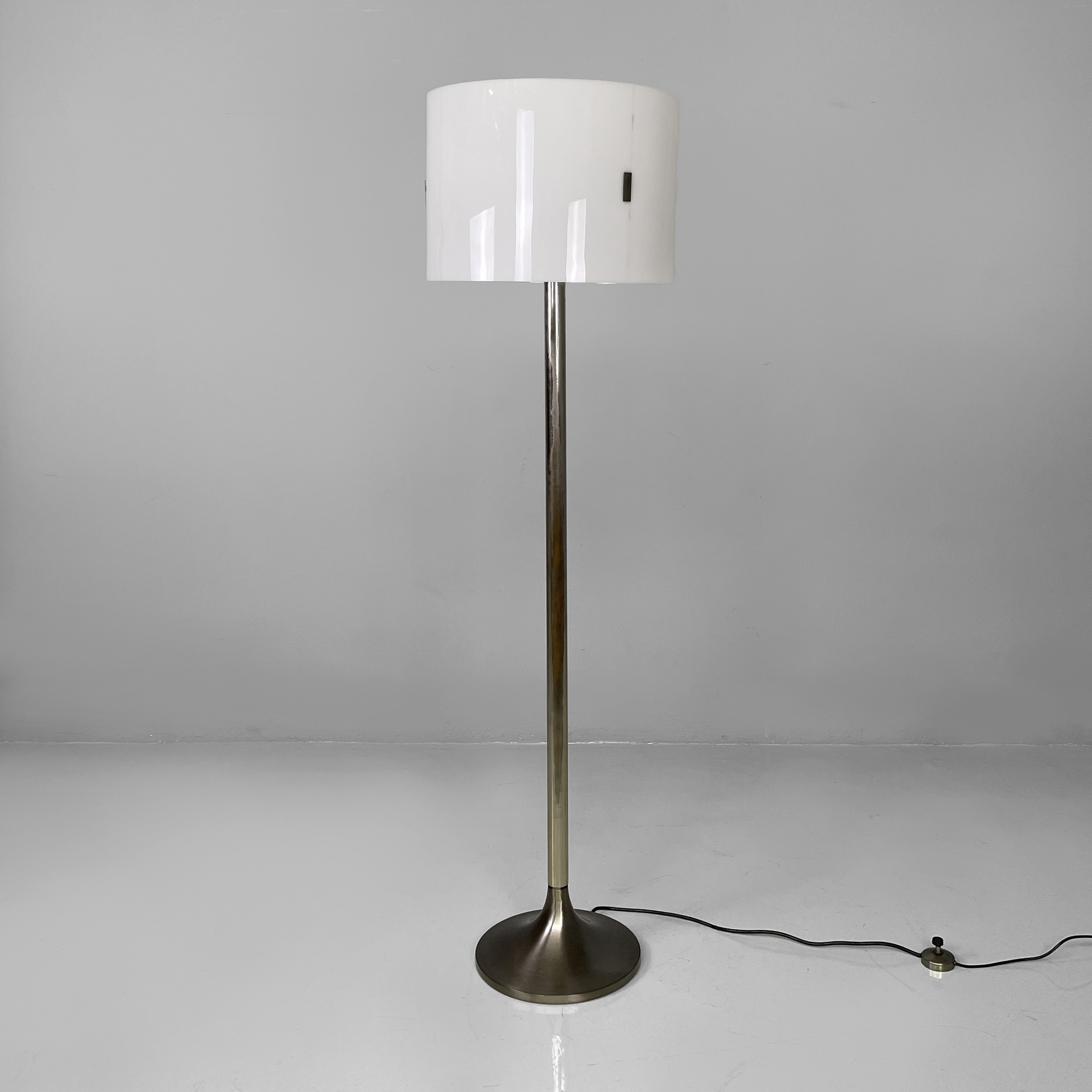 Lampada da terra in metallo brunito e plexiglass bianco, 1970 ca.