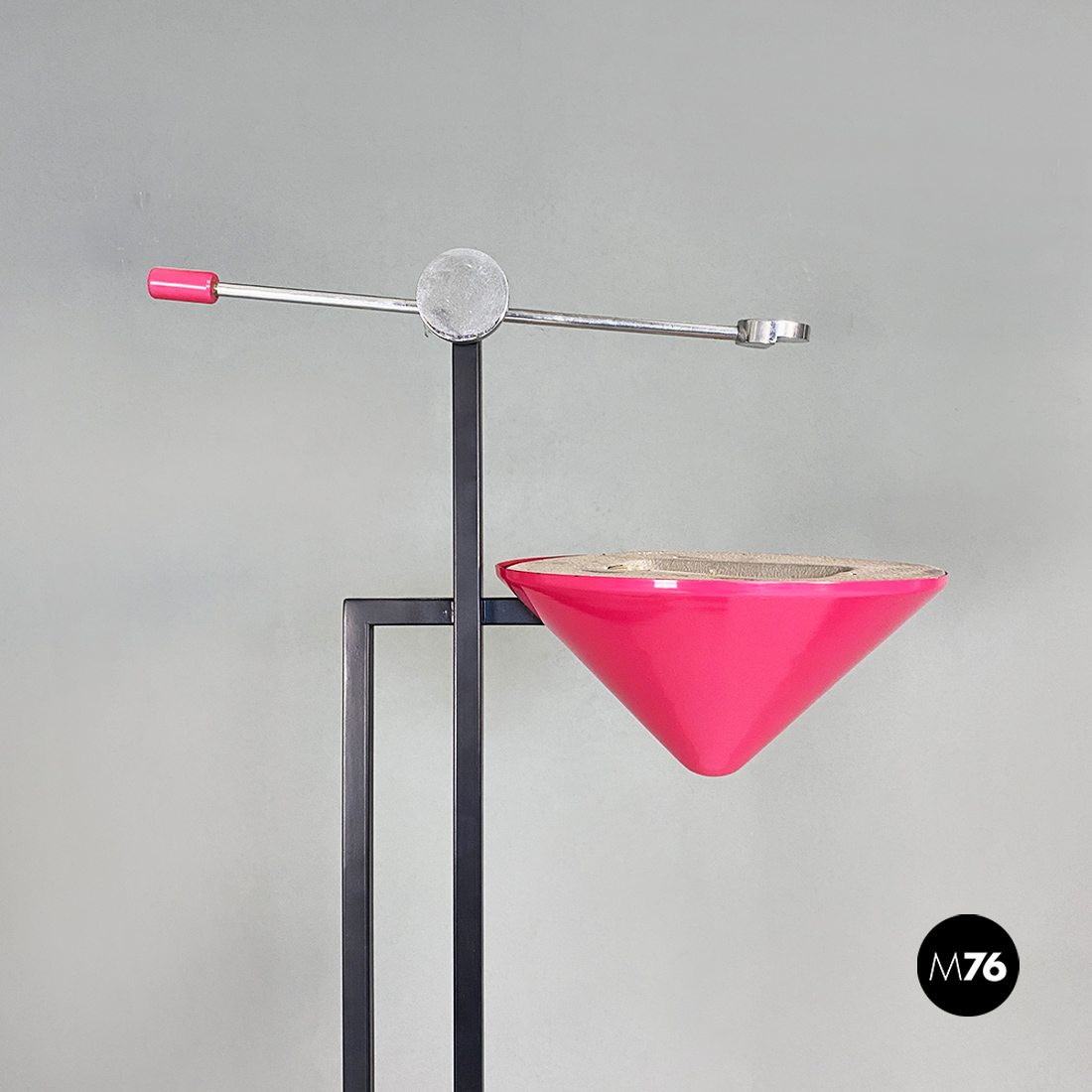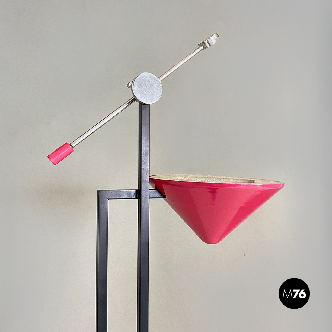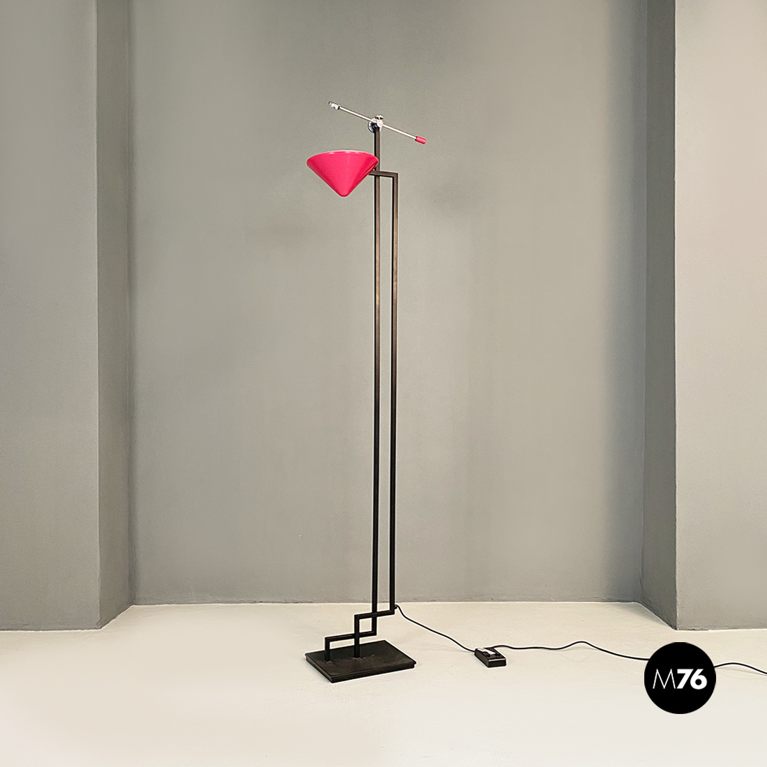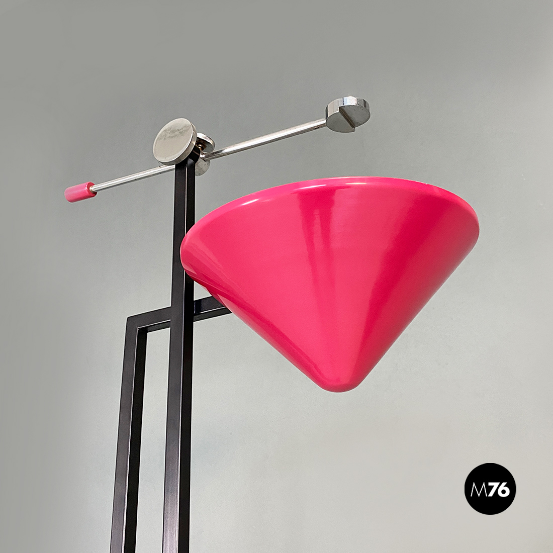 Lampada da terra in metallo con paralume fucsia, 1980 ca.
