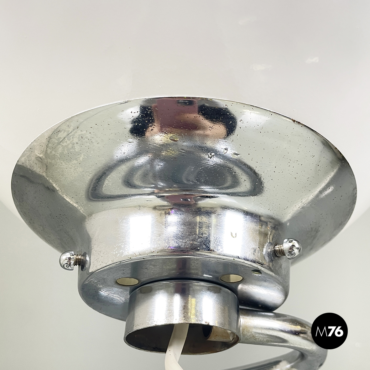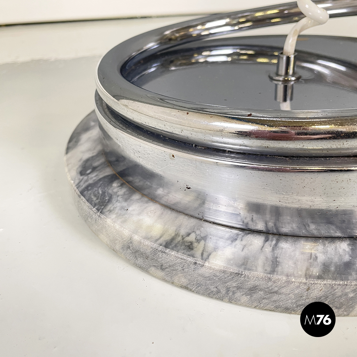 Lampada da terra in vetro opalino metallo e marmo, 1970 ca.