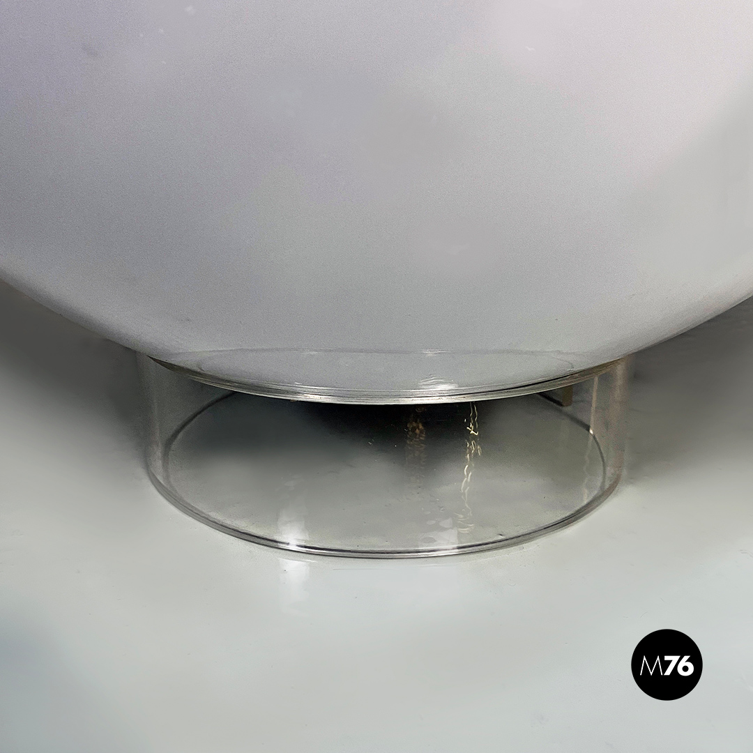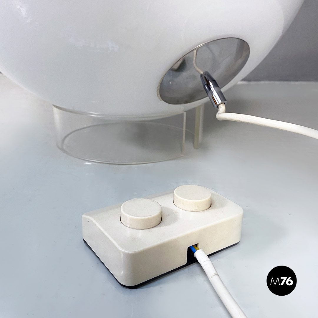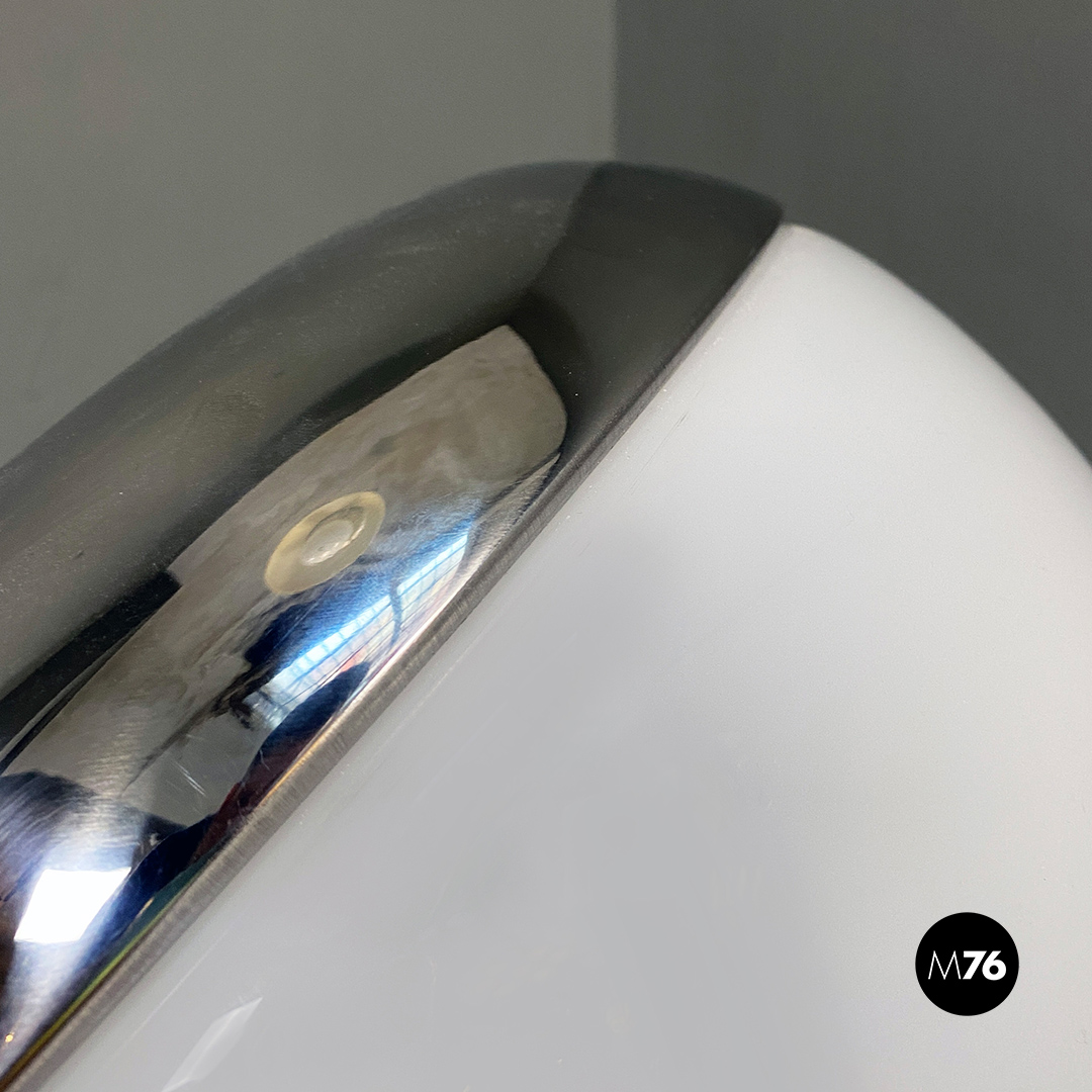 Lampada da tavolo orientabile in vetro opalino e metallo cromato.