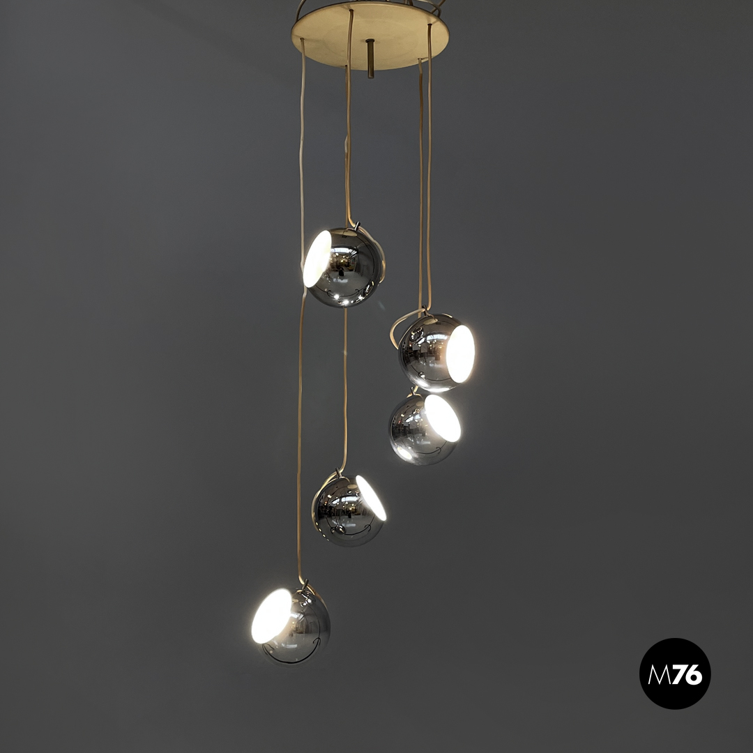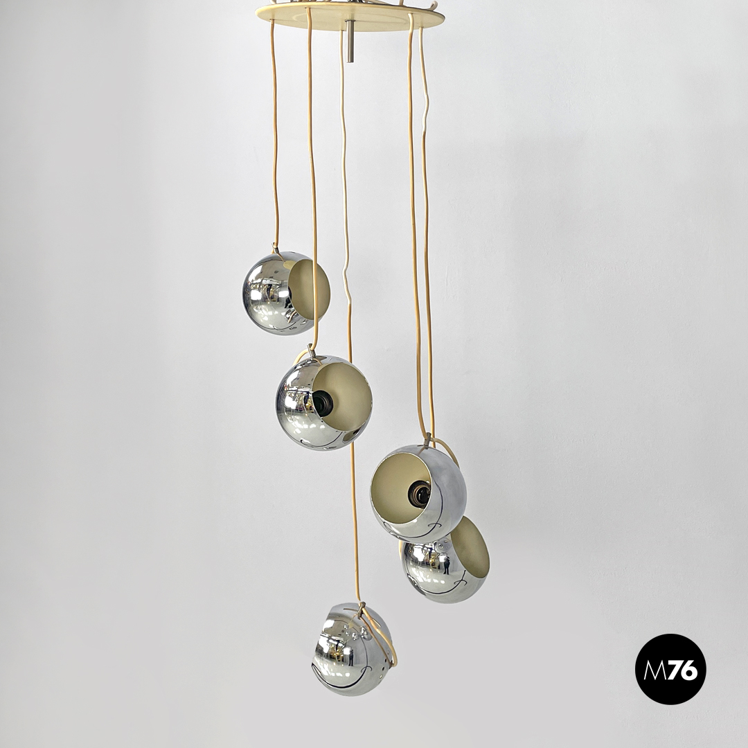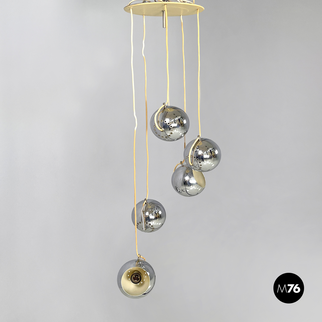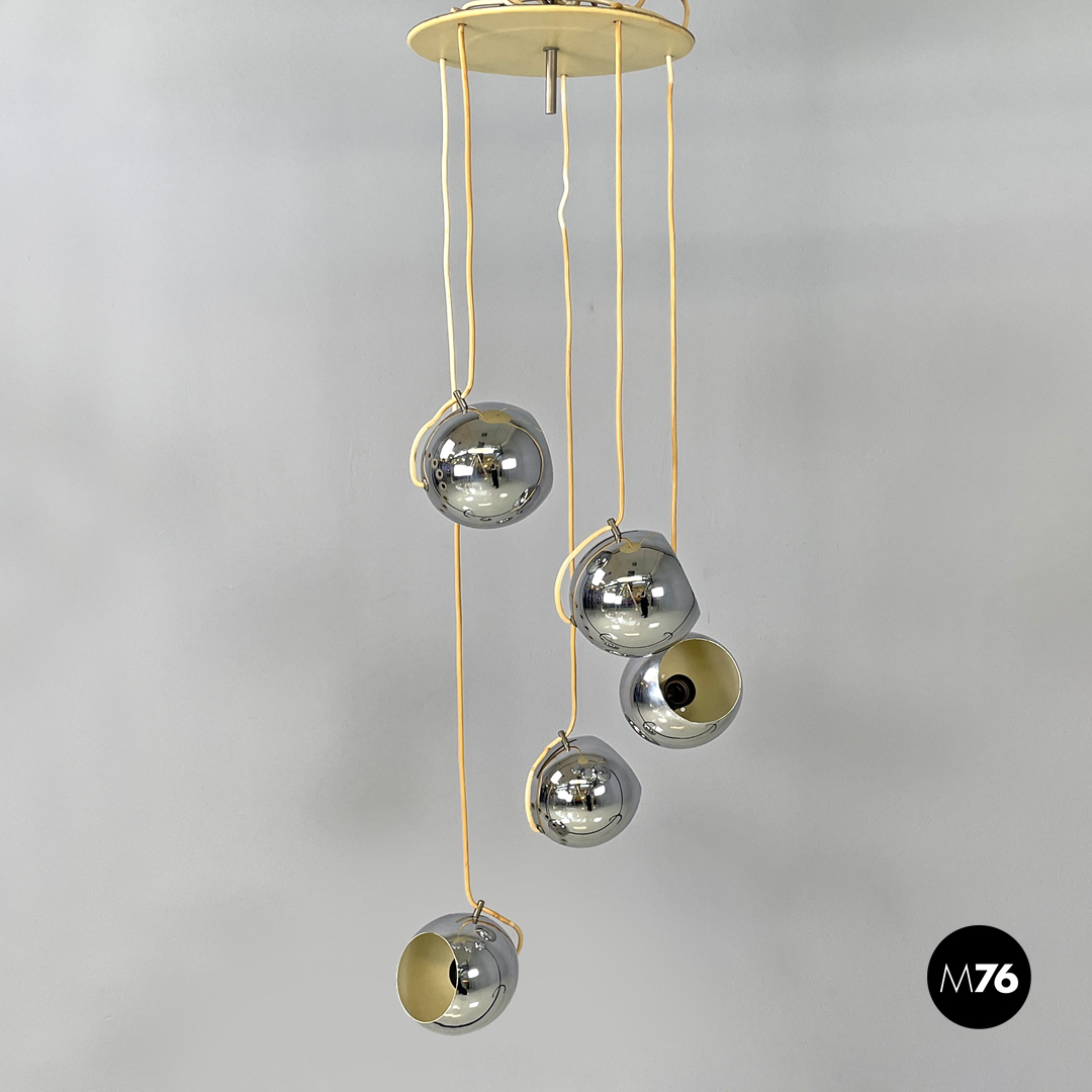 Lampadario a cascata con sfere in metallo cromato, 1970 ca.