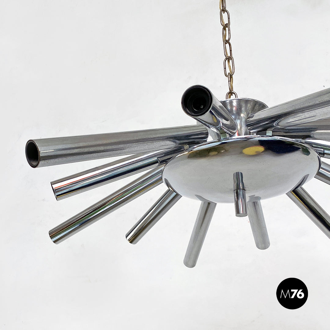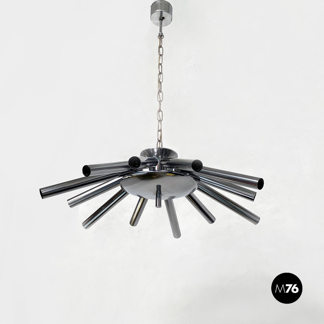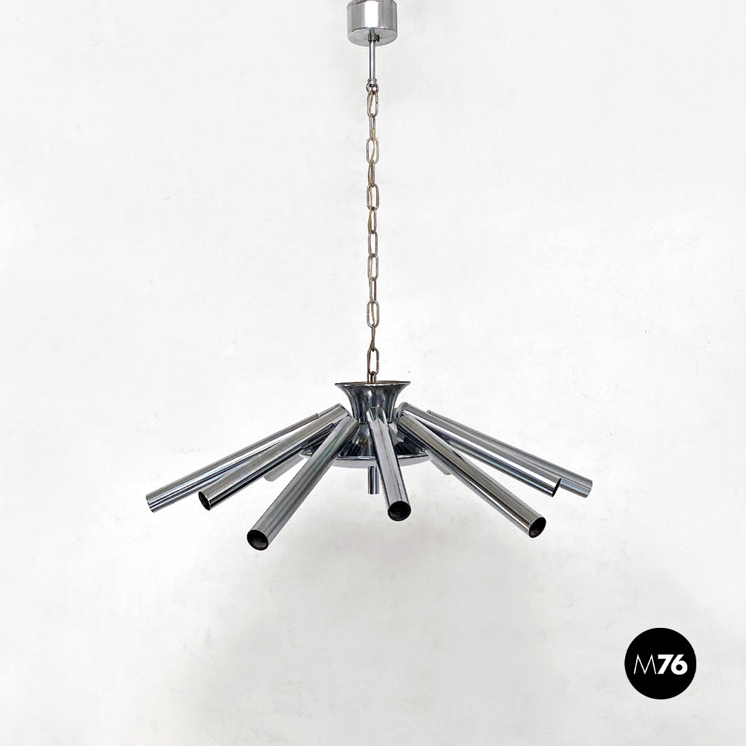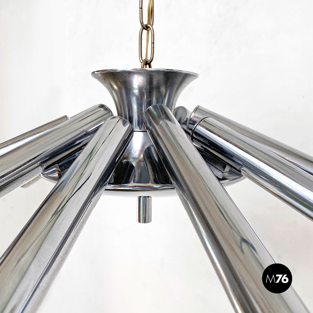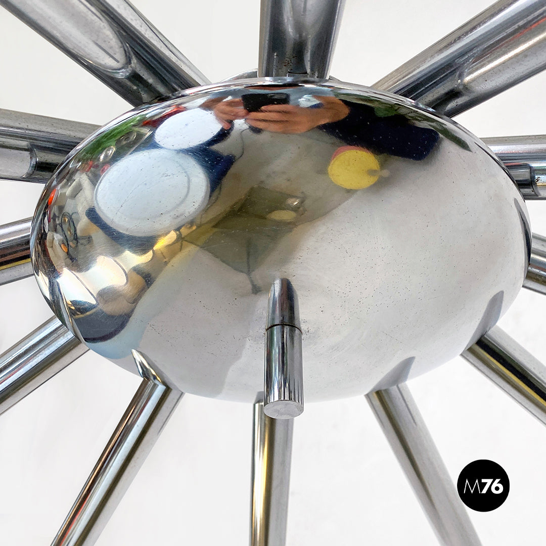 Lampadario in acciaio cromato a dodici luci, 1970 ca.